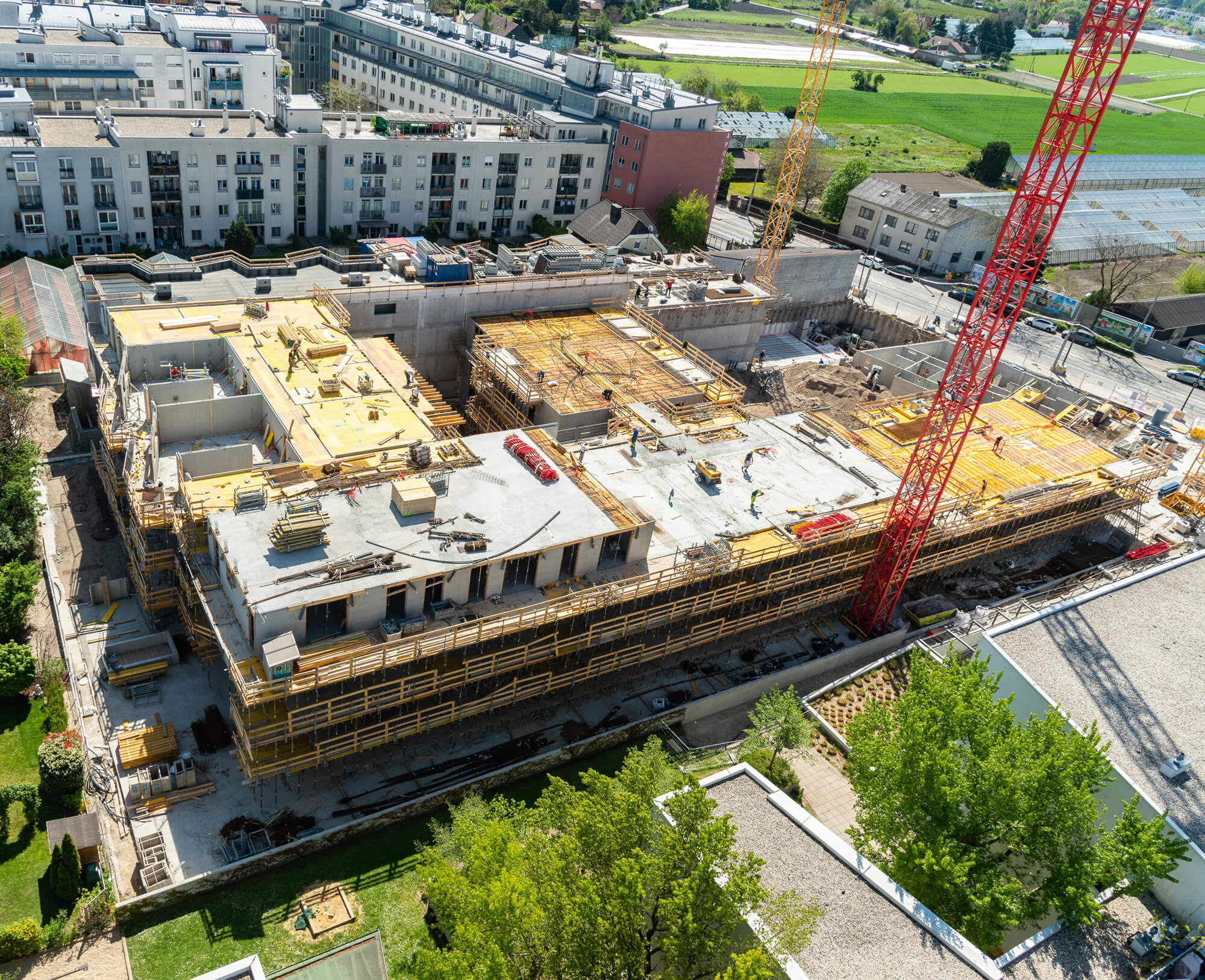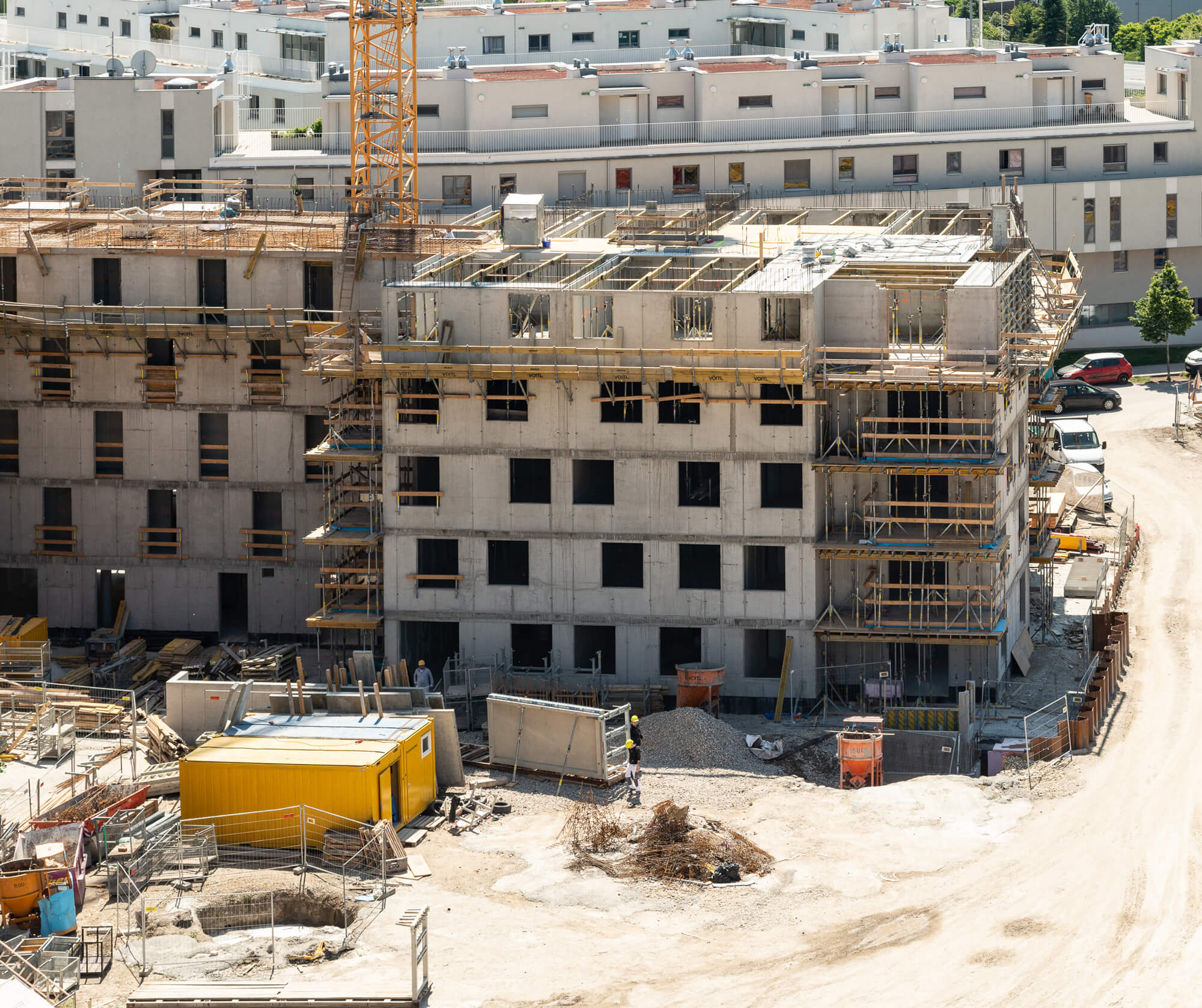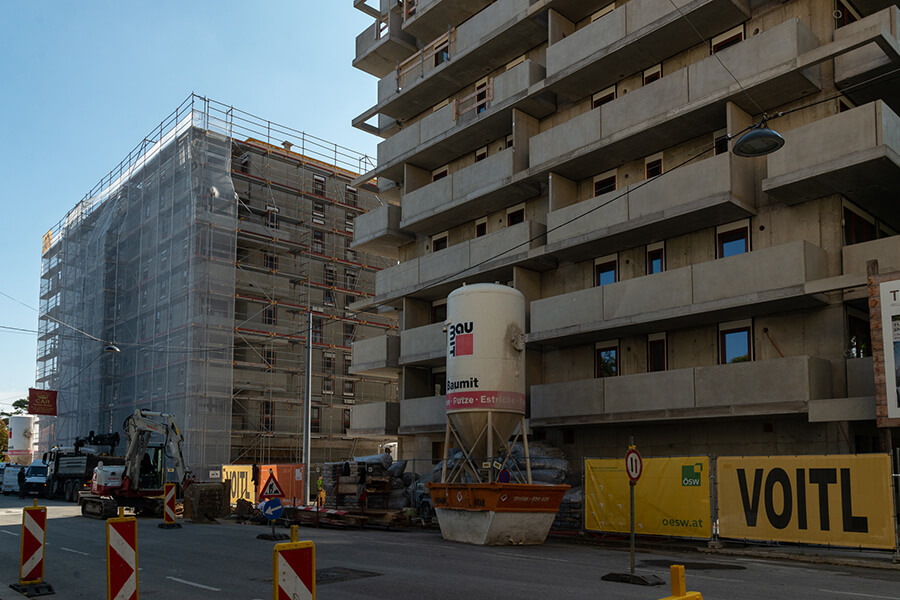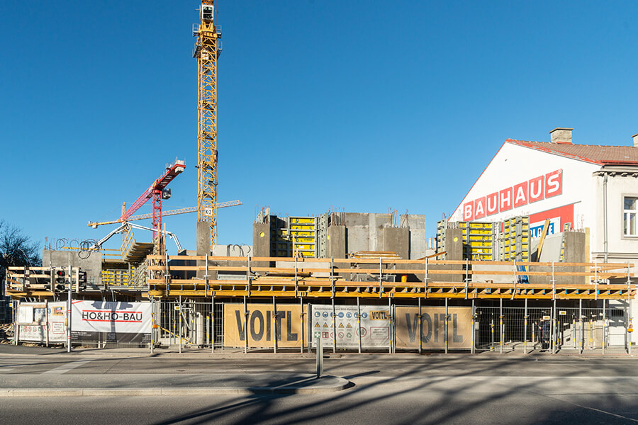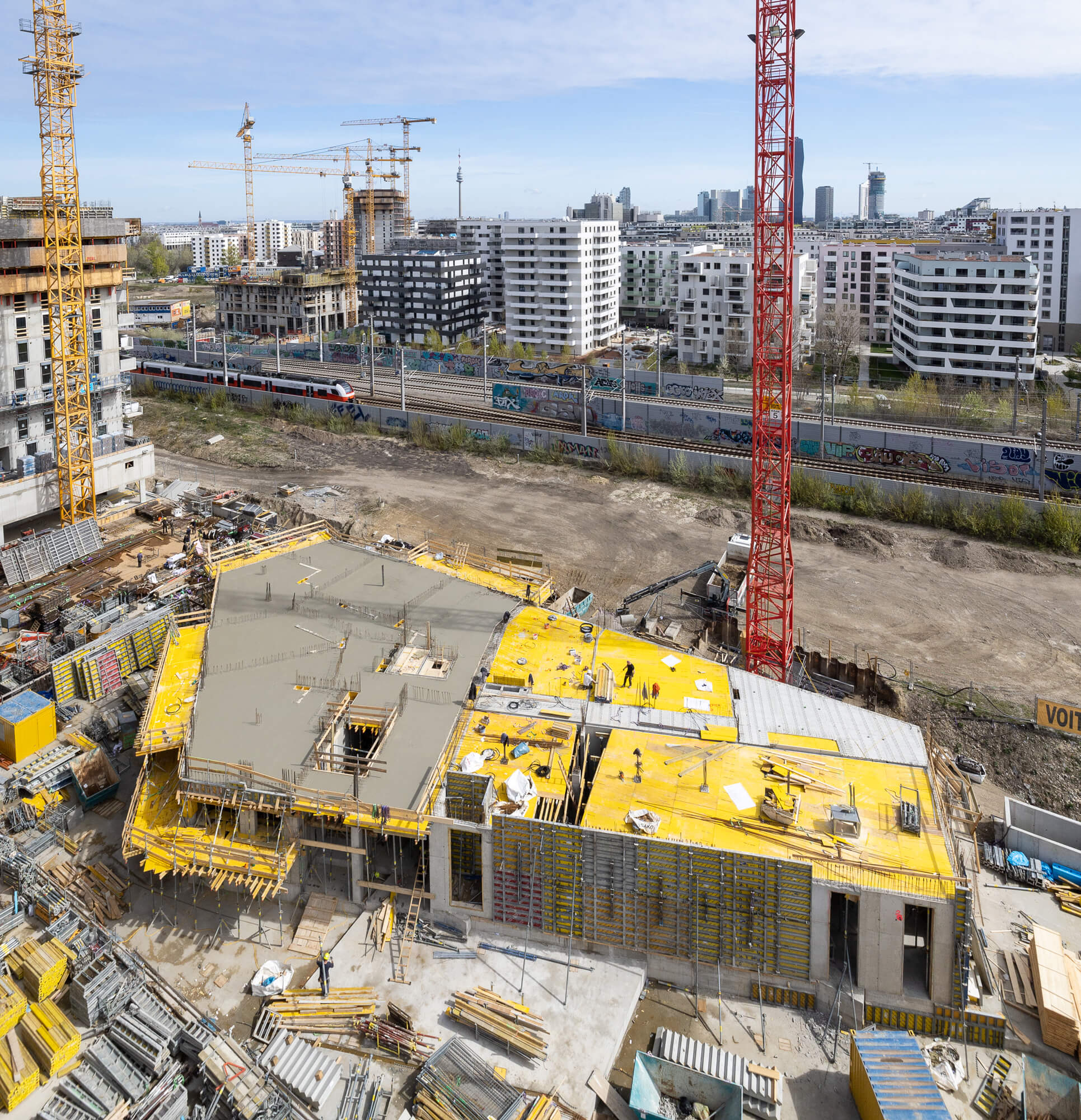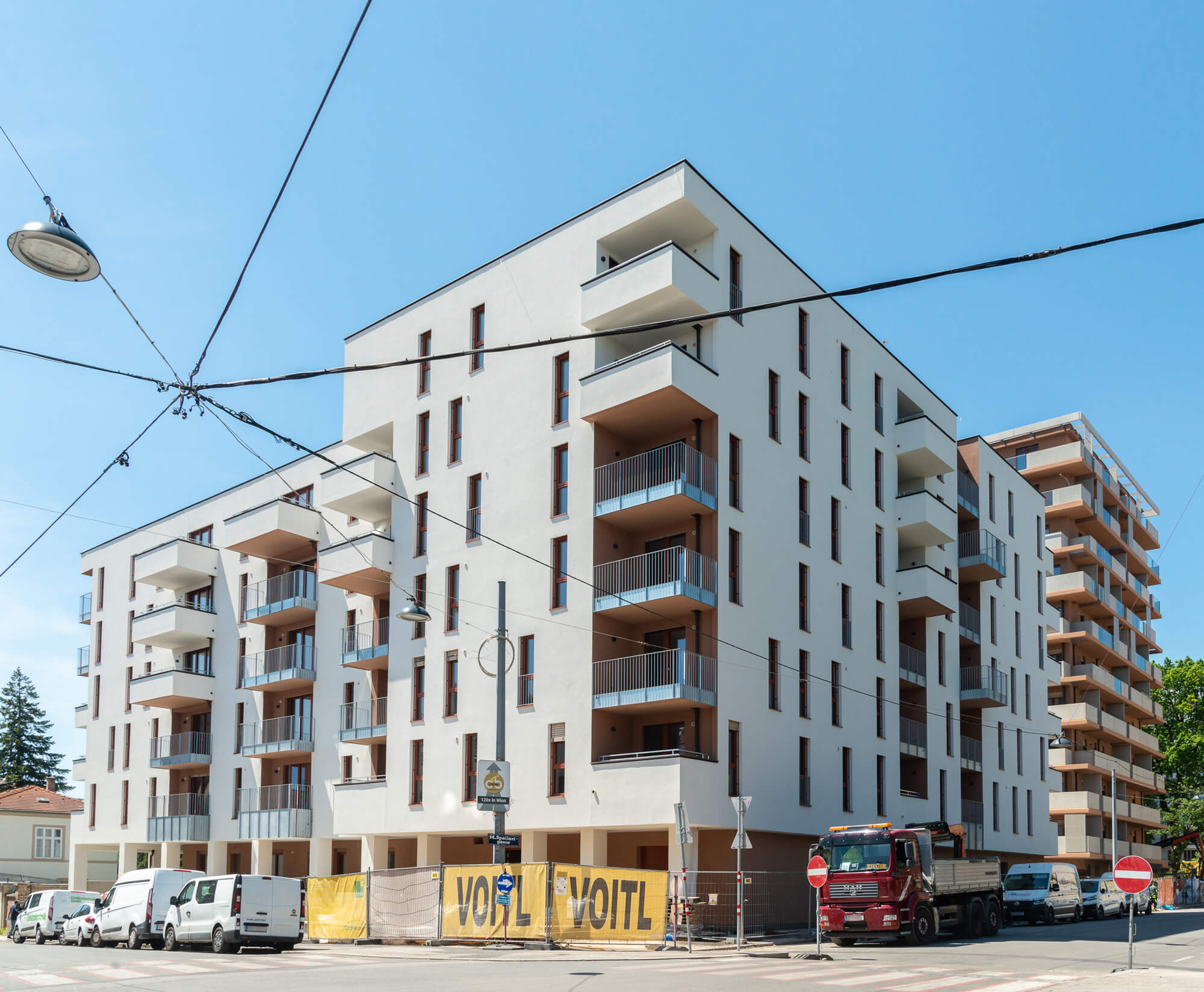 Voitl & Co. als Generalunternehmer im Auftrag der Sozialbau Gemeinnützige Wohnungsaktiengesellschaft eine Wohnhausanlage. Das Projekt umfasst in Summe 242 Wohneinheiten, 1 Geschäftslokal und 2 Tiefgaragen mit 168 Stellplätzen.