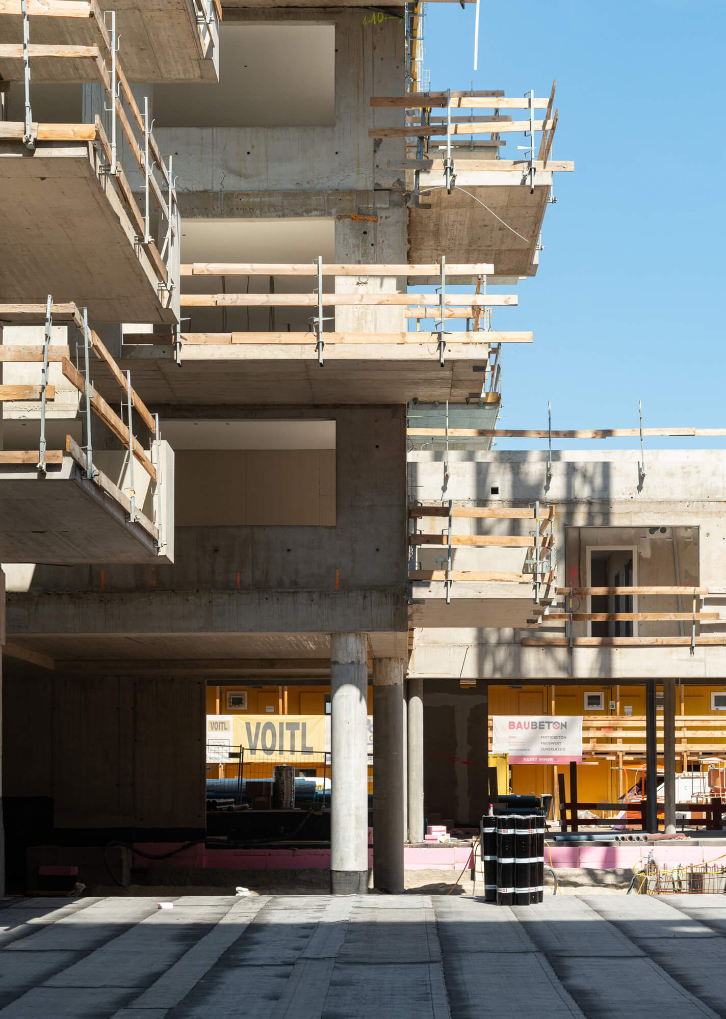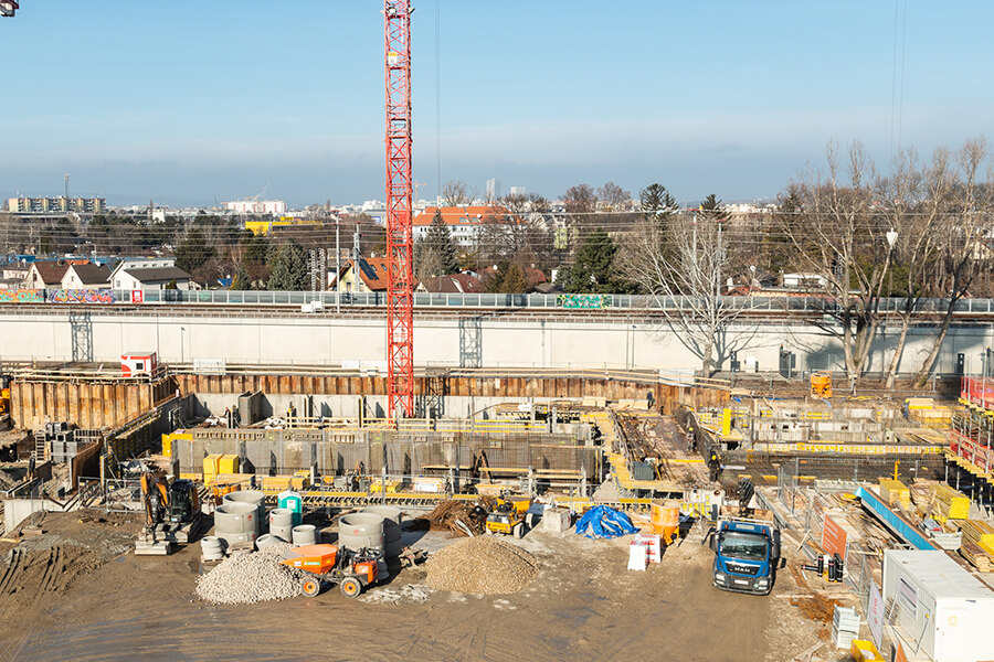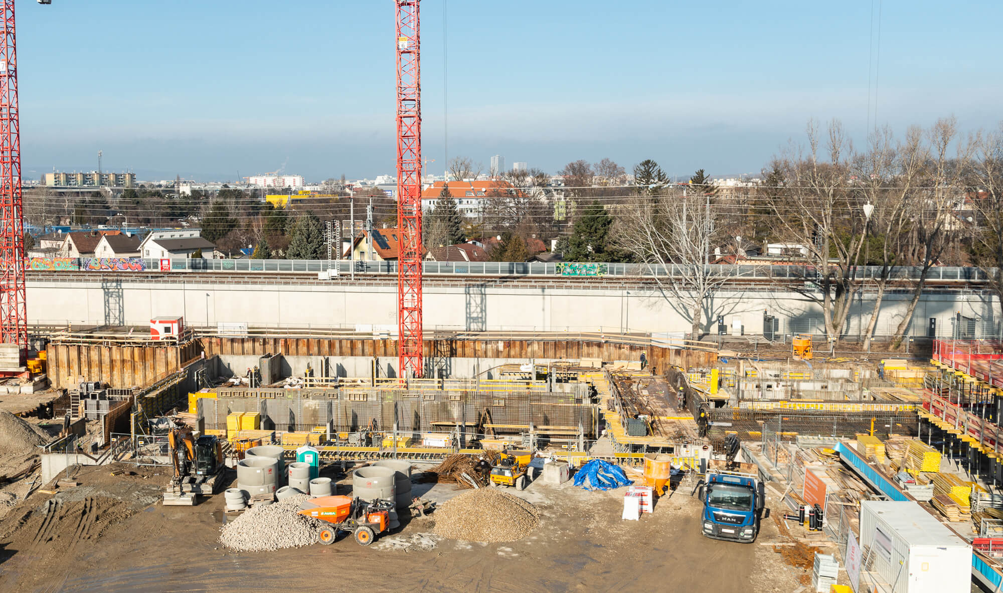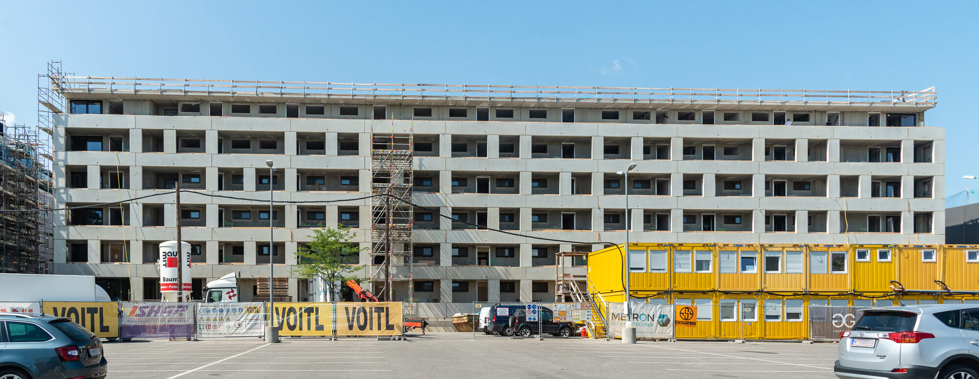 Voitl & Co. als Generalunternehmer im Auftrag der Sozialbau Gemeinnützige Wohnungsaktiengesellschaft eine Wohnhausanlage. Das Projekt umfasst in Summe 242 Wohneinheiten, 1 Geschäftslokal und 2 Tiefgaragen mit 168 Stellplätzen.