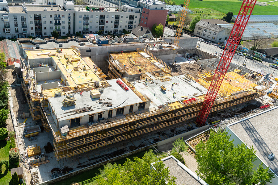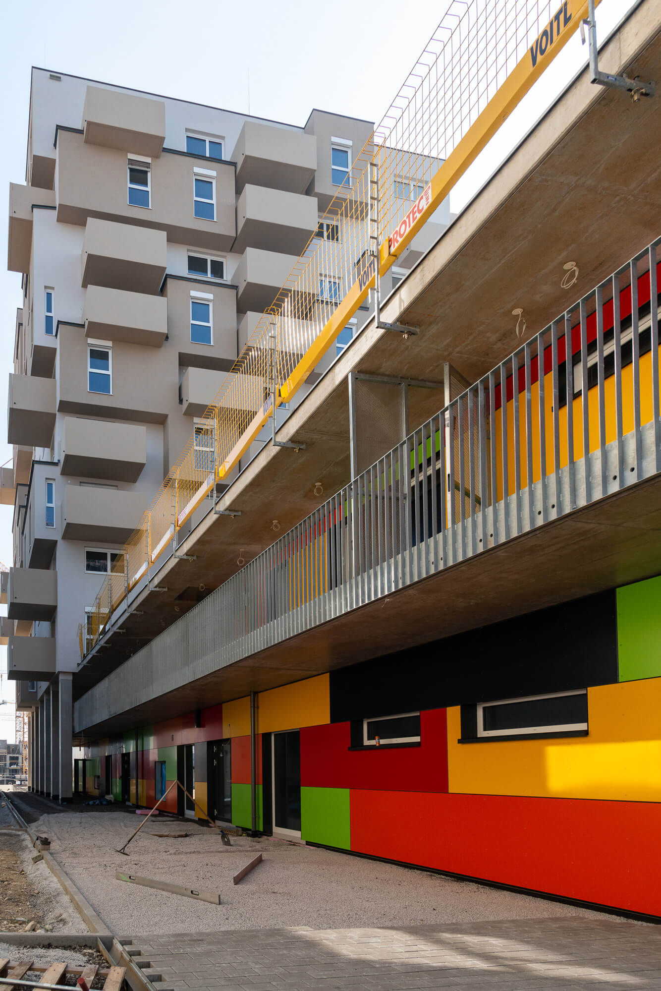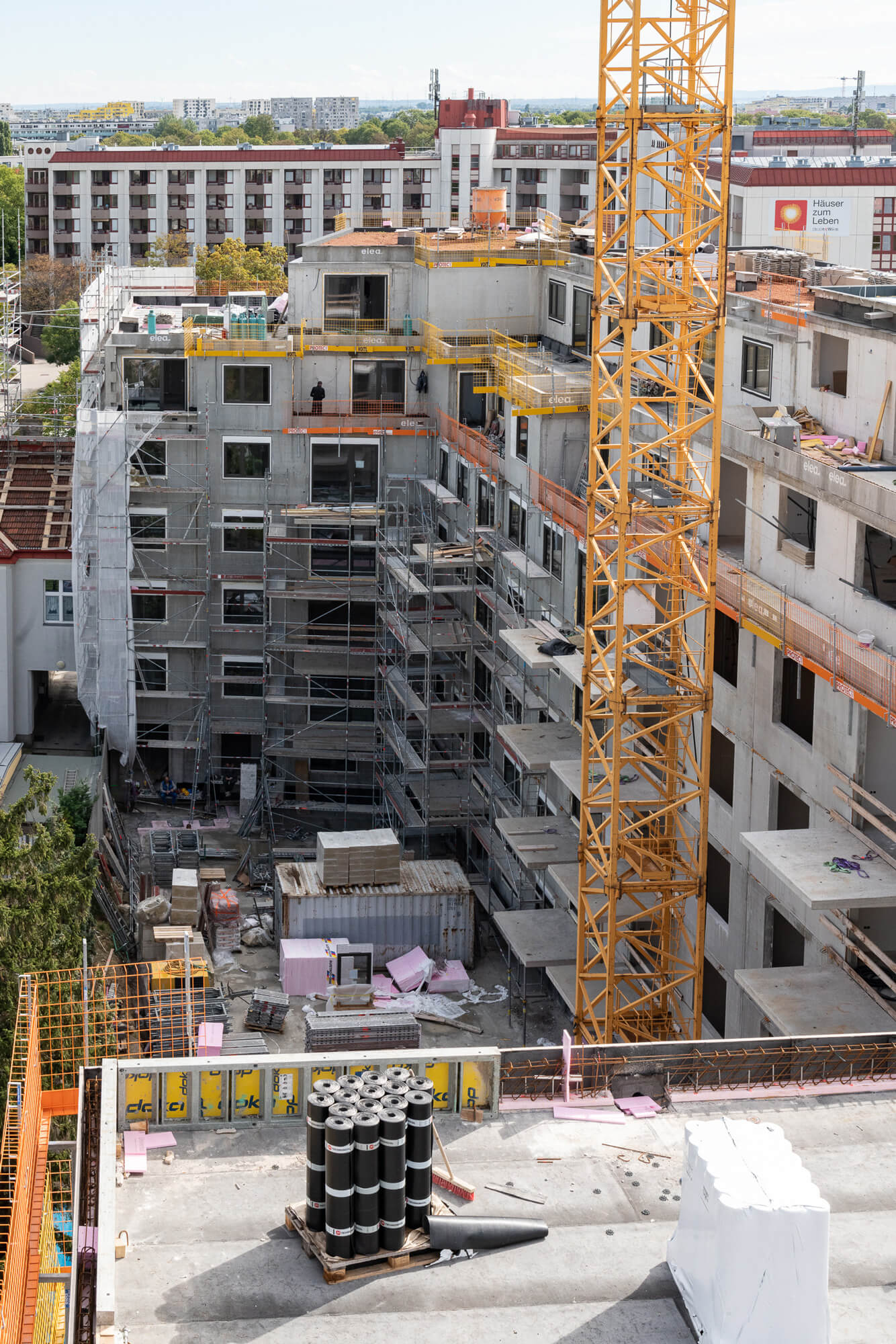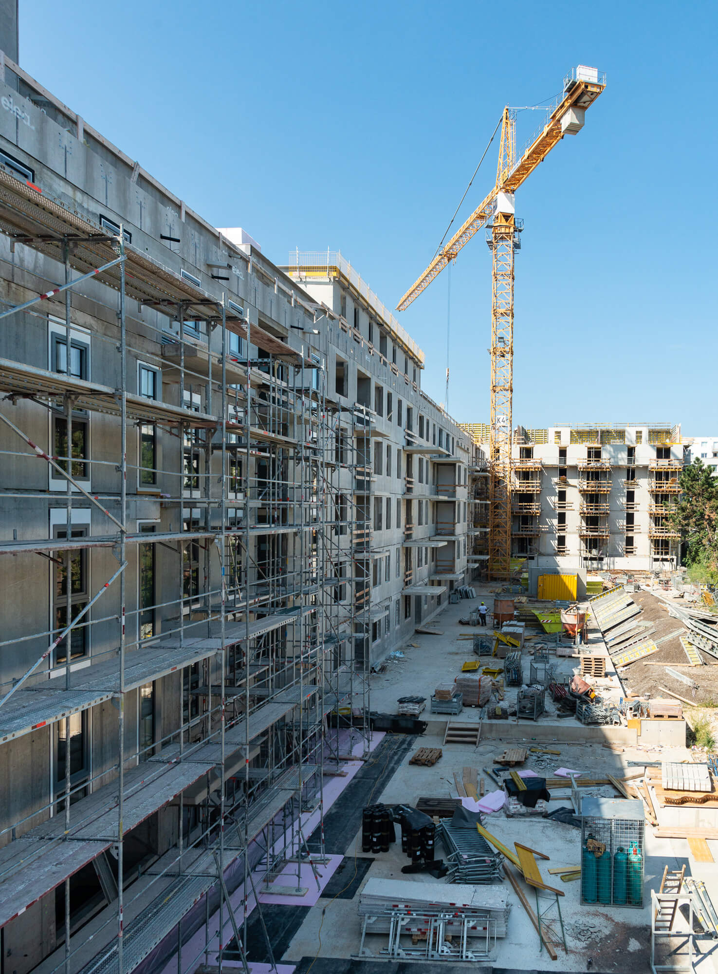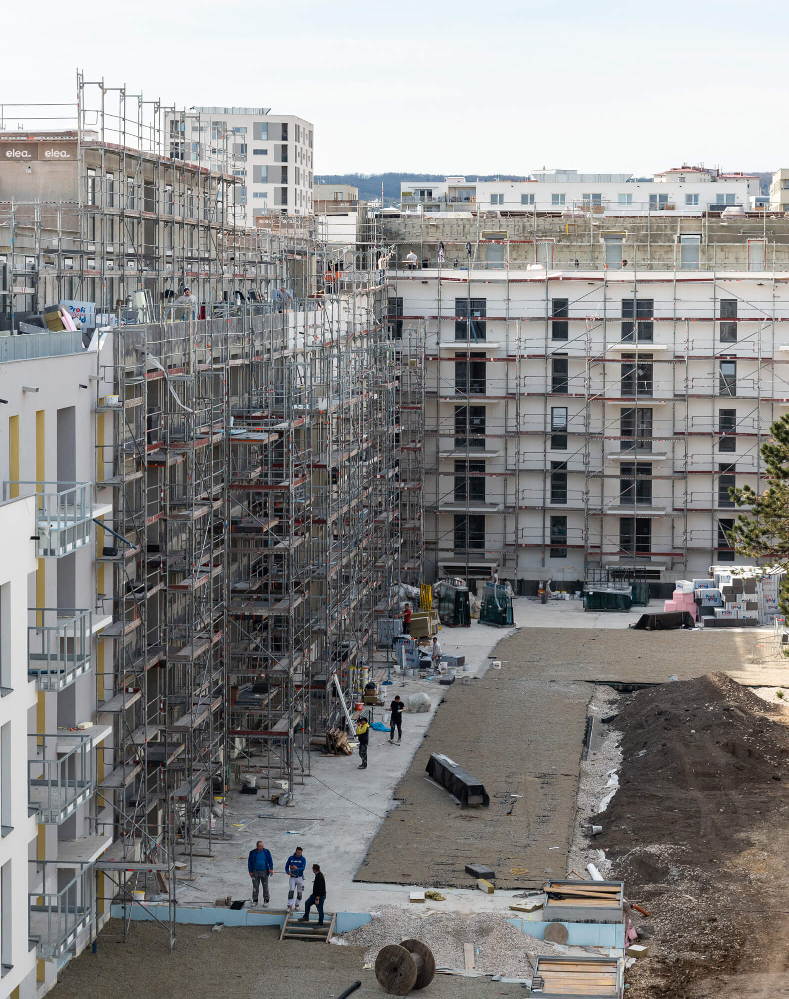 Voitl & Co. als Generalunternehmer im Auftrag der Sozialbau Gemeinnützige Wohnungsaktiengesellschaft eine Wohnhausanlage. Das Projekt umfasst in Summe 242 Wohneinheiten, 1 Geschäftslokal und 2 Tiefgaragen mit 168 Stellplätzen.