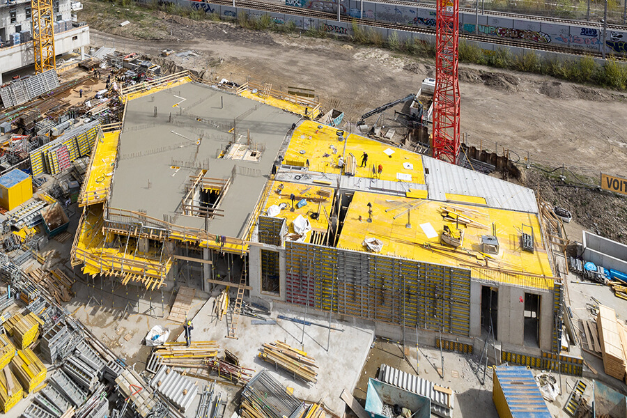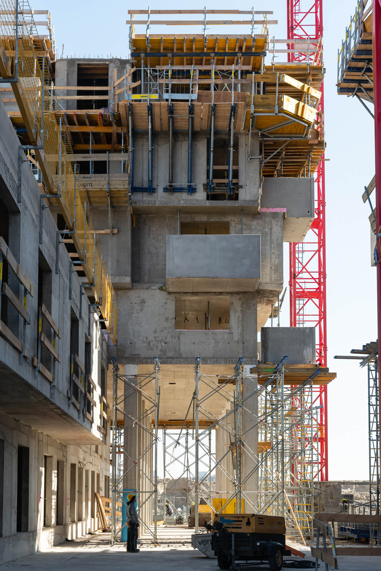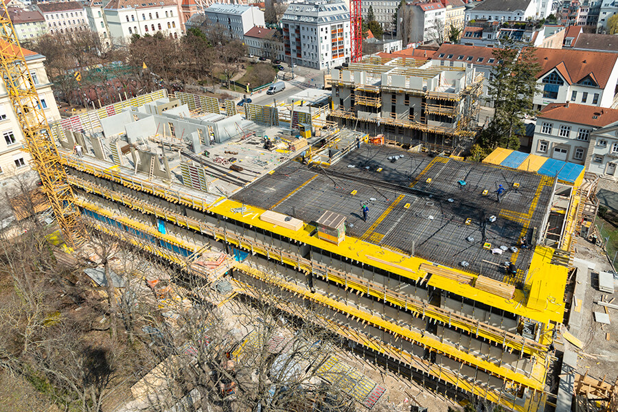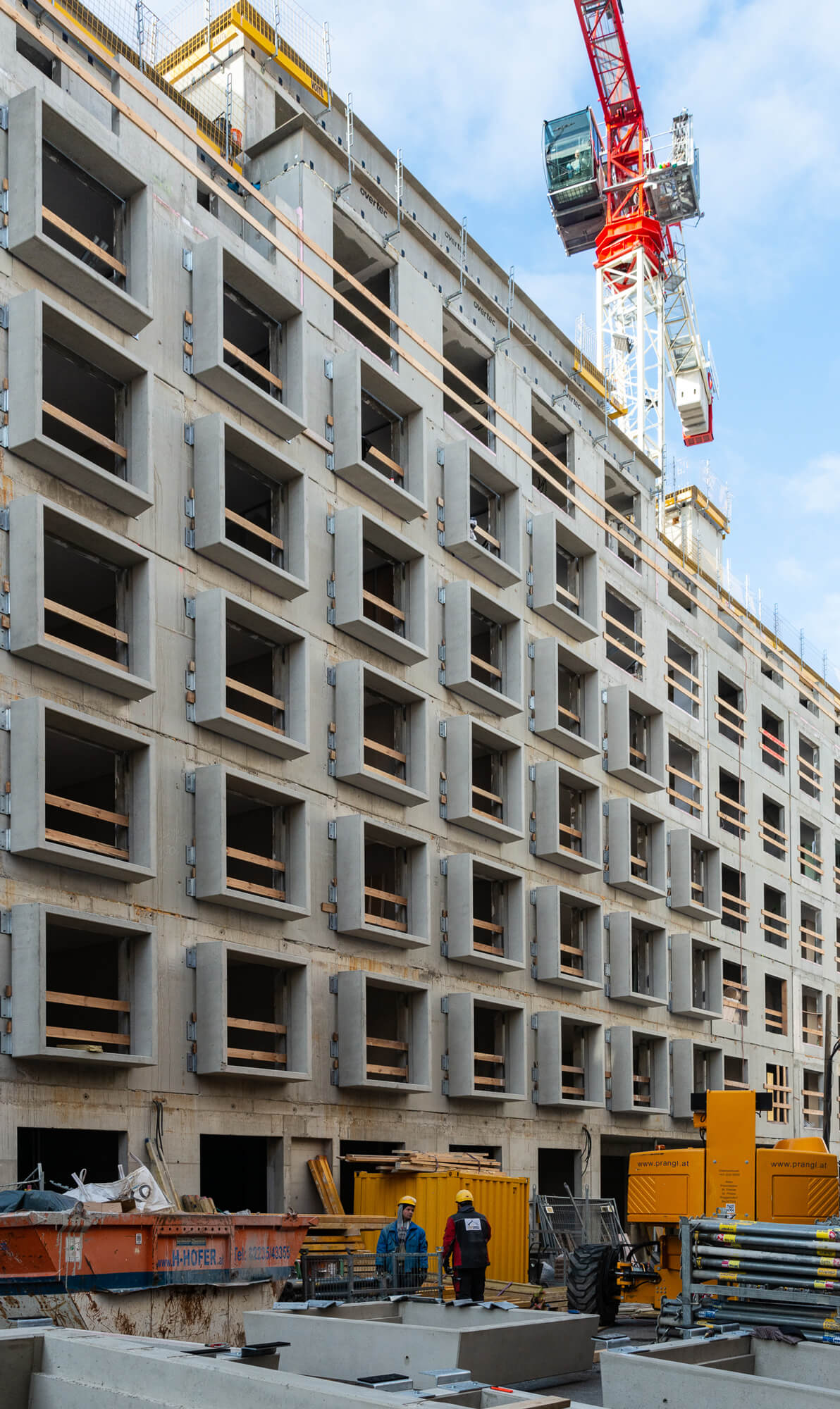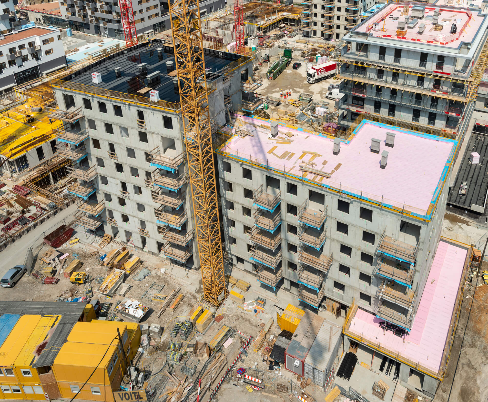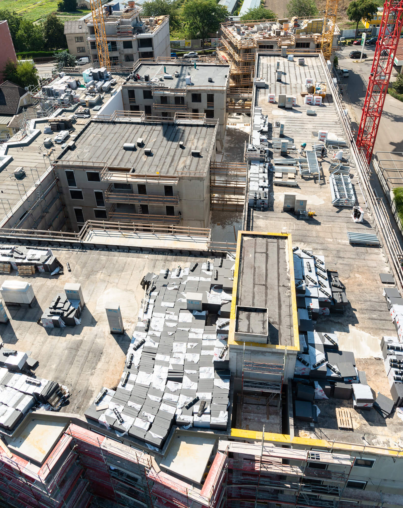 Voitl & Co. als Generalunternehmer im Auftrag der Sozialbau Gemeinnützige Wohnungsaktiengesellschaft eine Wohnhausanlage. Das Projekt umfasst in Summe 242 Wohneinheiten, 1 Geschäftslokal und 2 Tiefgaragen mit 168 Stellplätzen.