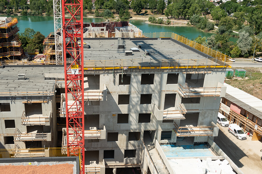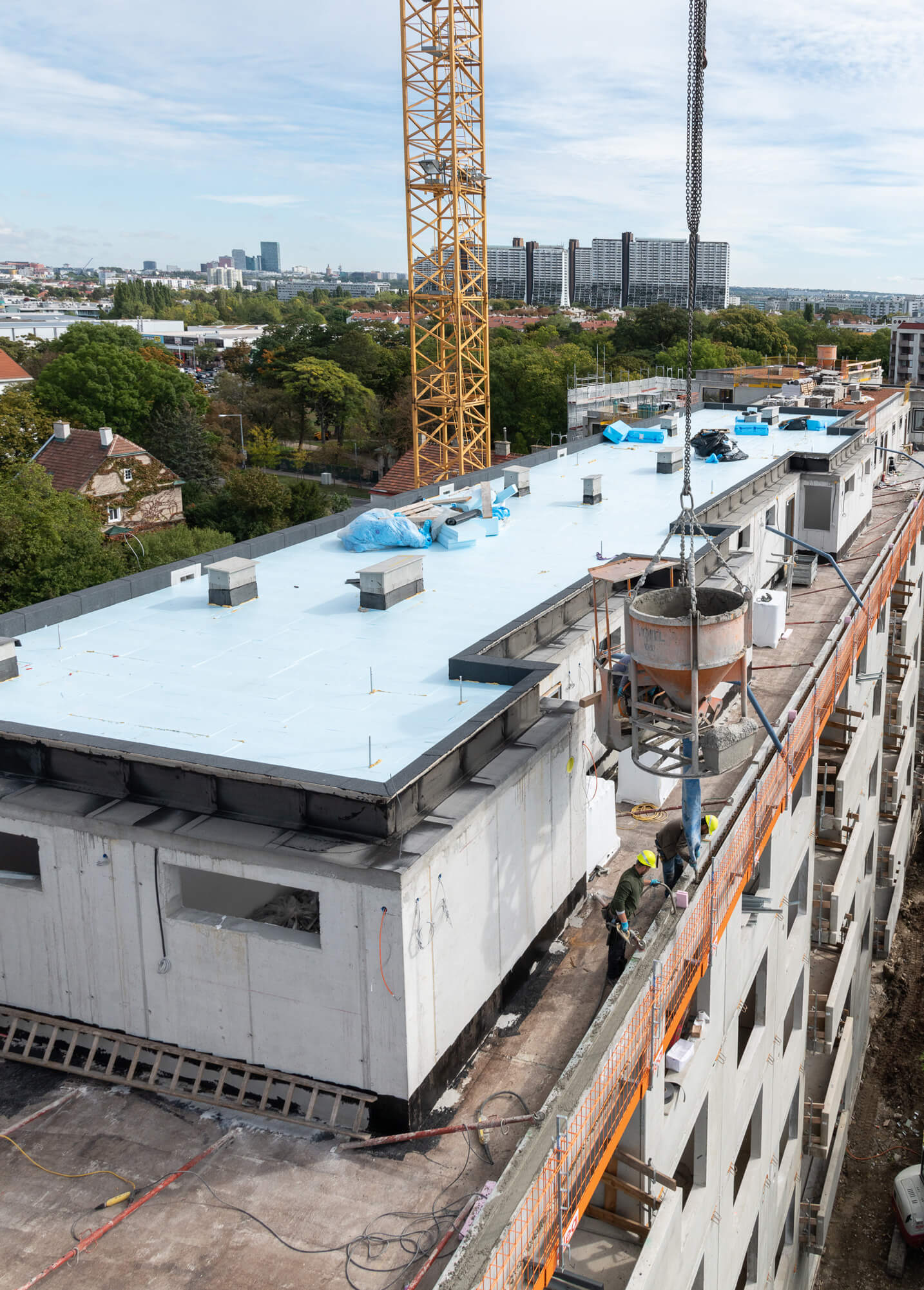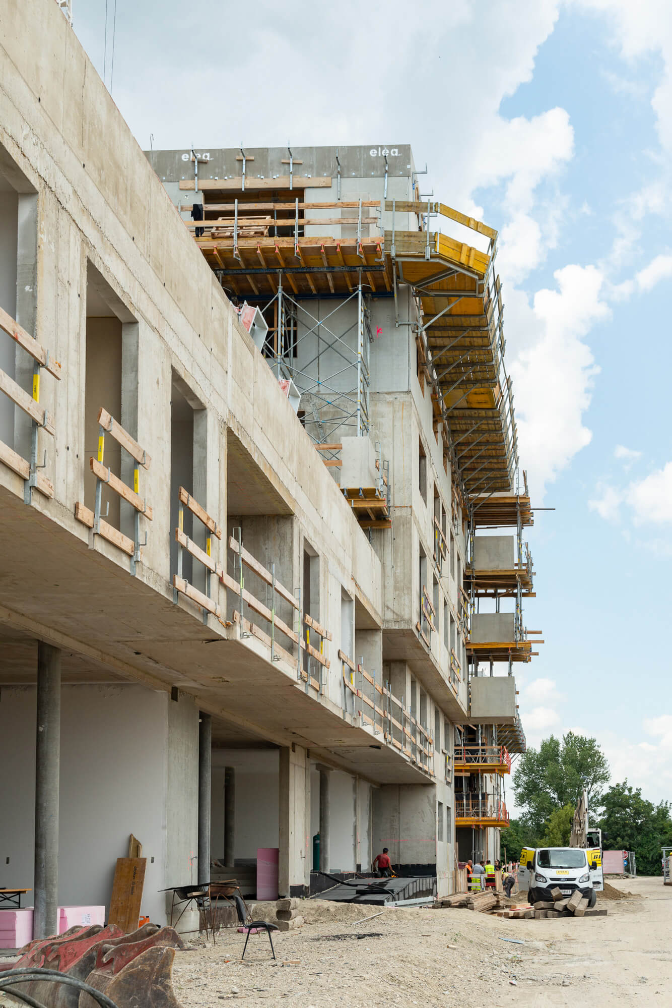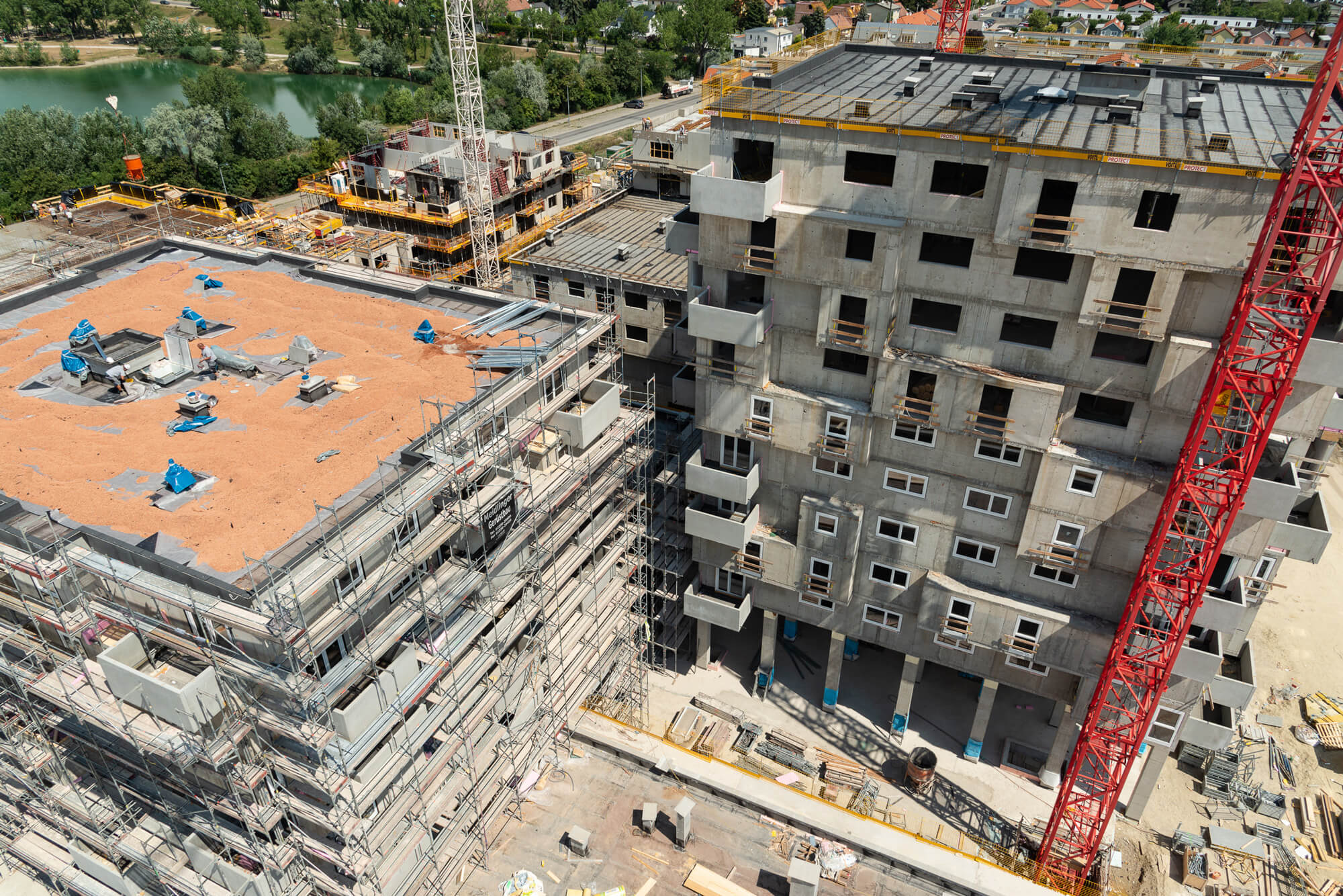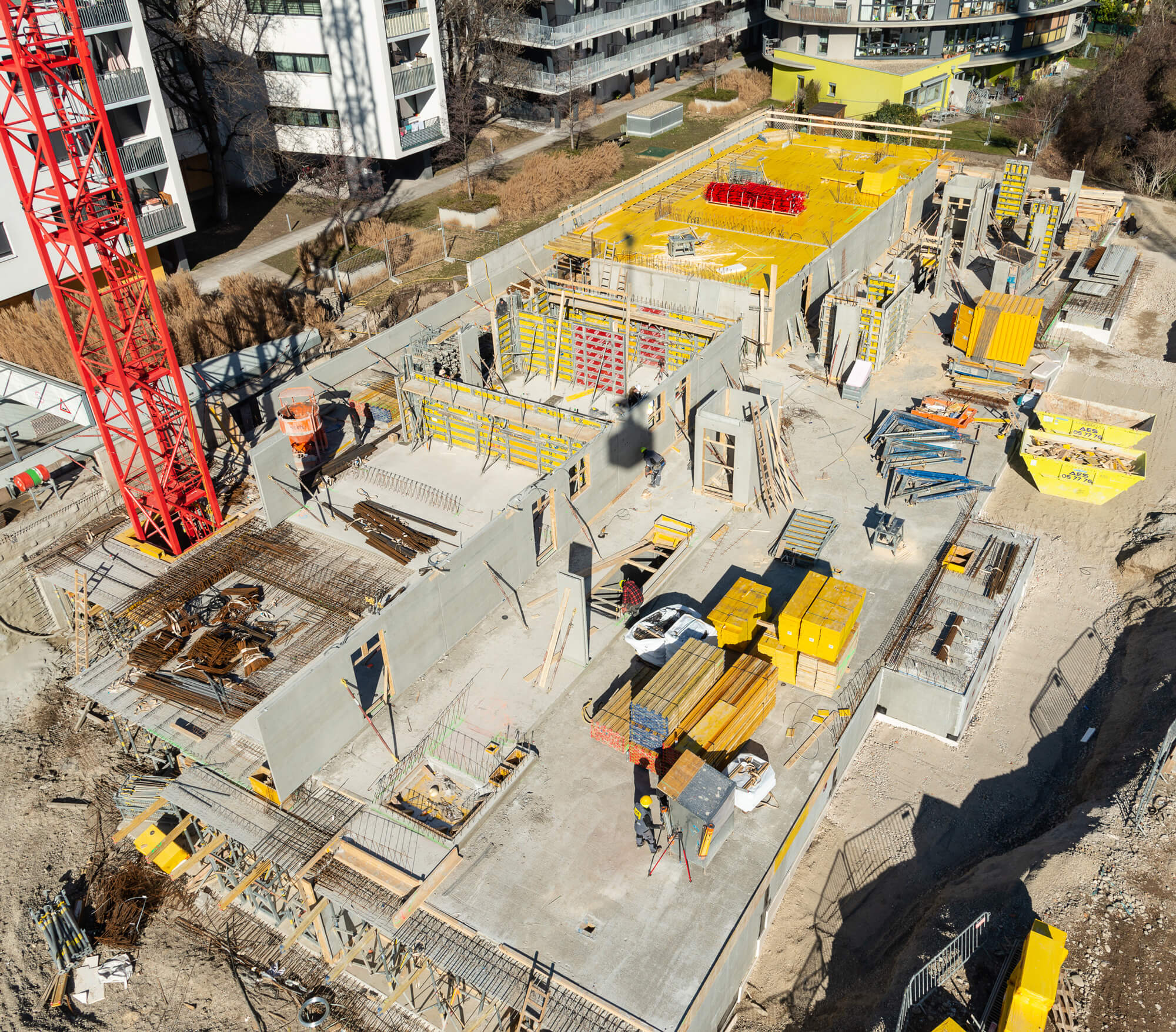 In unmittelbarer Nähe zum Hirschstettner Badeteich, im 22. Wiener Gemeindebezirk, errichtet die Firma Voitl & Co insgesamt 159 geförderte Miet- und Eigentumswohnungen mit Geschäftslokalen und einer Tiefgarage mit einer Kapazität von 118 Stellplätzen.
