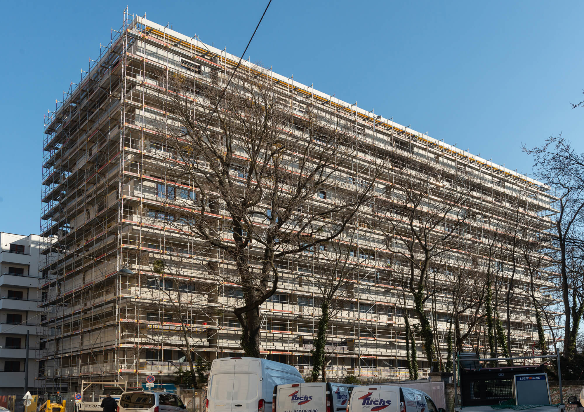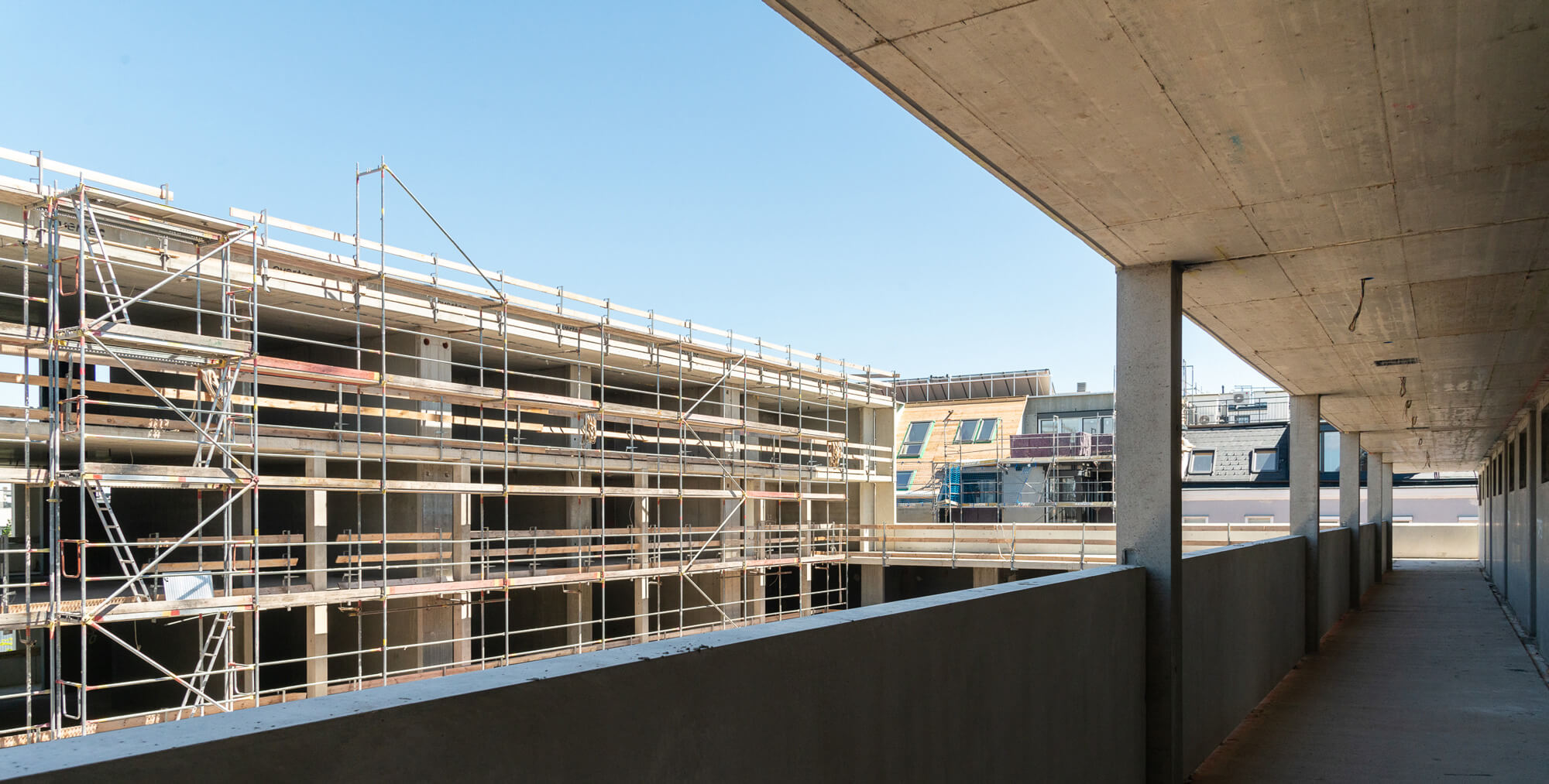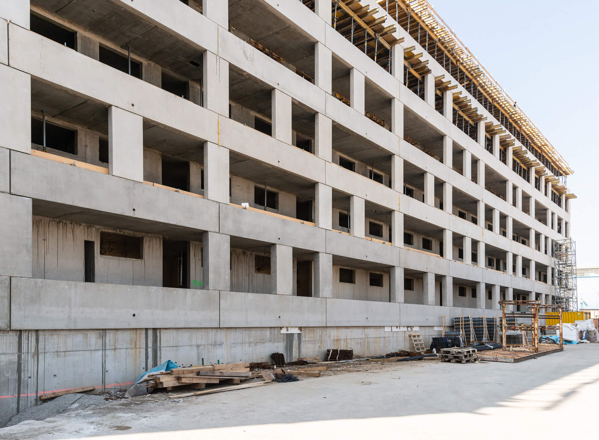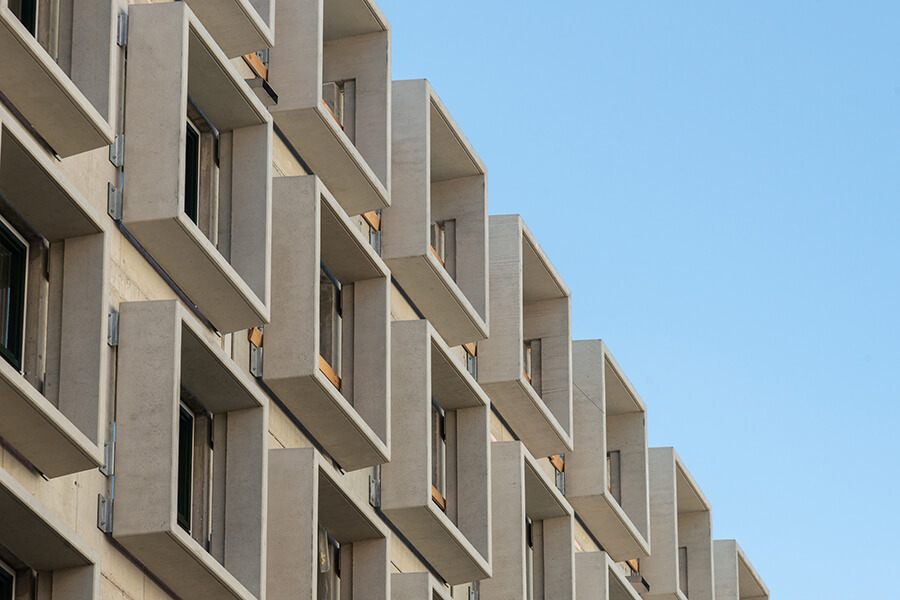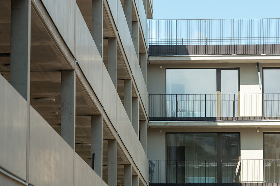 Hauptaugenmerk dieses Bauvorhaben ist die geplante Fertigteilfassade in Weißzement, welche die Loggienbänder bzw. die Laubengänge bildet.