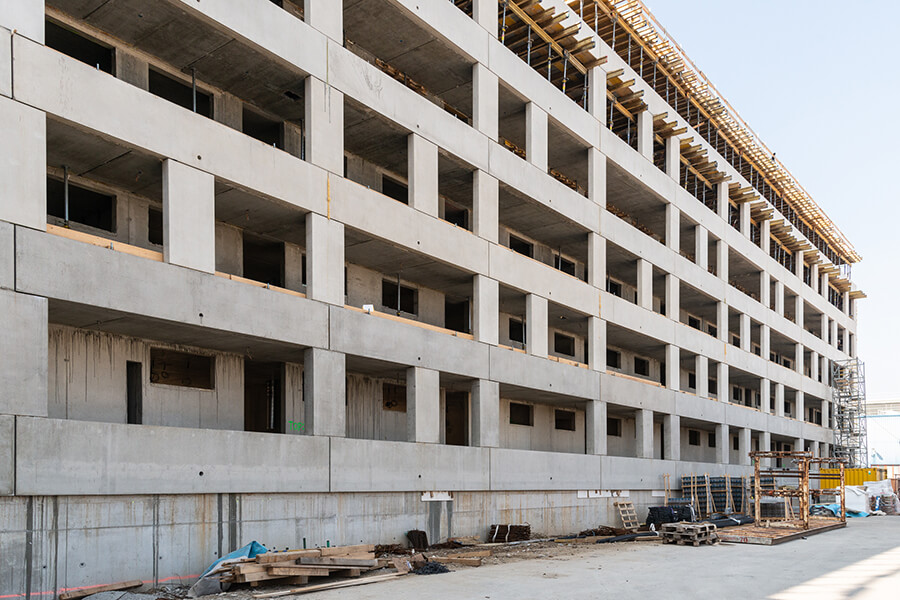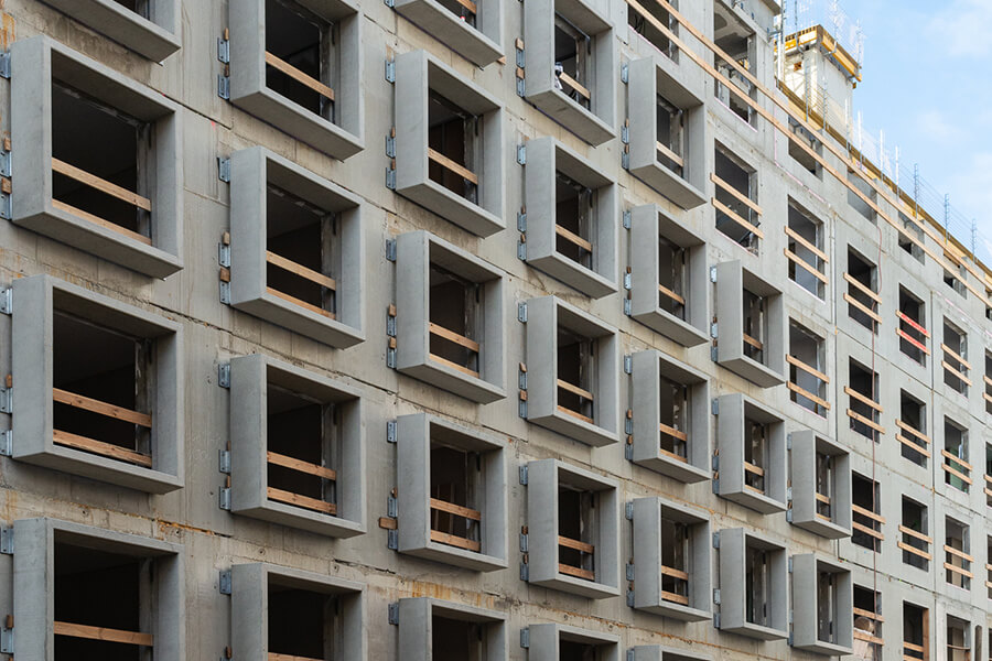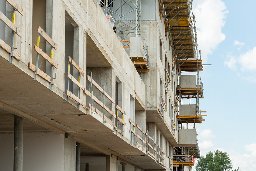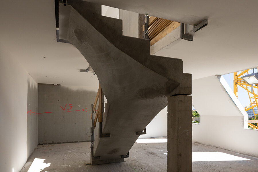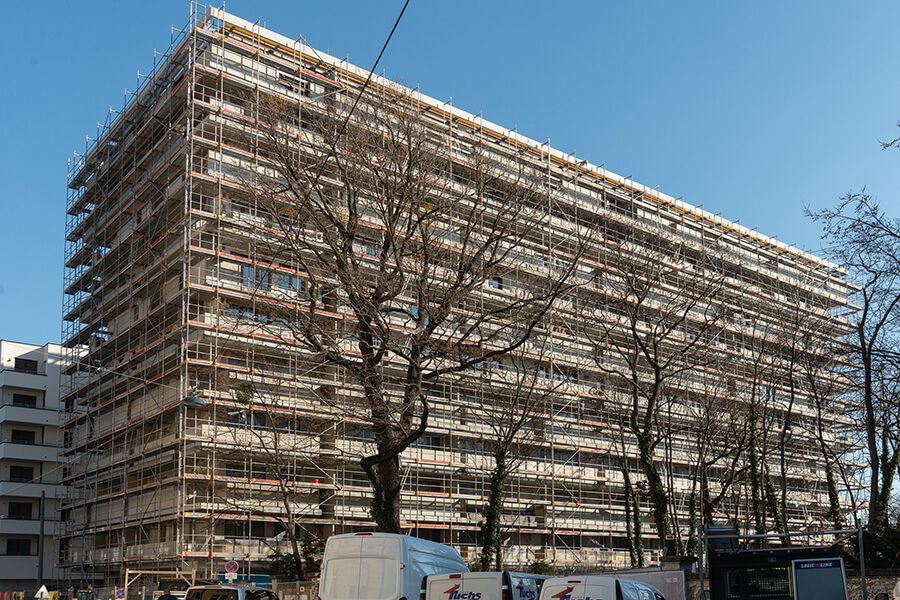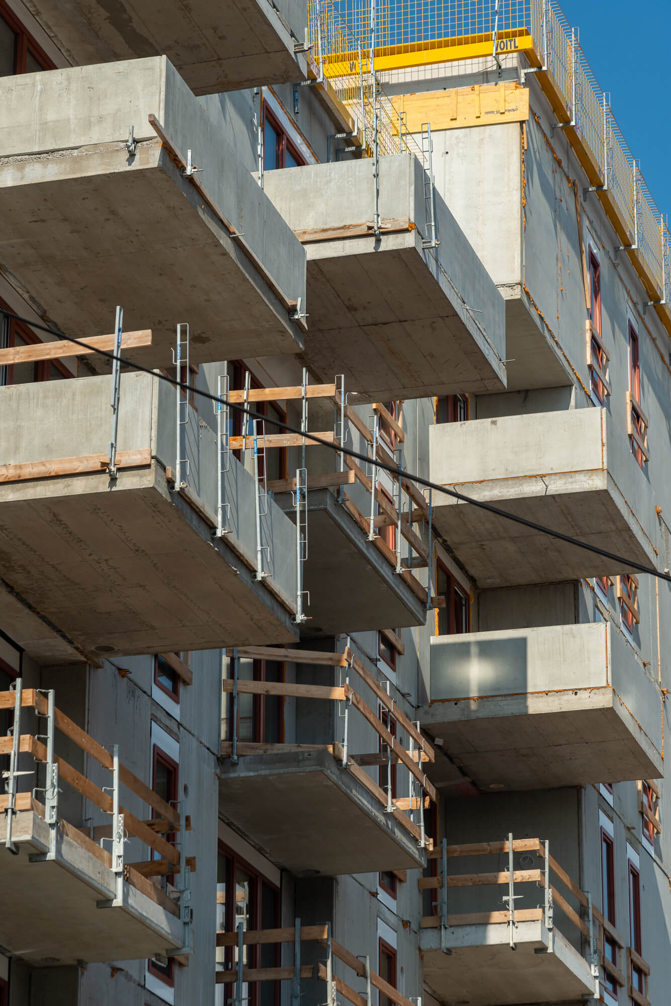 Hauptaugenmerk dieses Bauvorhaben ist die geplante Fertigteilfassade in Weißzement, welche die Loggienbänder bzw. die Laubengänge bildet.