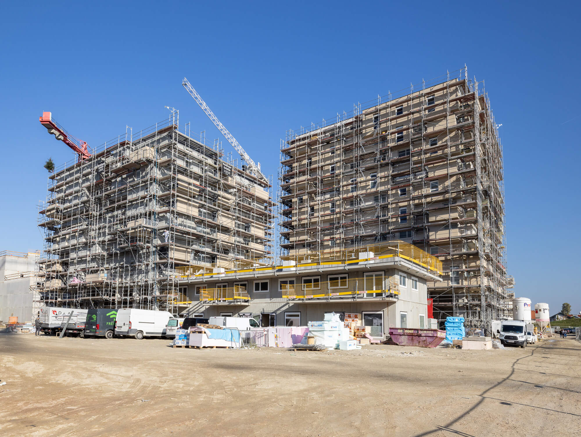 Im neuen Quartier werden in Summe rund 550 geförderte sowie 50 freifinanzierte Wohneinheiten, ein Kindergarten und ein Ärztezentrum entstehen. Die verschiedenen Bauplätze gruppieren sich um einen Park, der als grünes Zentrum mit Spielplatz und Erholungsfläche dient.