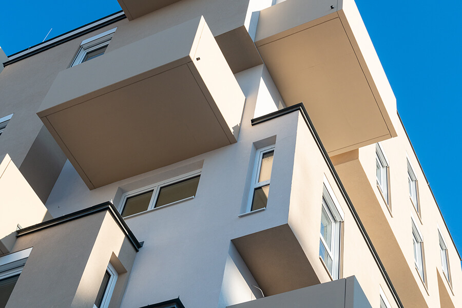 Alle Wohnungen bieten einen Freibereich wie Balkon, Terrasse oder Loggia und attraktive Ausblicke.