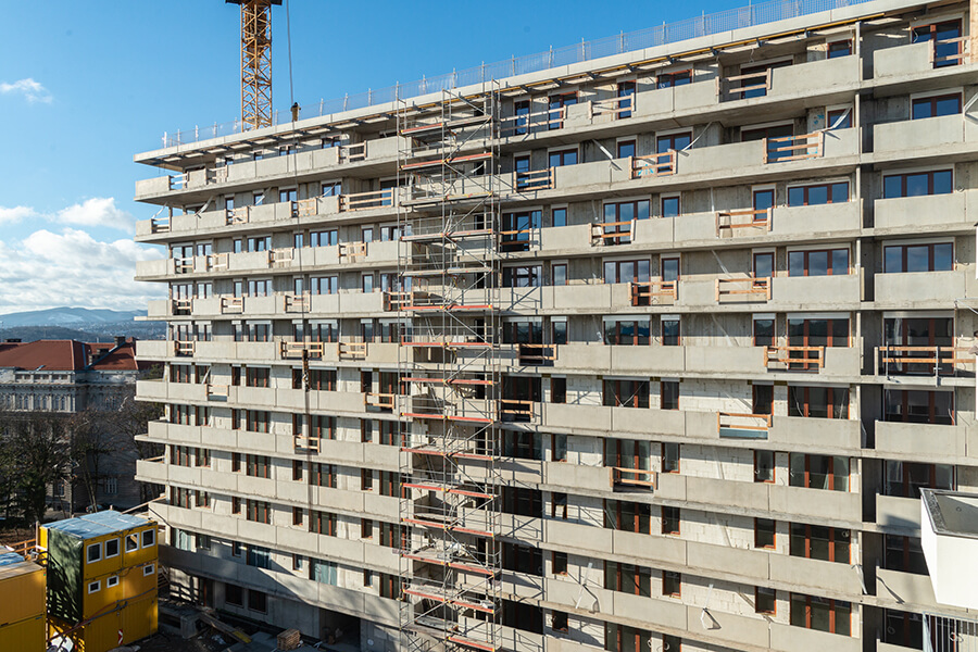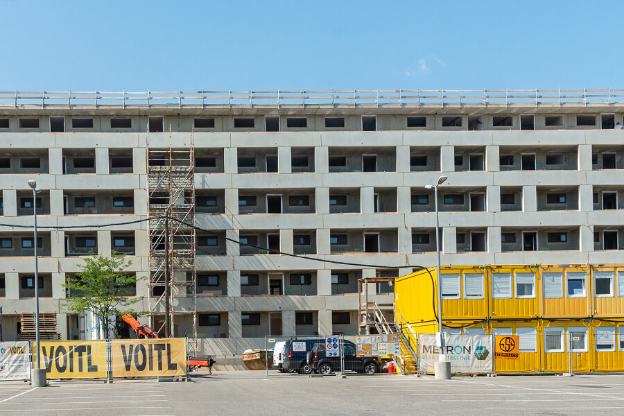 Auf dem ehemaligen ÖBB Gelände entstehen 150 Mietwohnungen, ein Geschäftslokal, eine Tiefgarage mit 66 Stellplätzen sowie unzählige Fahrradabstellmöglichkeiten im Erdgeschoß.