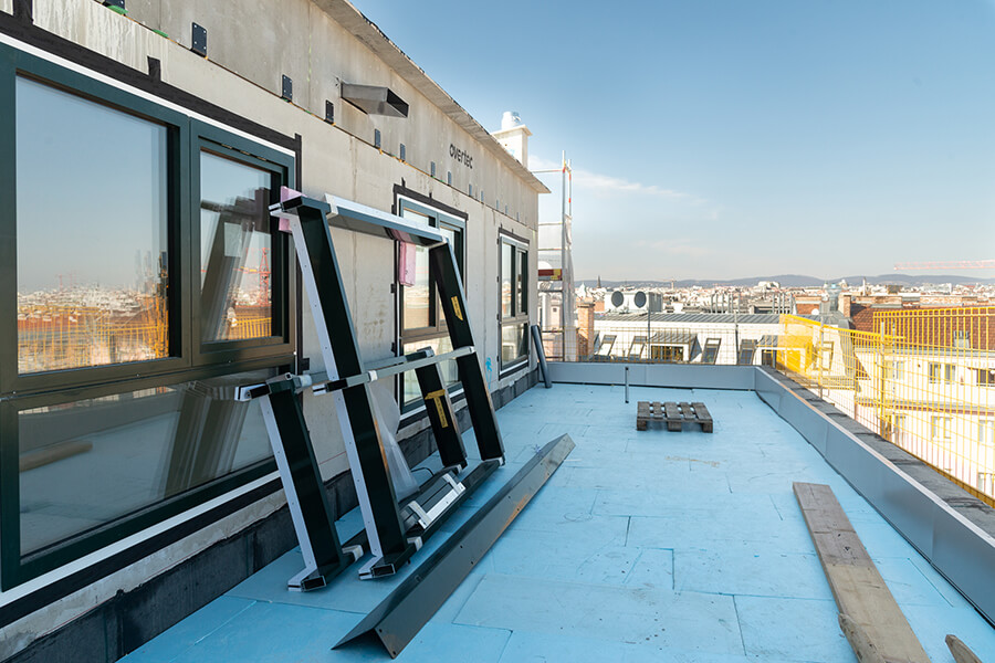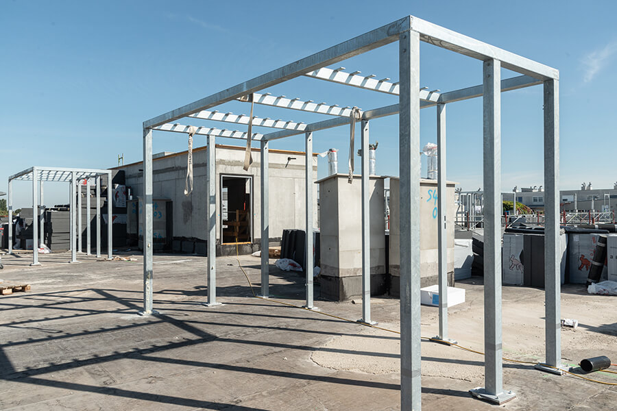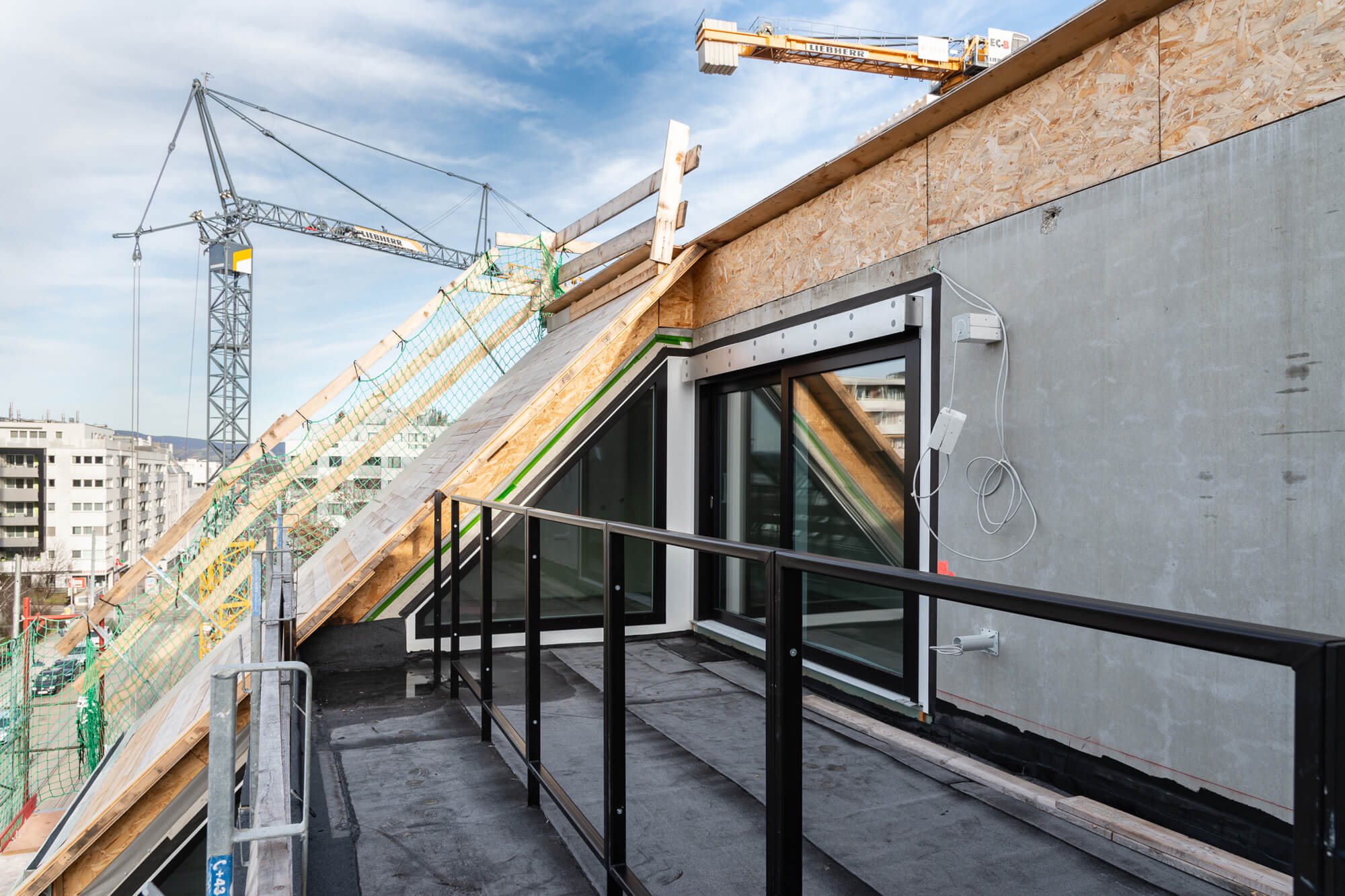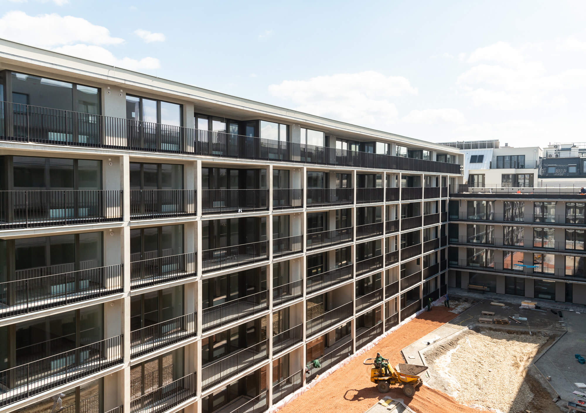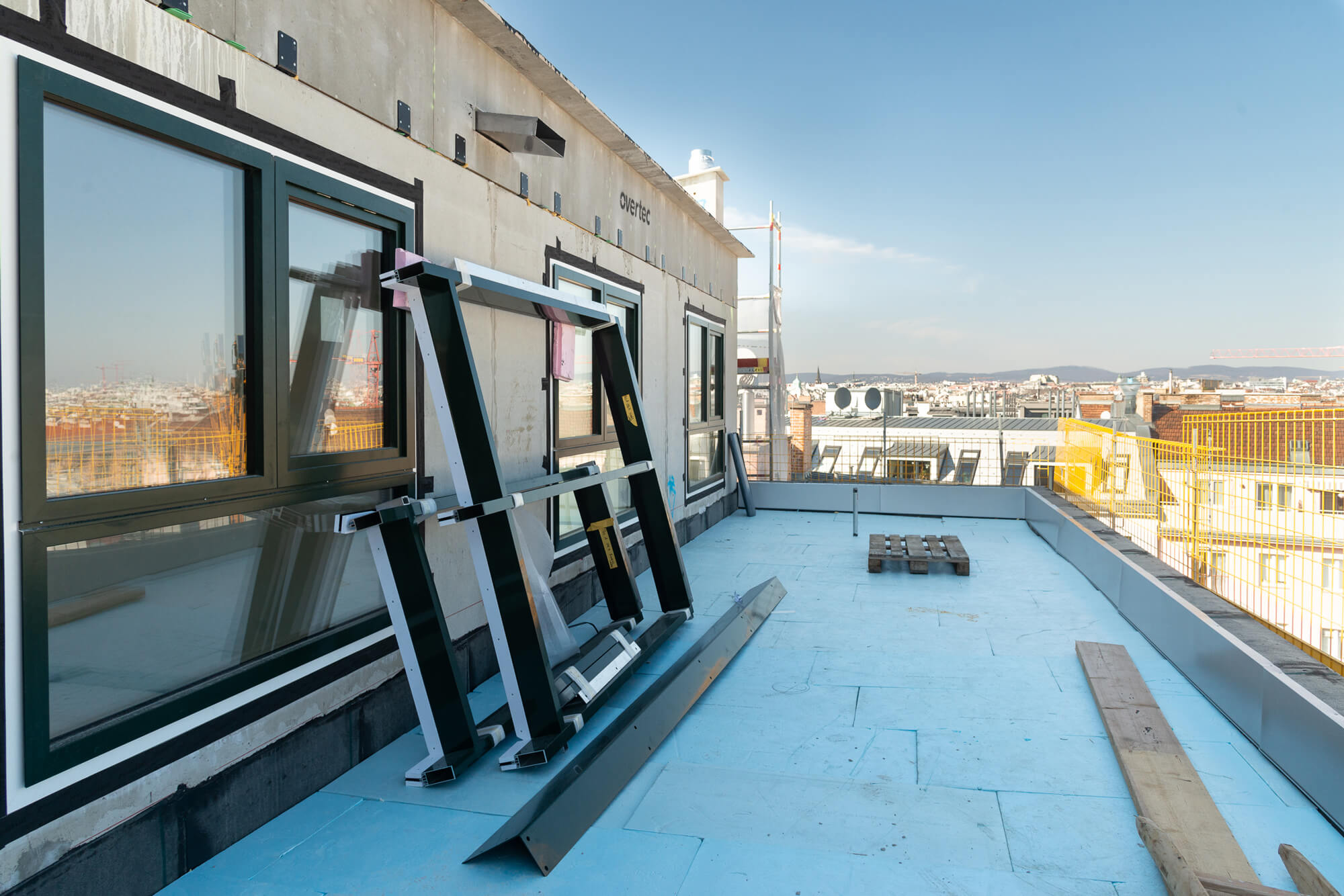 Weiters verfügen alle Wohneinheiten über Freiflächen wie Terrassen, Balkone und Loggien. Auf den niedrigen Seitentrakten befinden sich Dachterrassen, die von den Mietern genutzt werden können.