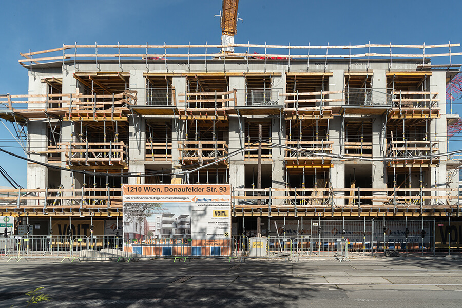 Als Generalunternehmer errichtet die Fa. Voitl & Co. in der Donaufelder Straße 93 im 21. Wiener Gemeindebezirk eine Niedrigenergie-Wohnhausanlage bestehend aus 107 Wohneinheiten. Die Größe der Wohnungen erstreckt sich von 45 bis 130 m2 Wohnnutzfläche.