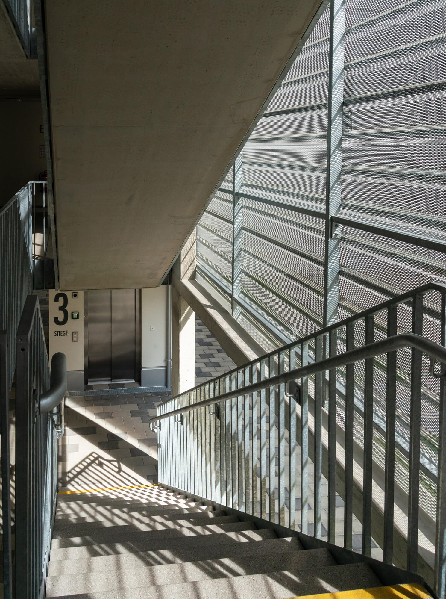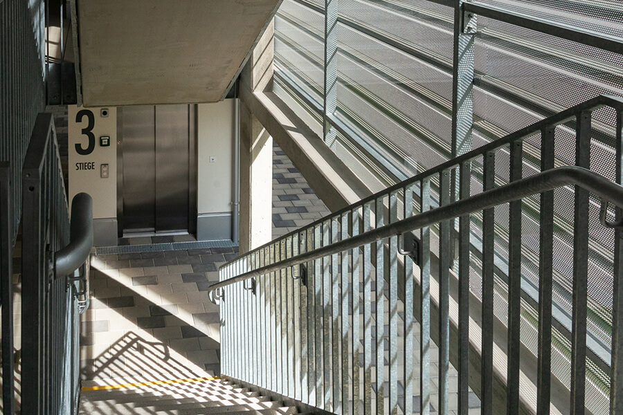 Die erforderlichen PKW-Stellplätze werden in der Tiefgarage sichergestellt, deren Erschließung direkt über das Stiegenhaus erfolgt.