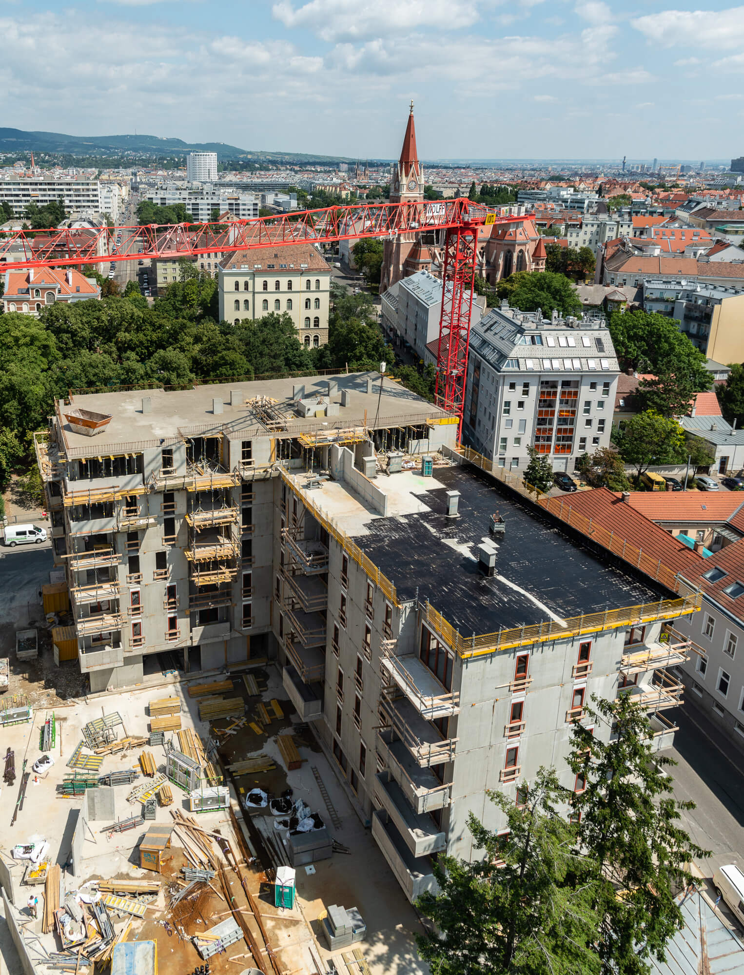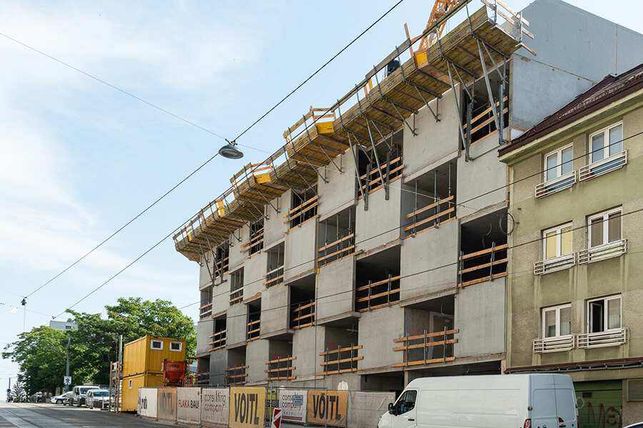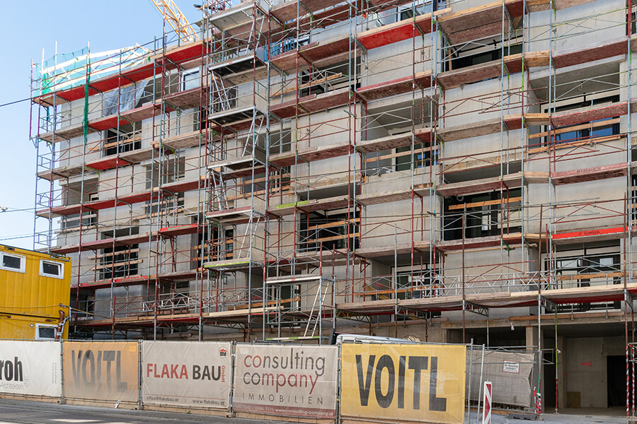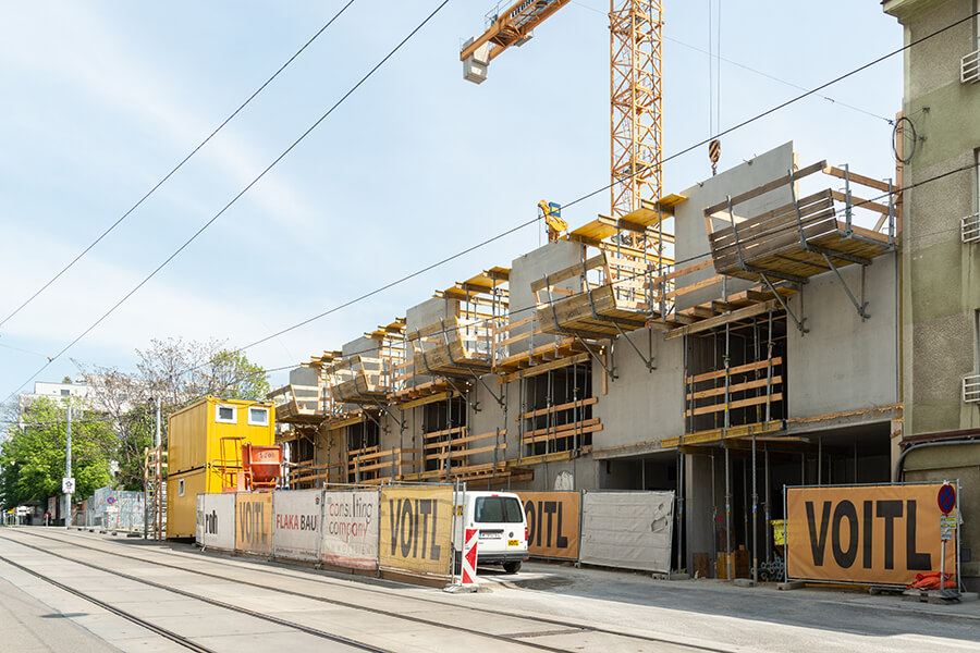 Die Firma Voitl & Co. errichtet für den Bauträger CC Realinvest GmbH eine schlüsselfertige Wohnhausanlage in der Huttengasse 6-8, 1140 Wien.