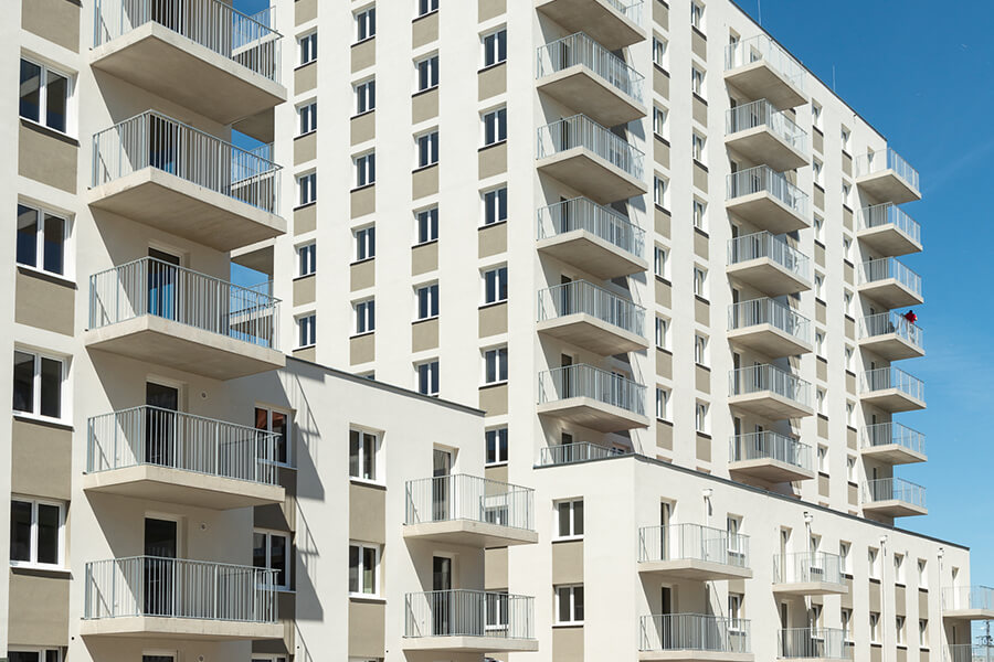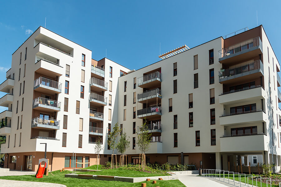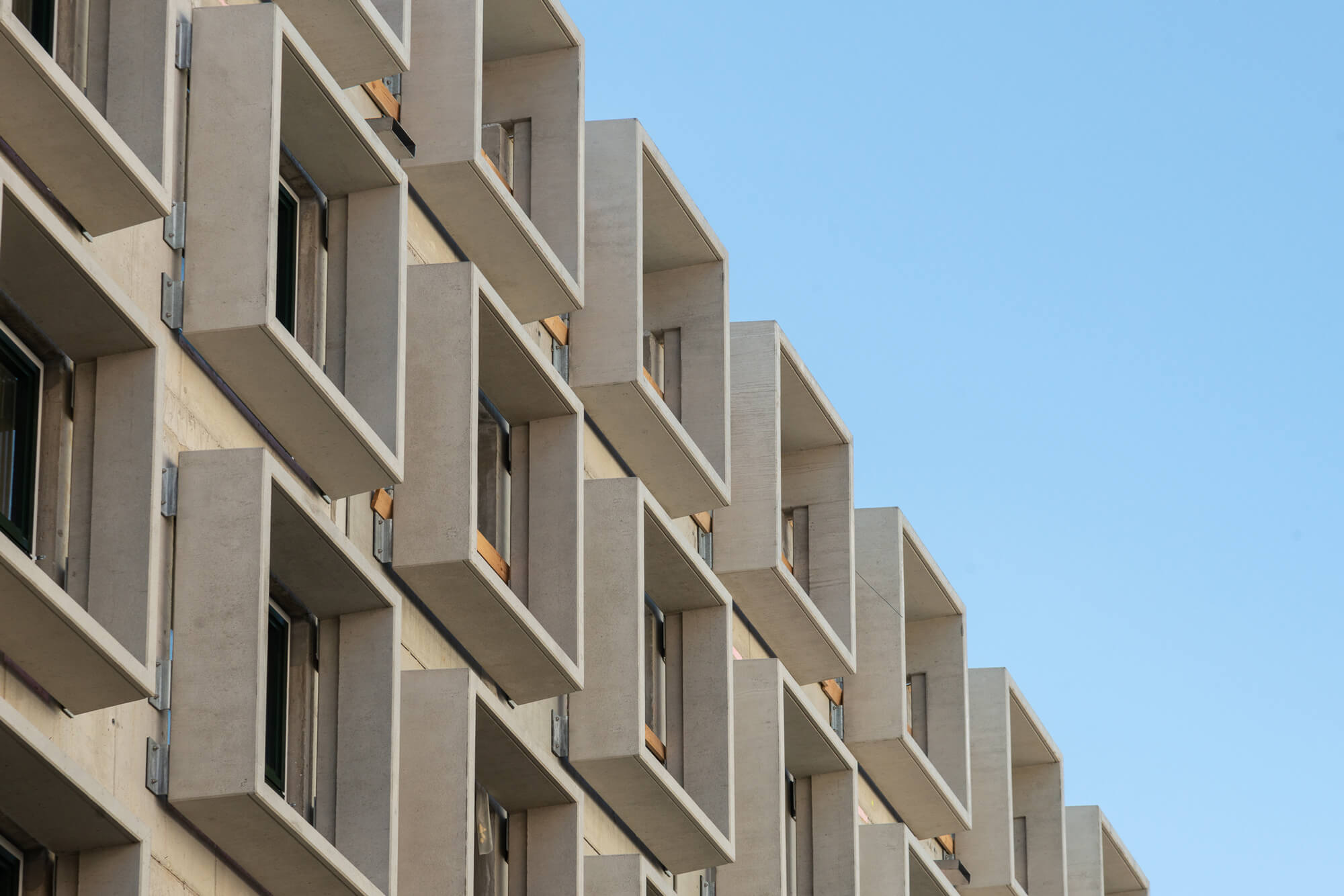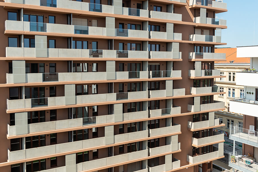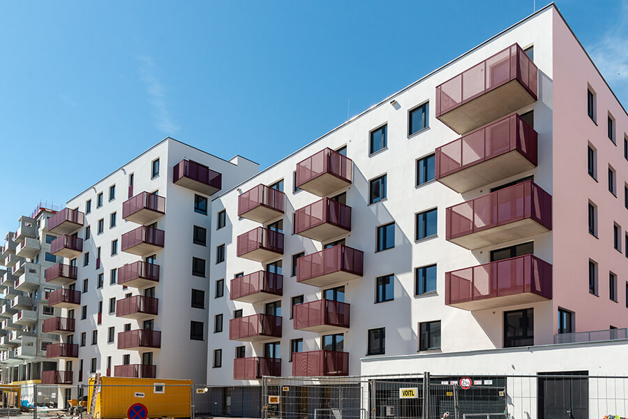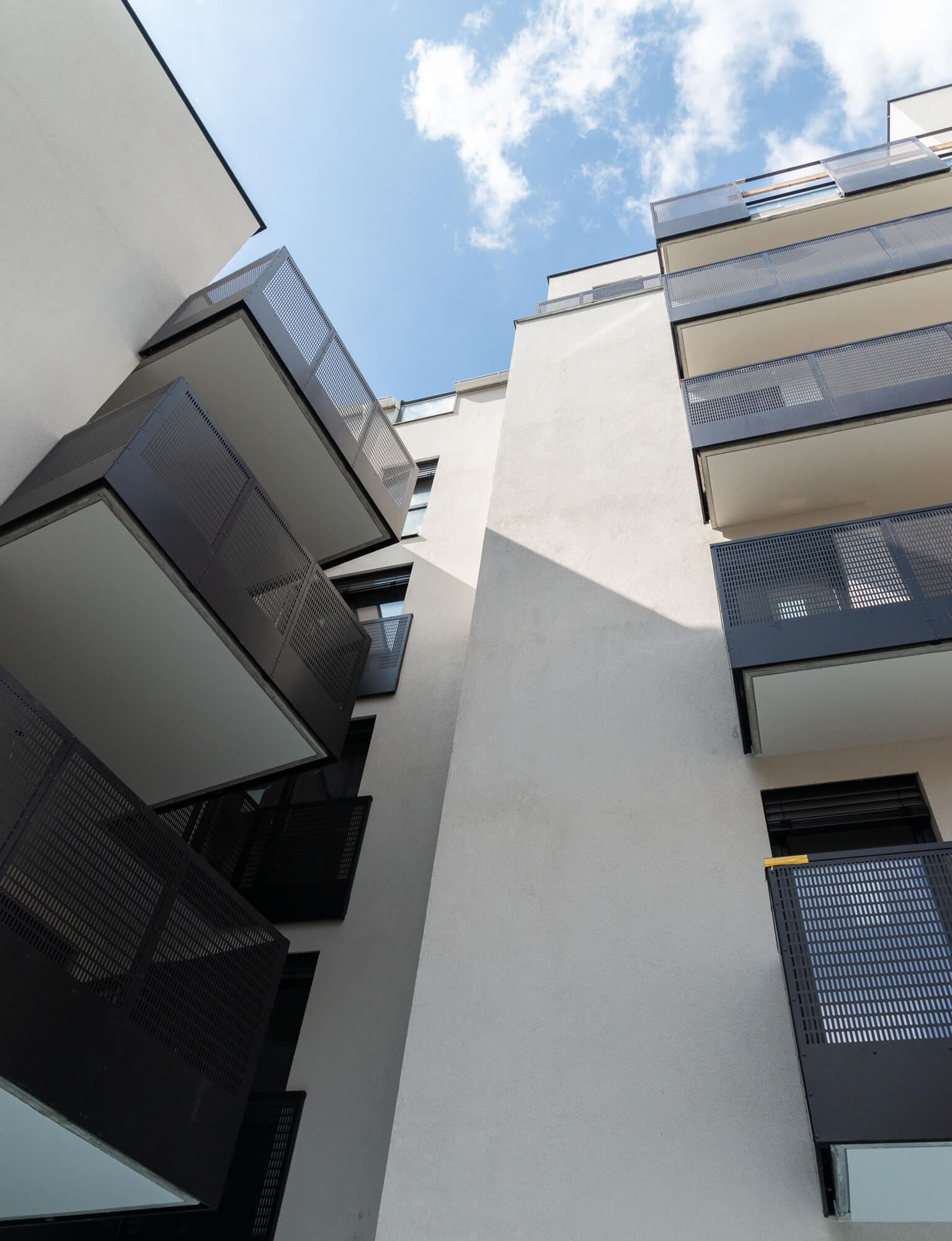 Die lichtdurchfluteten Wohnungen verfügen über Größen von 44 m2 bis 99 m2 und bieten je Einheit geräumige Freiflächen wie Balkone, Loggien oder Terrassen.