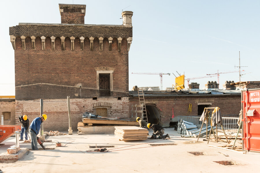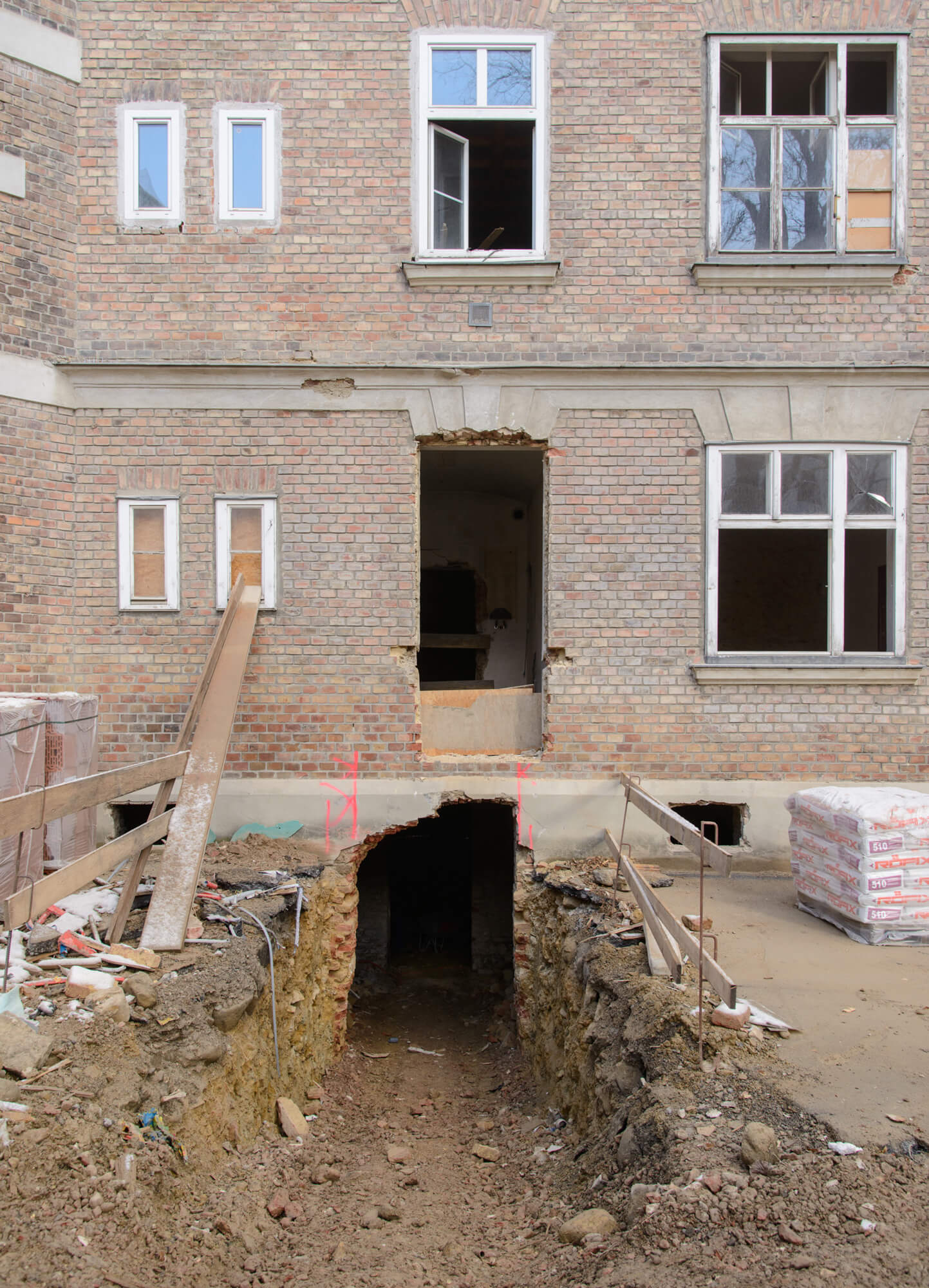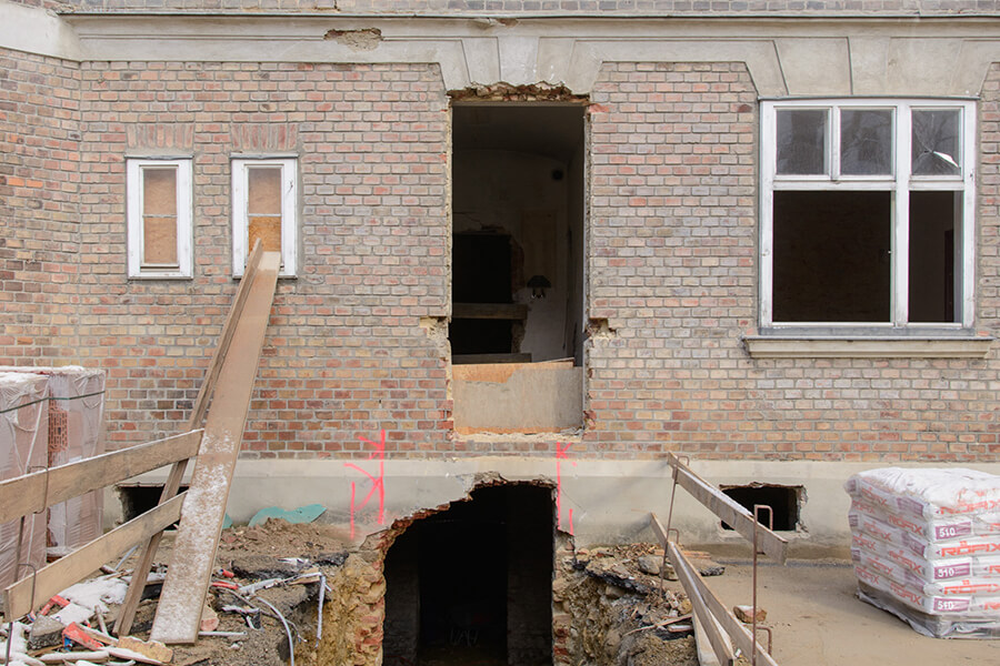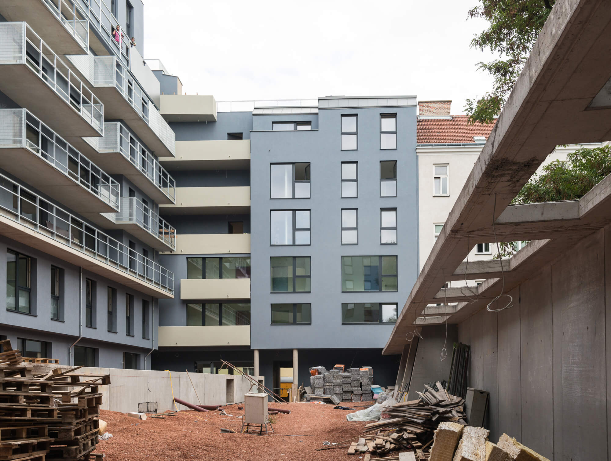 Die Arbeiten umfassen die Sanierung der denkmalgeschützten Straßenfassade, den Abbruch des gesamten Daches, den Abbruch des gesamten Hoftraktes bis zur Mittelmauer und das Vorziehen der Stiegenhäuser bzw. Geschoße auf die innere Baufluchtlinie. Zur Erhaltung der Bestandsbausubstanz wird das Mauerwerk trockengelegt.