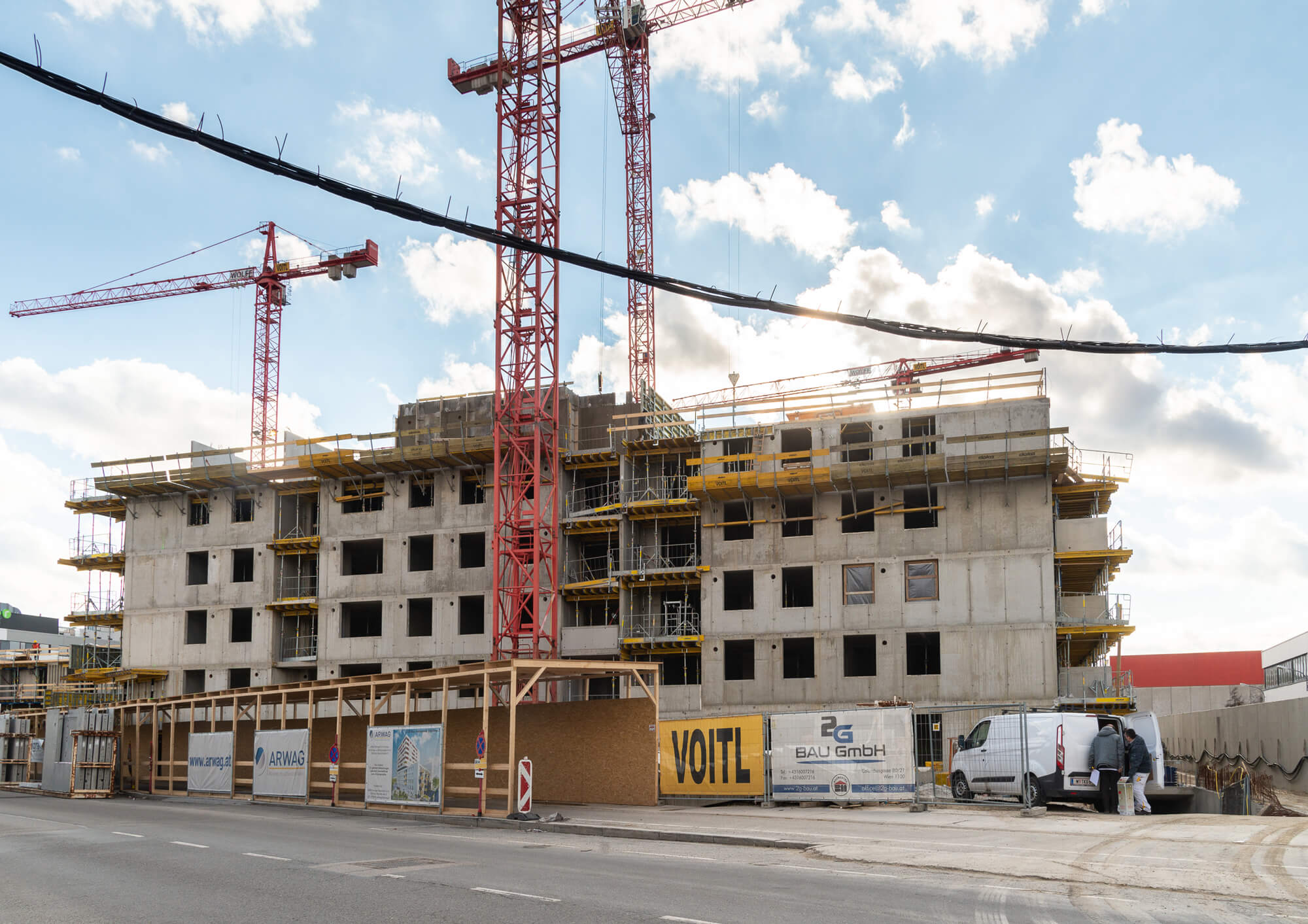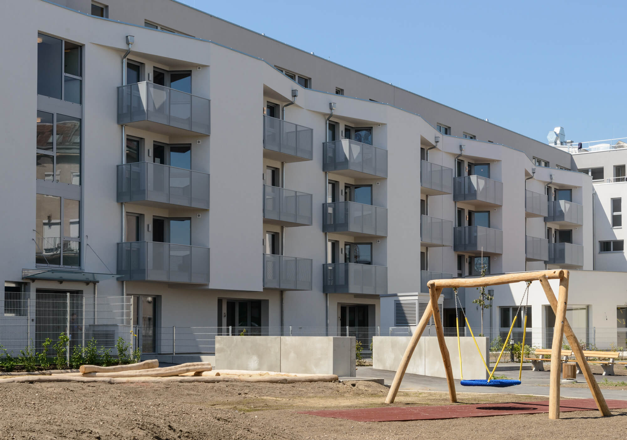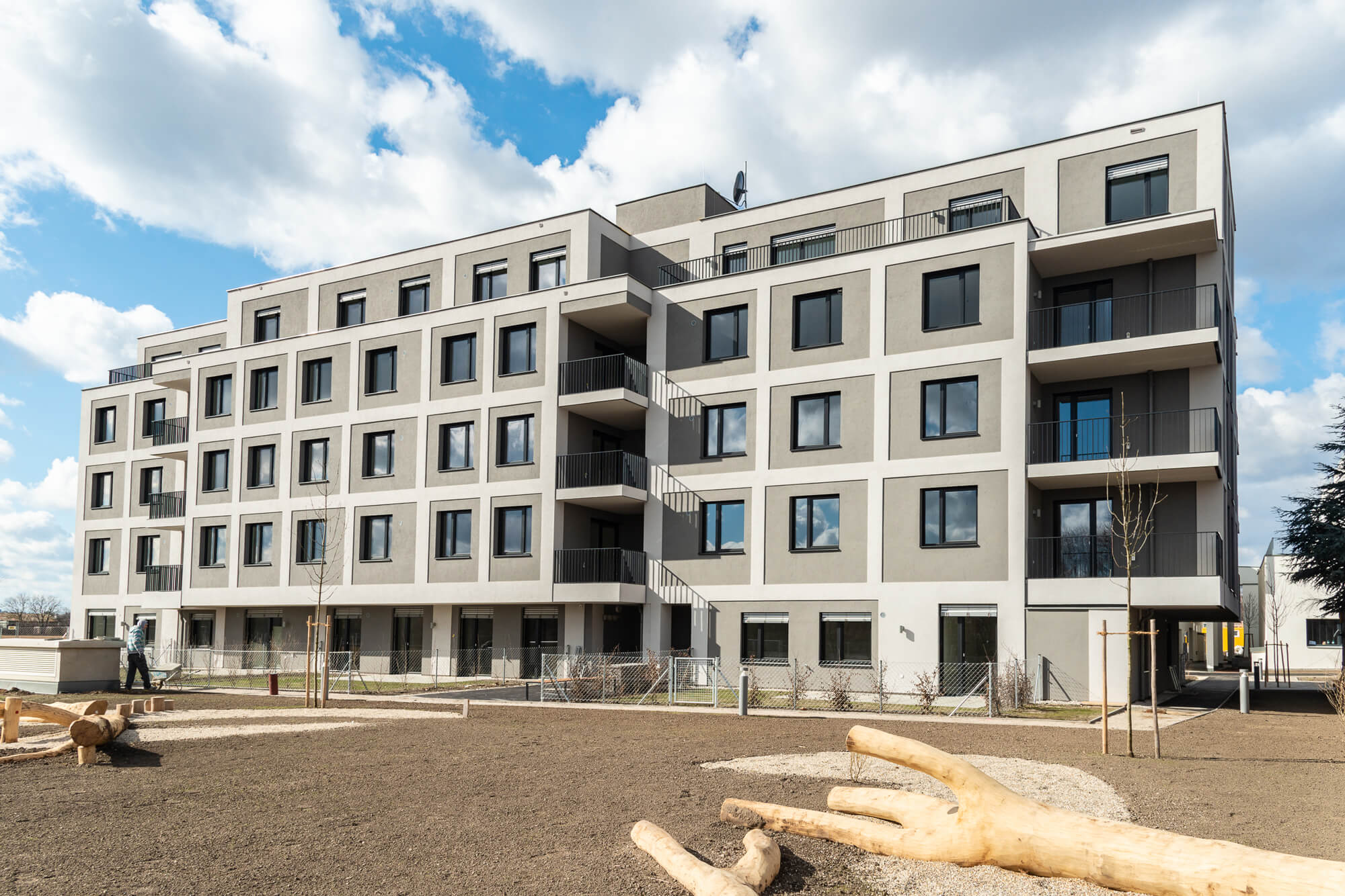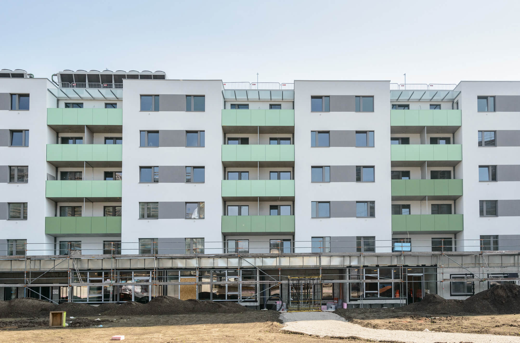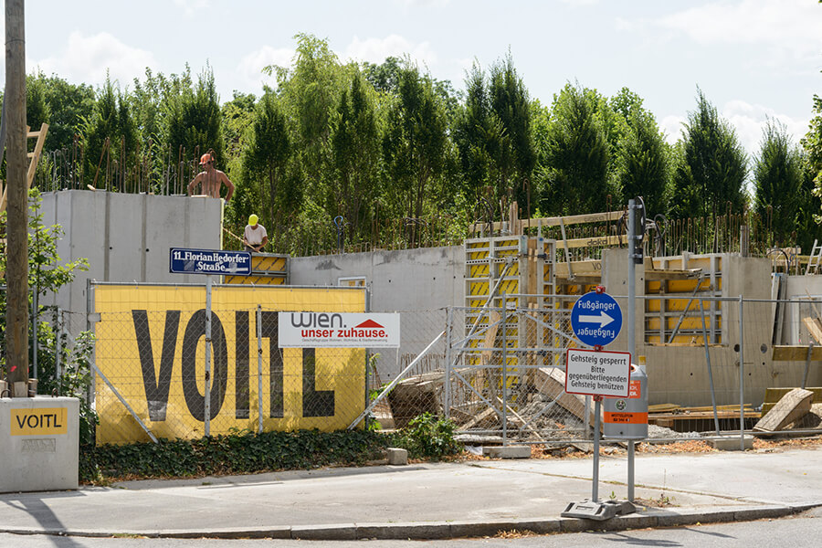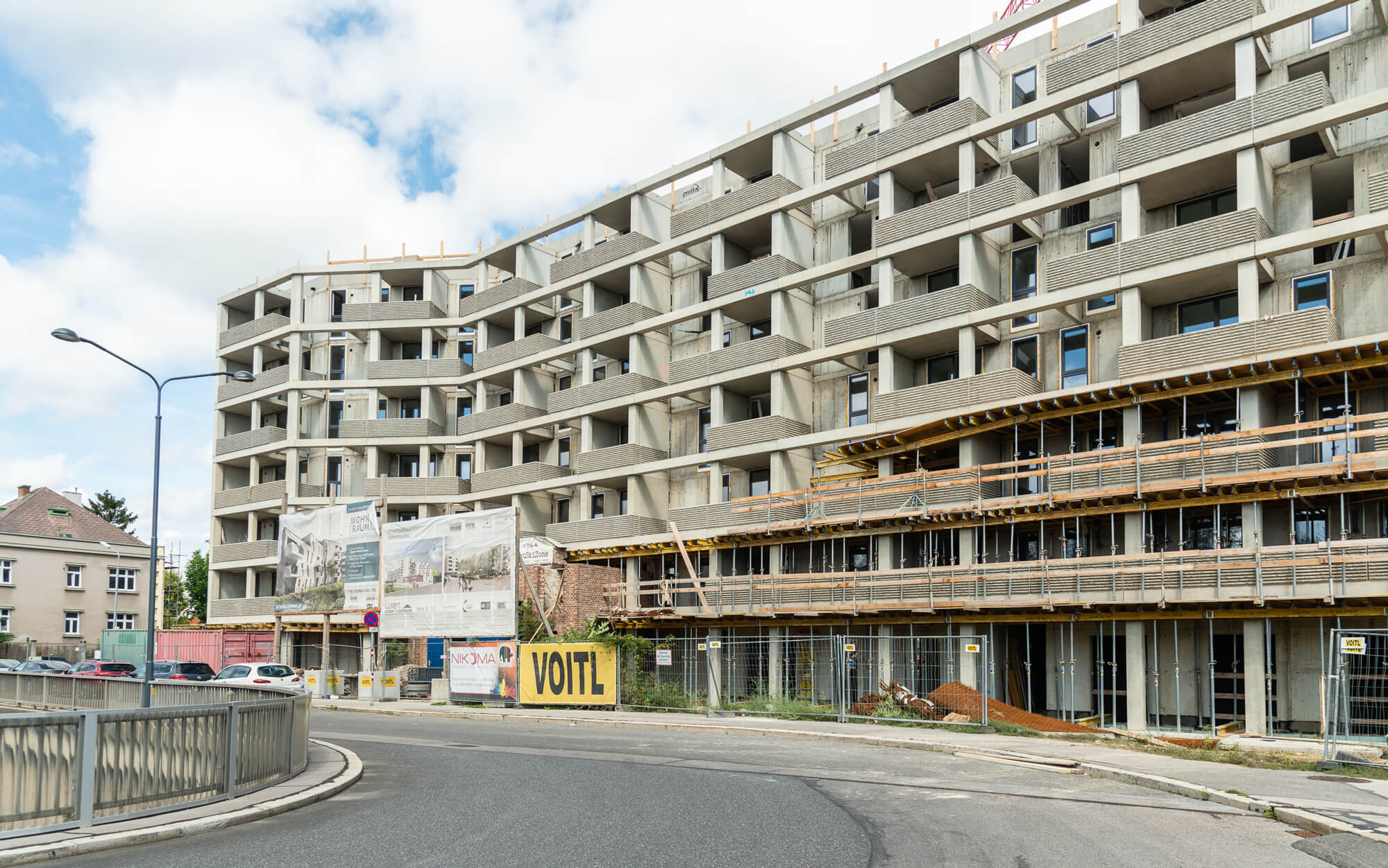 In dem neu geschaffenen Stadtquartier Ödenburger Straße im 21. Wiener Gemeindebezirk errichtet Voitl & Co. als Generalunternehmer 180 geförderte Mietwohnungen.