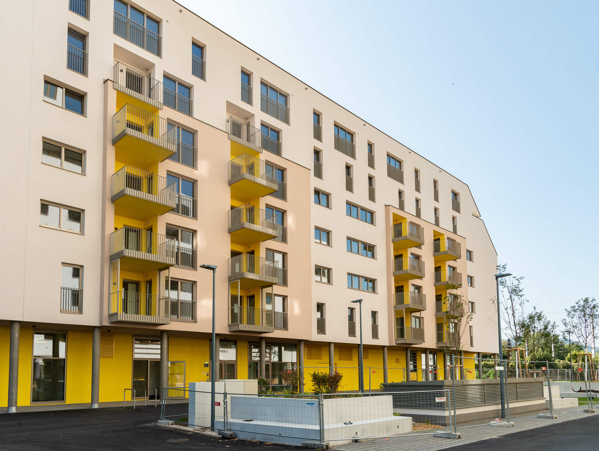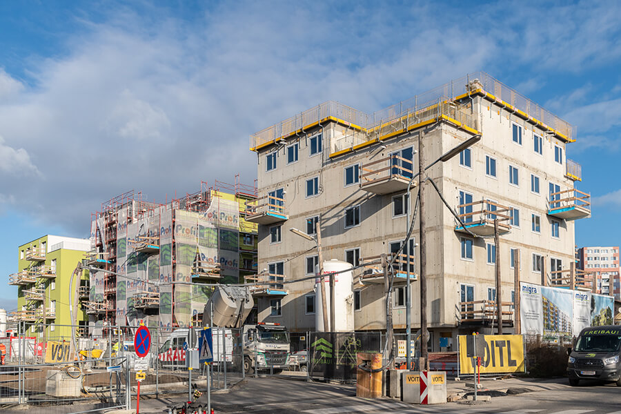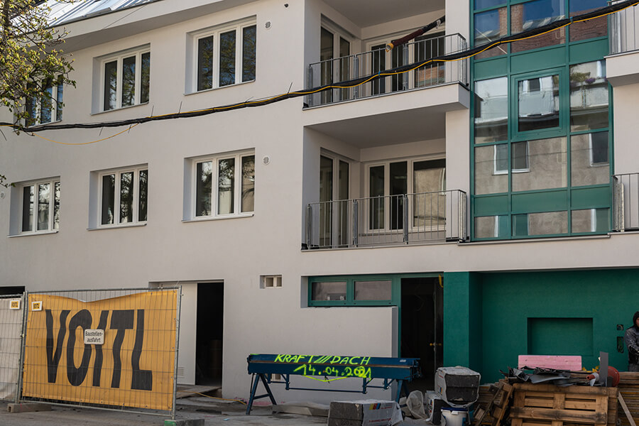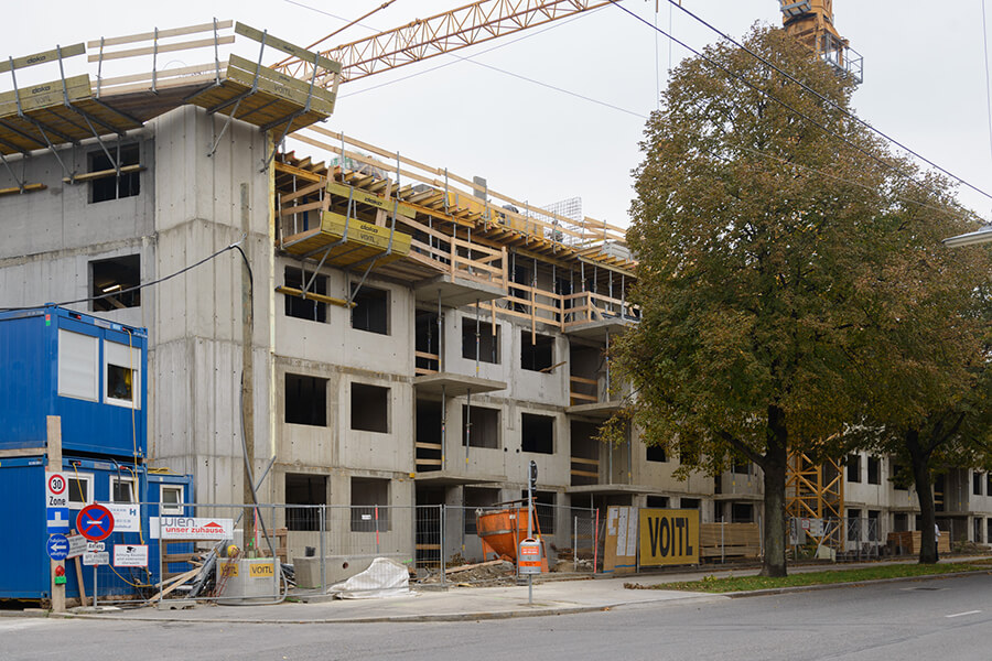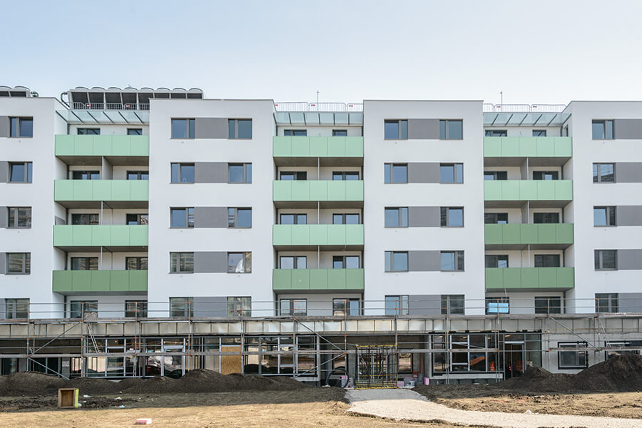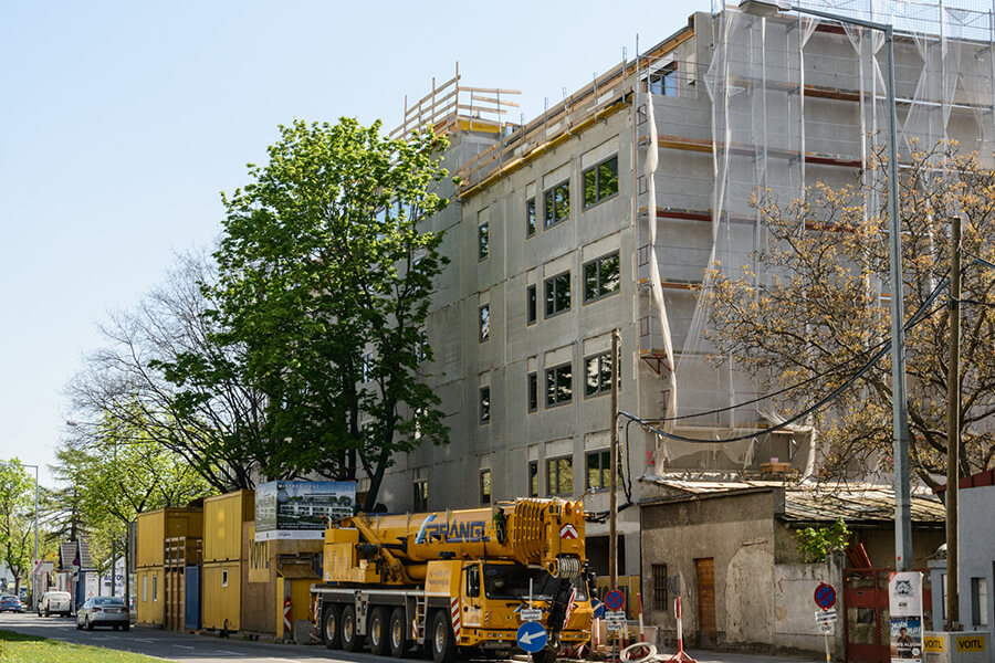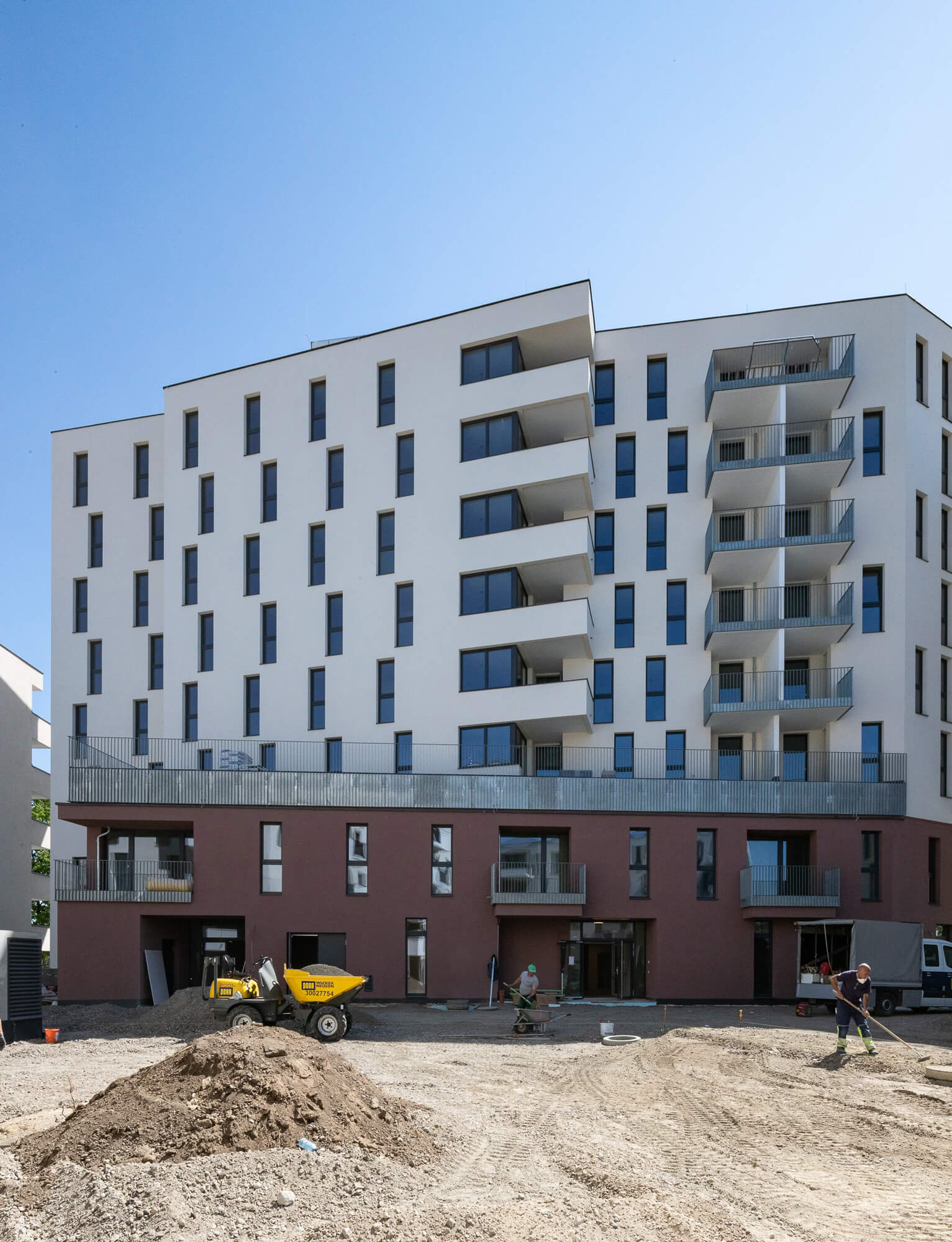 In dem neu geschaffenen Stadtquartier Ödenburger Straße im 21. Wiener Gemeindebezirk errichtet Voitl & Co. als Generalunternehmer 180 geförderte Mietwohnungen.