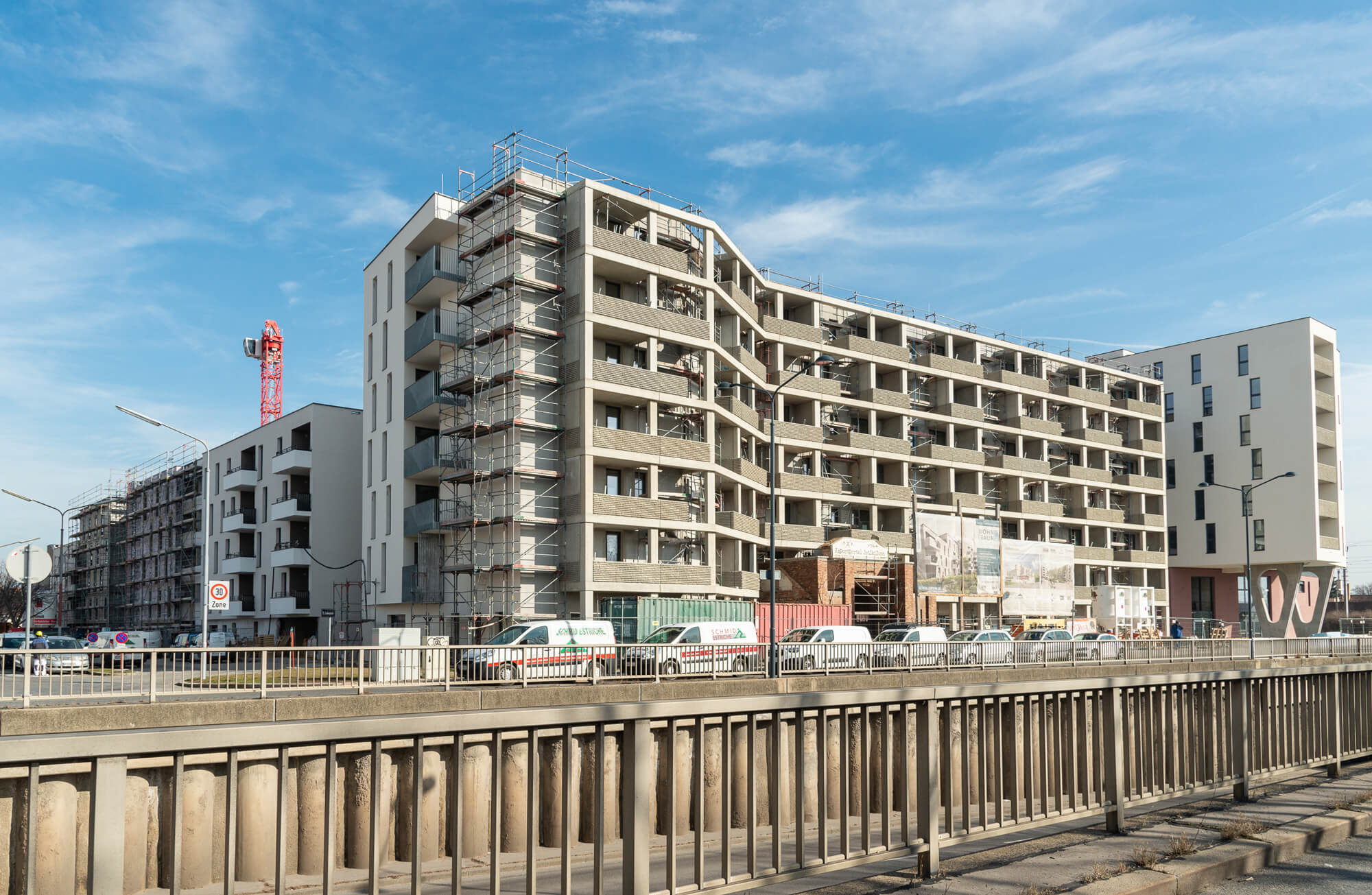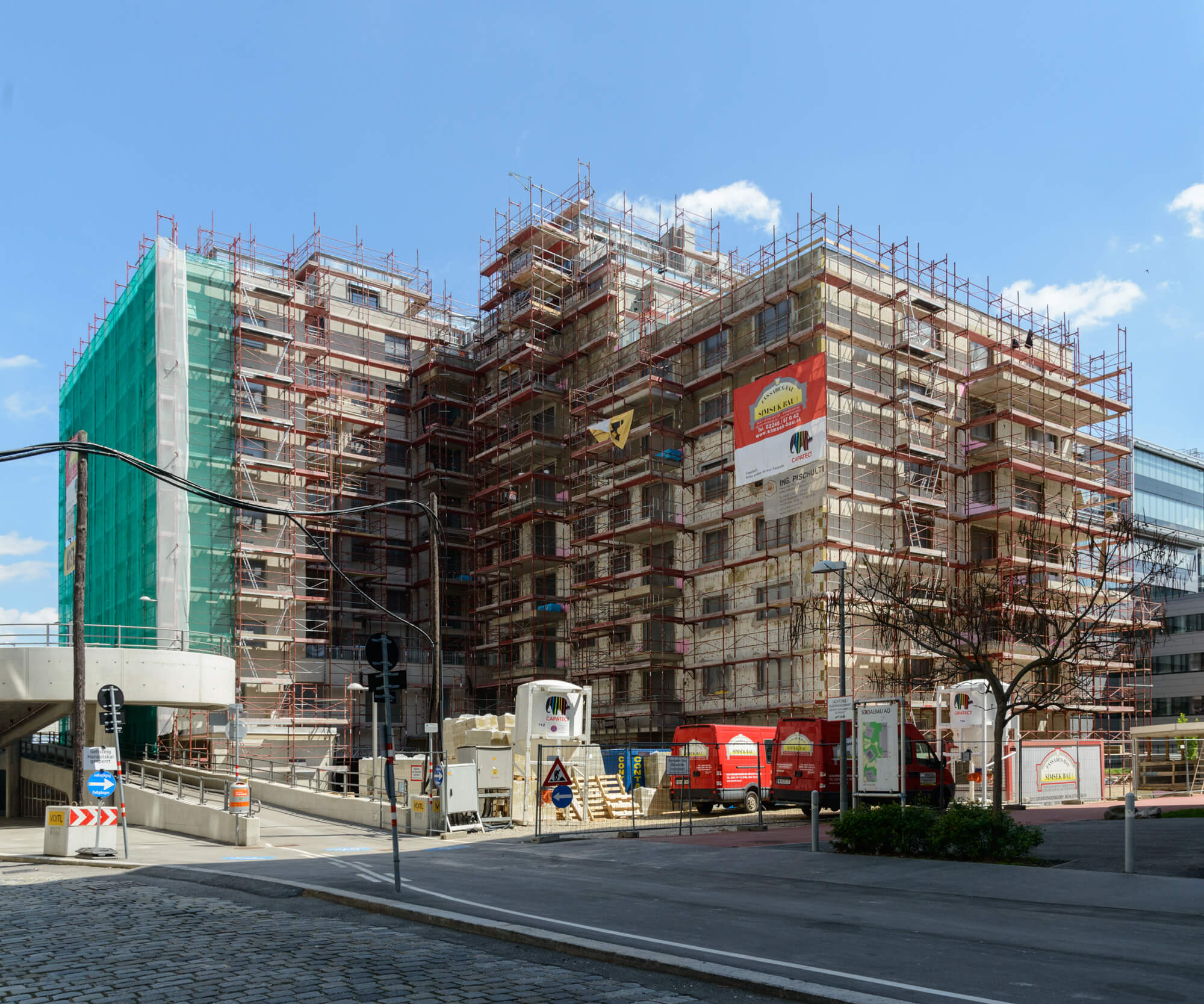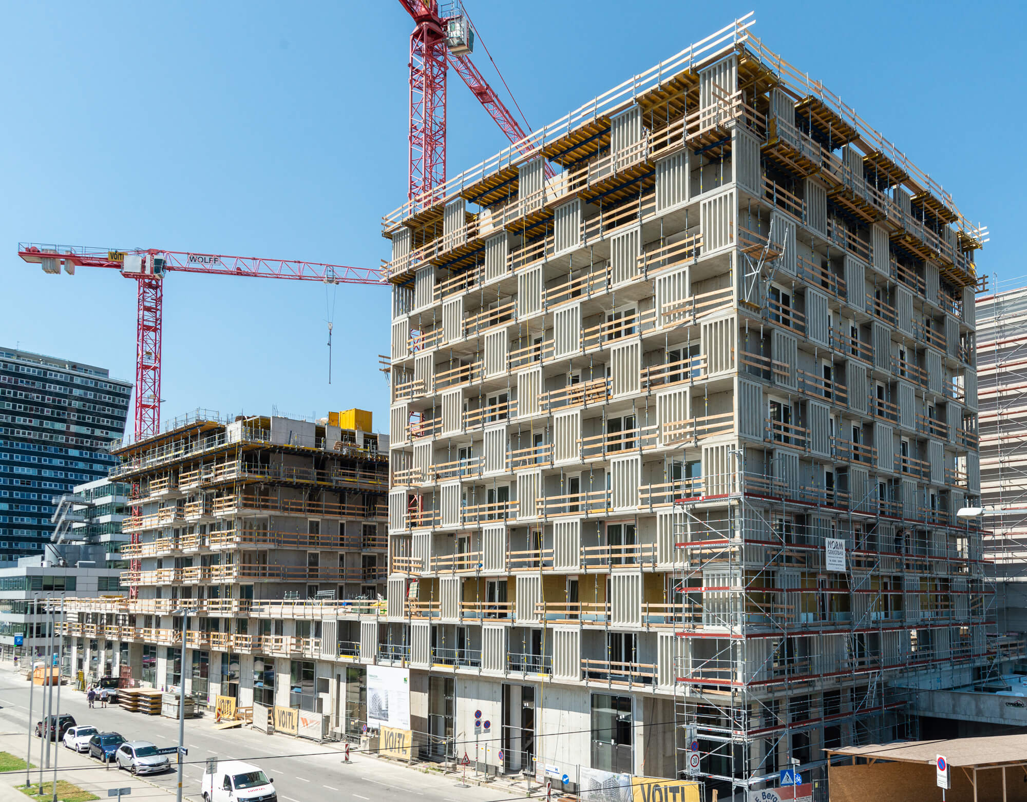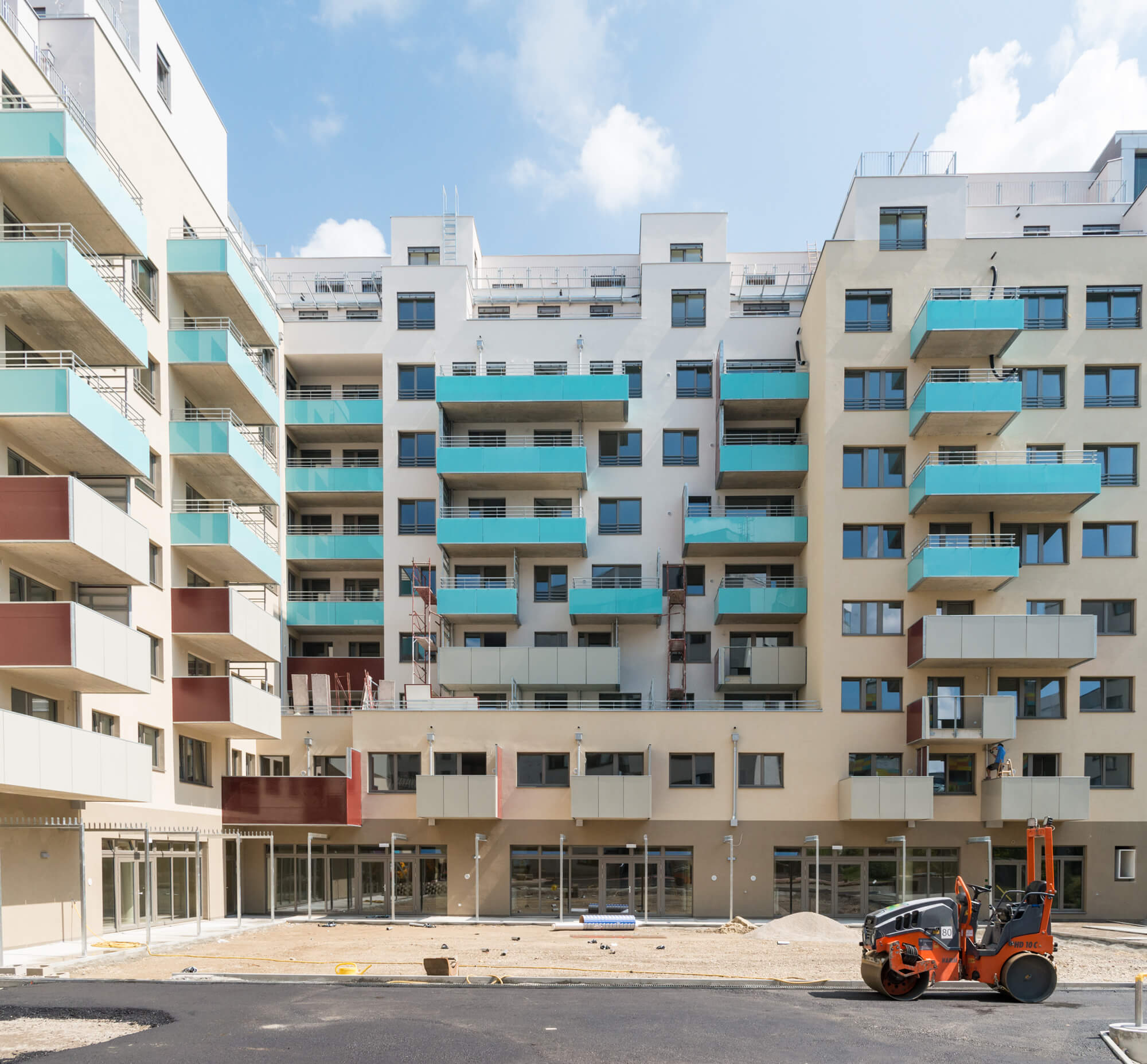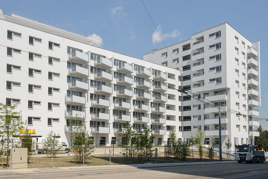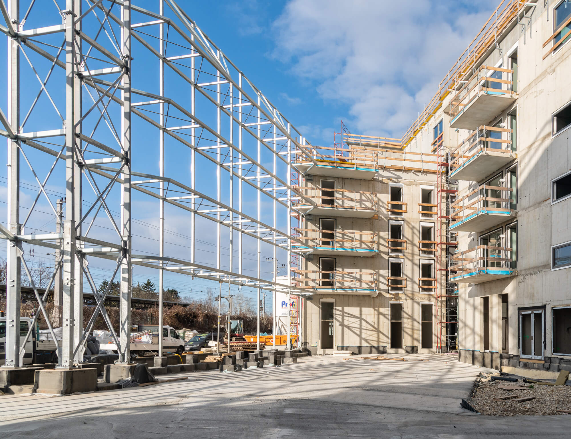 In dem neu geschaffenen Stadtquartier Ödenburger Straße im 21. Wiener Gemeindebezirk errichtet Voitl & Co. als Generalunternehmer 180 geförderte Mietwohnungen.