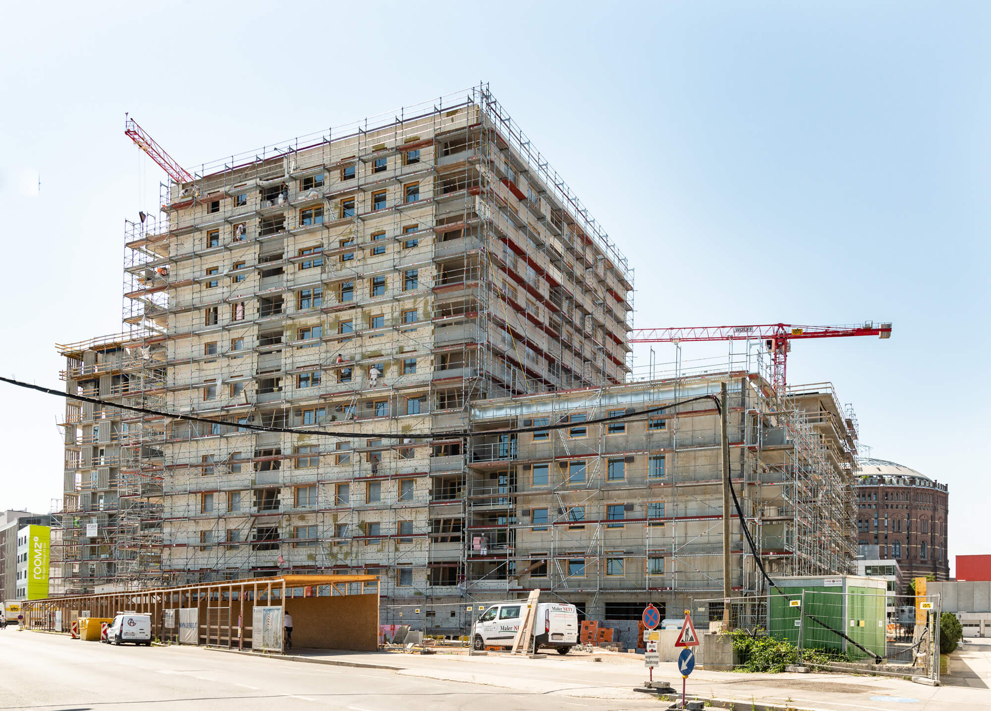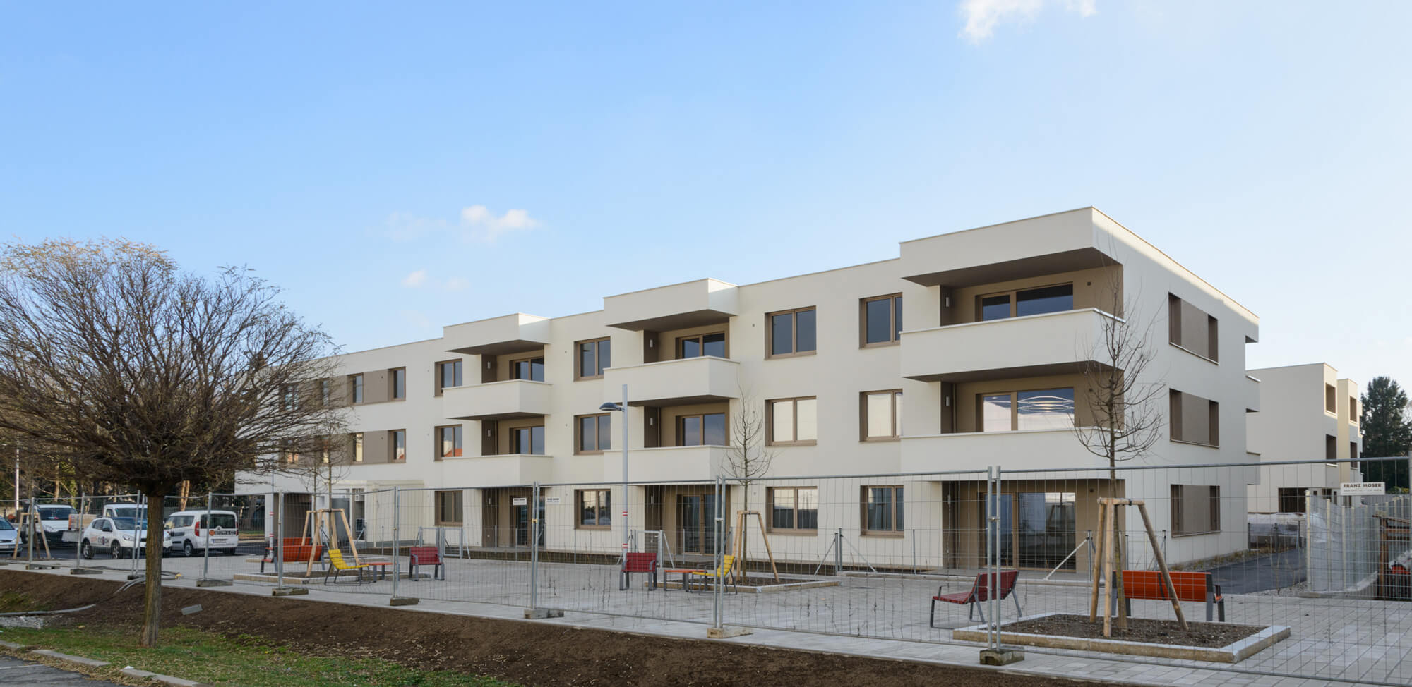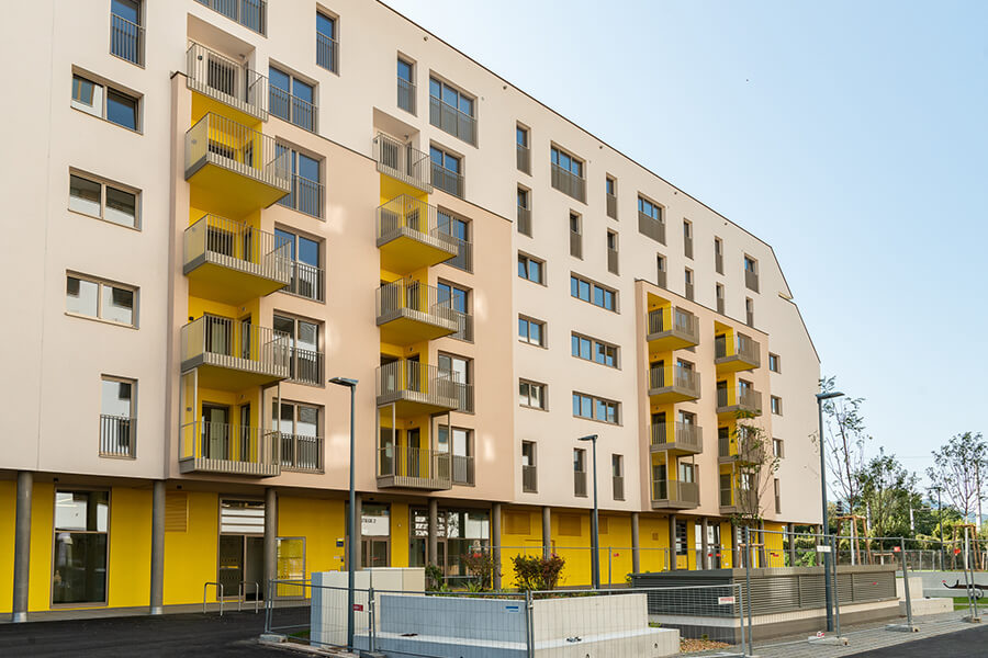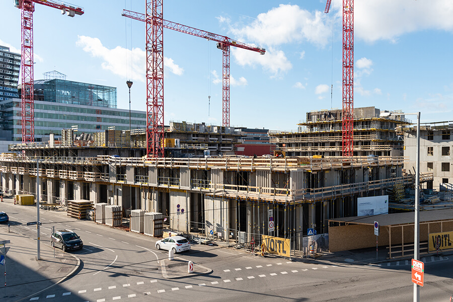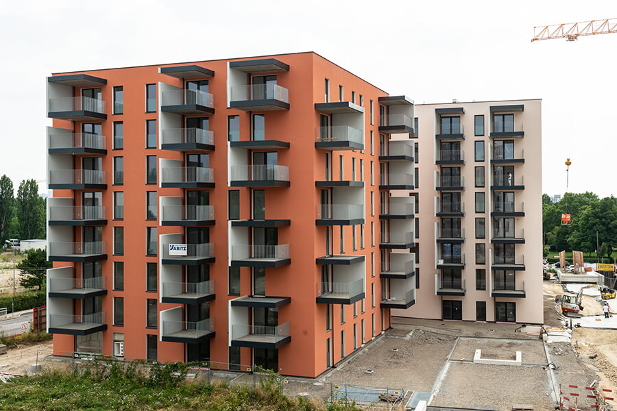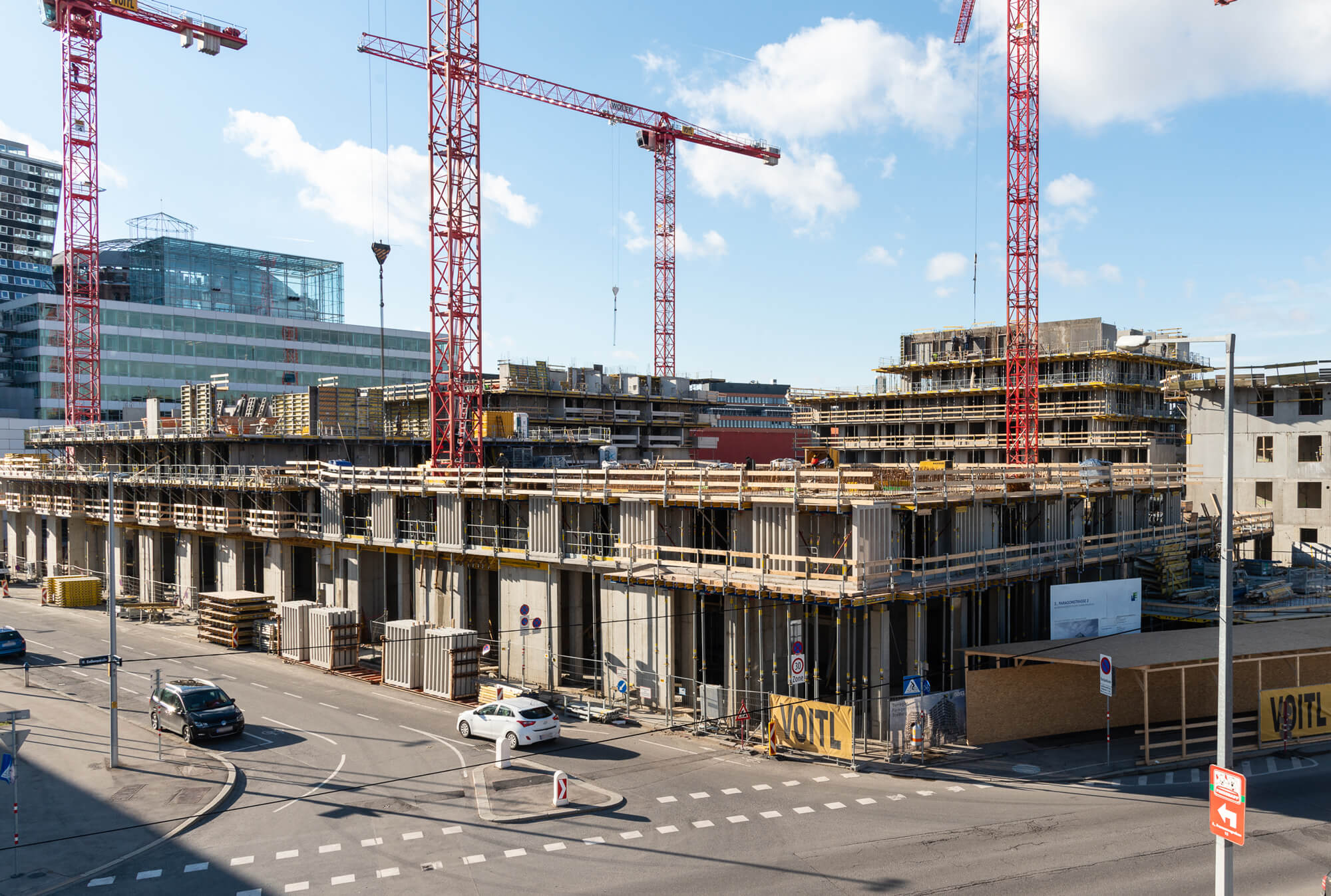 In dem neu geschaffenen Stadtquartier Ödenburger Straße im 21. Wiener Gemeindebezirk errichtet Voitl & Co. als Generalunternehmer 180 geförderte Mietwohnungen.