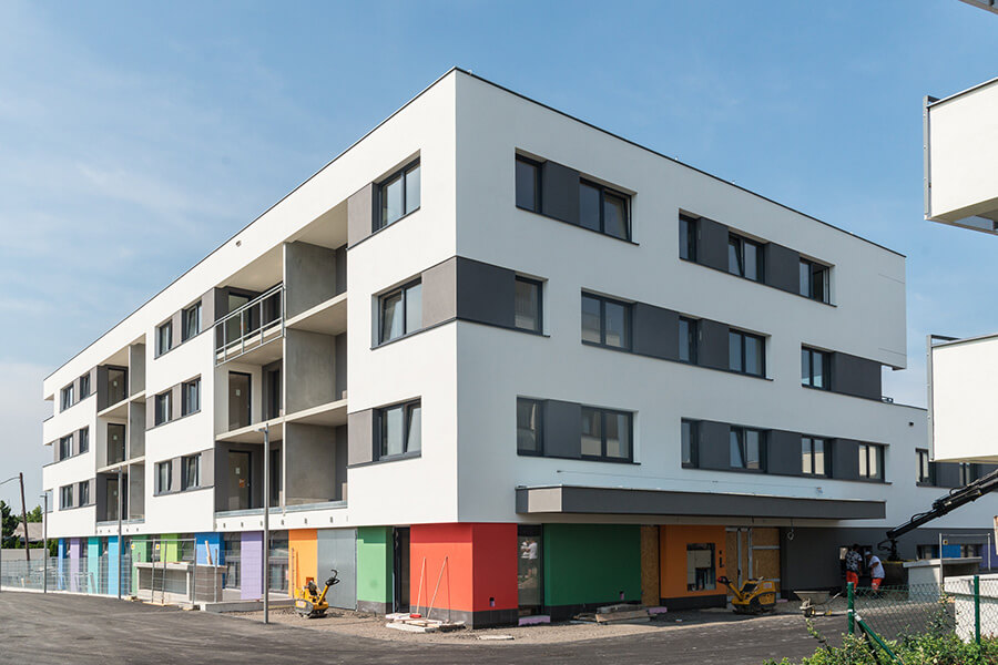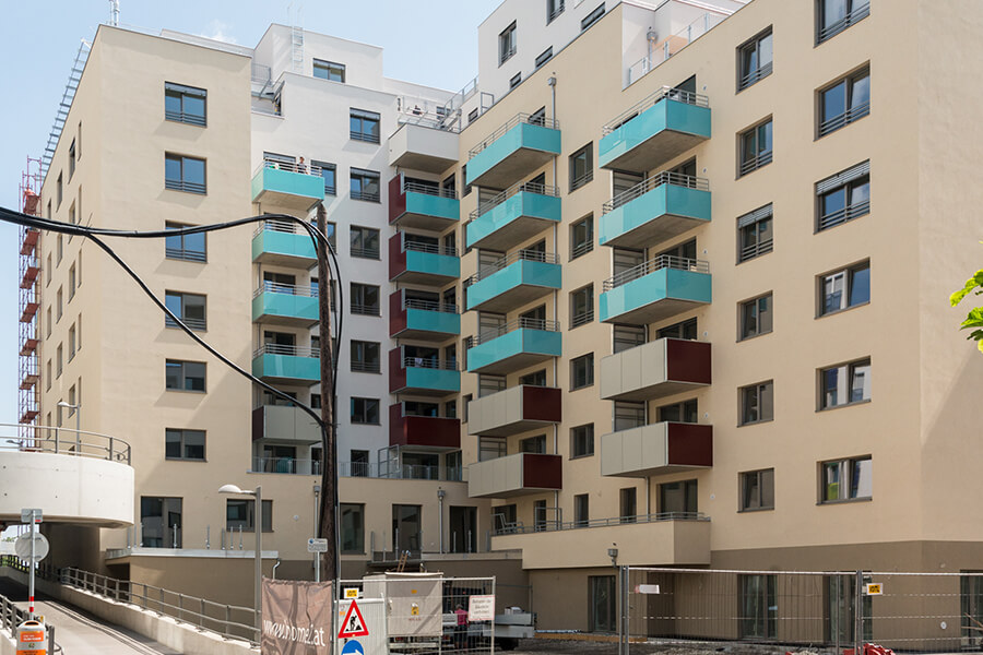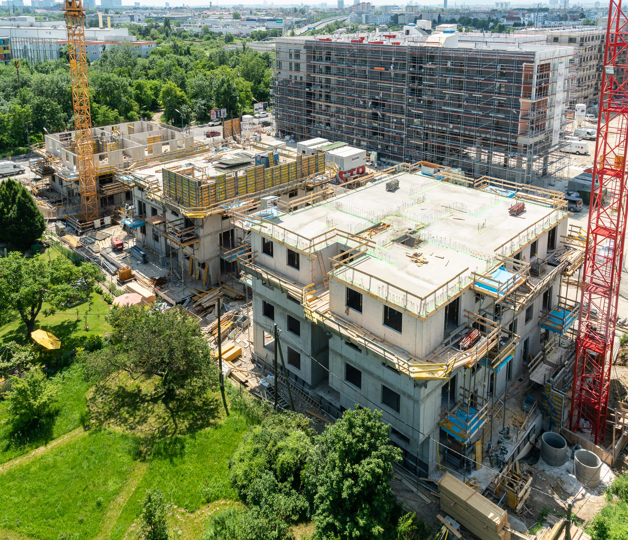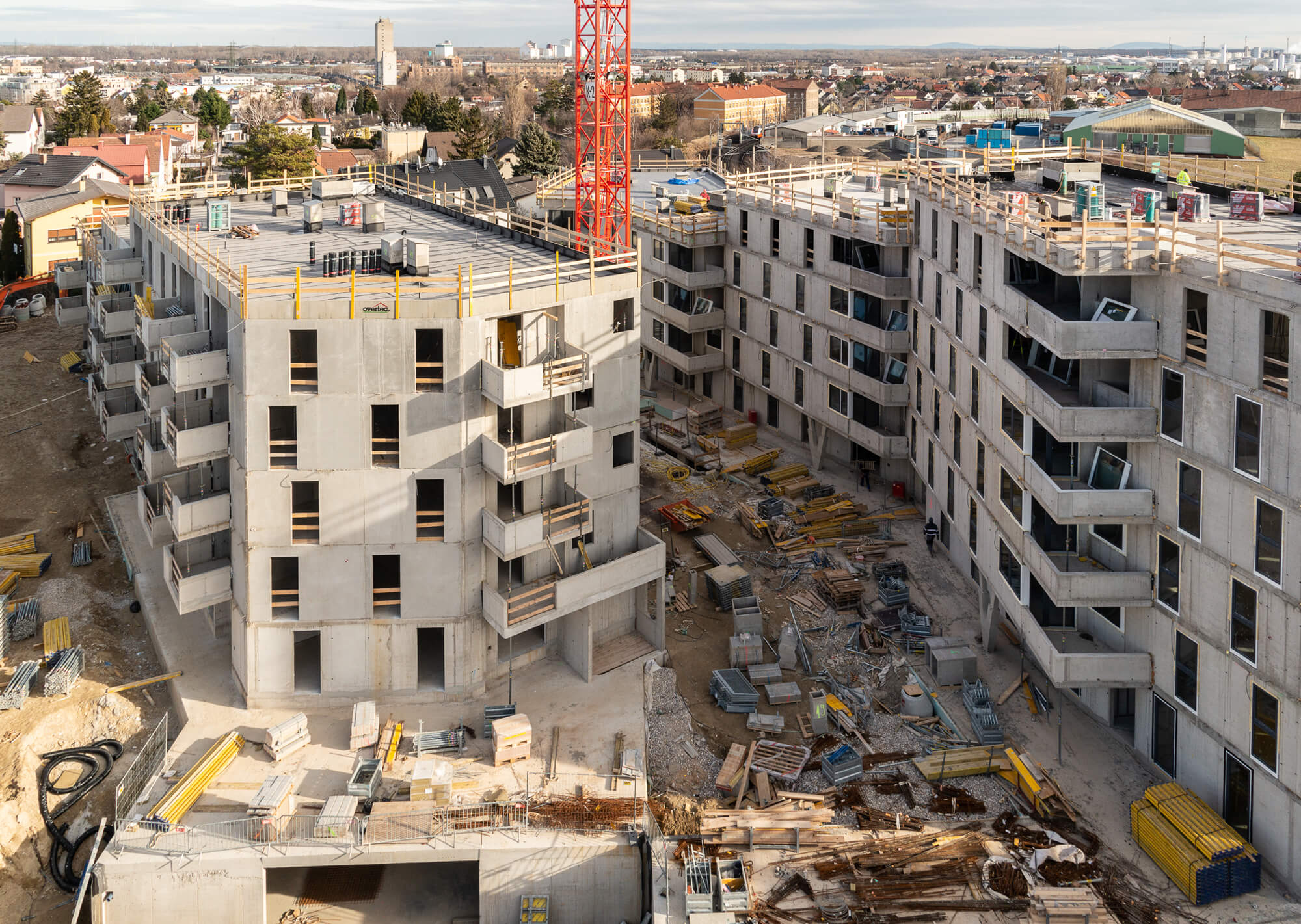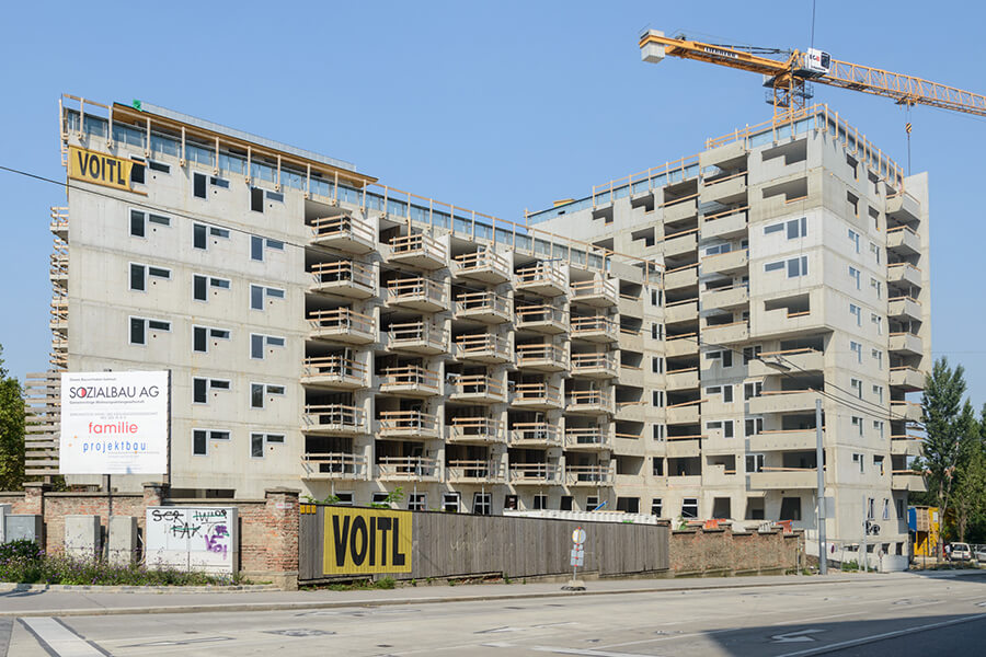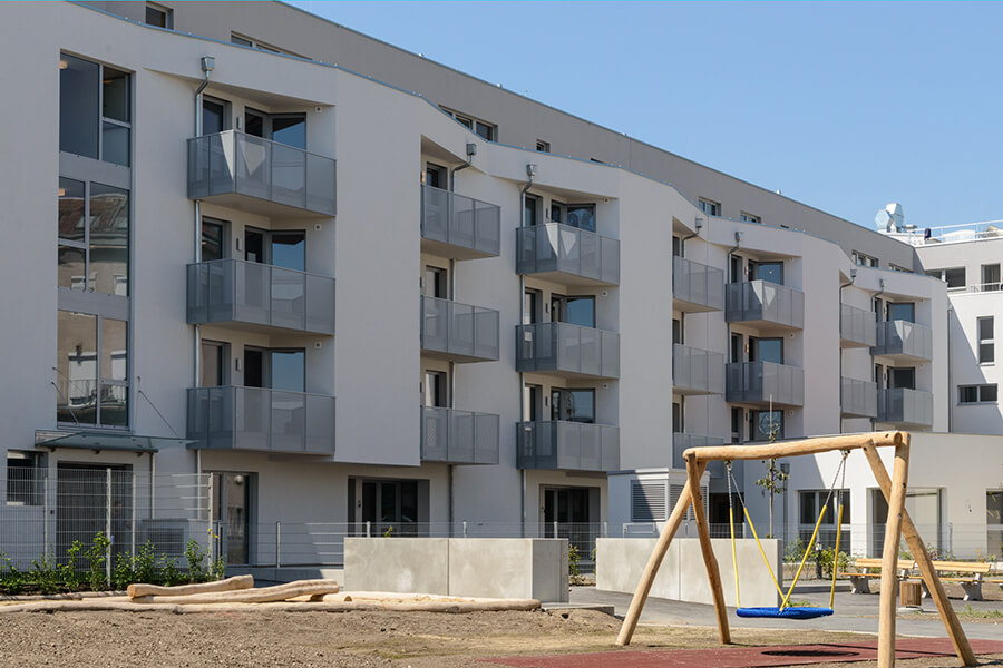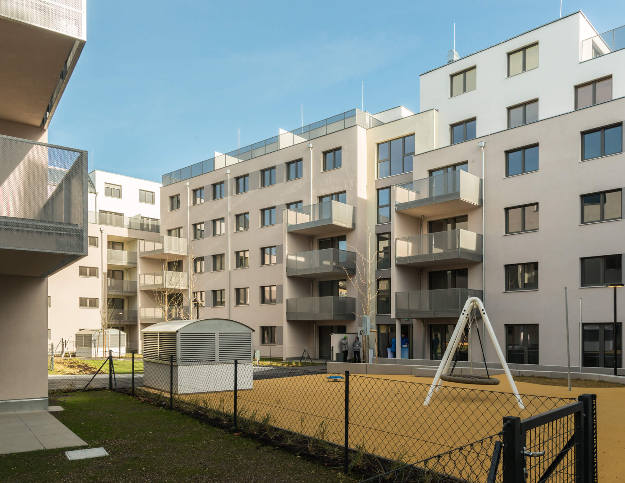 In dem neu geschaffenen Stadtquartier Ödenburger Straße im 21. Wiener Gemeindebezirk errichtet Voitl & Co. als Generalunternehmer 180 geförderte Mietwohnungen.