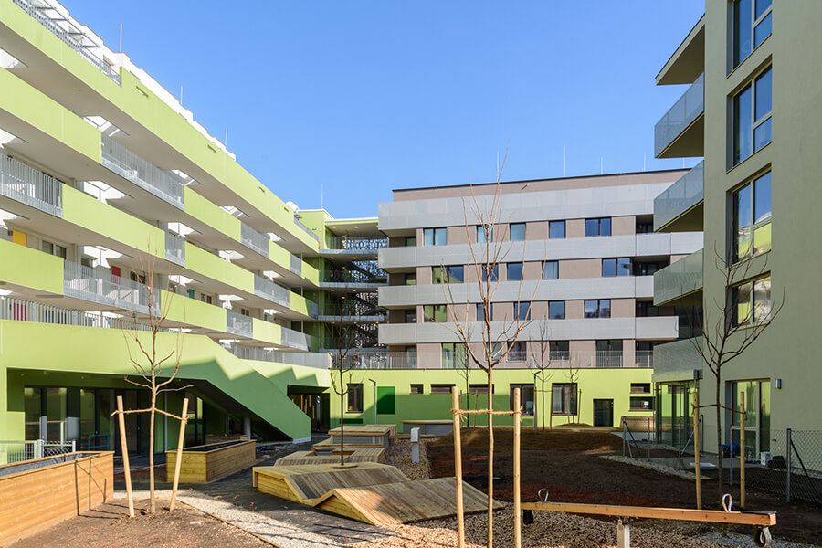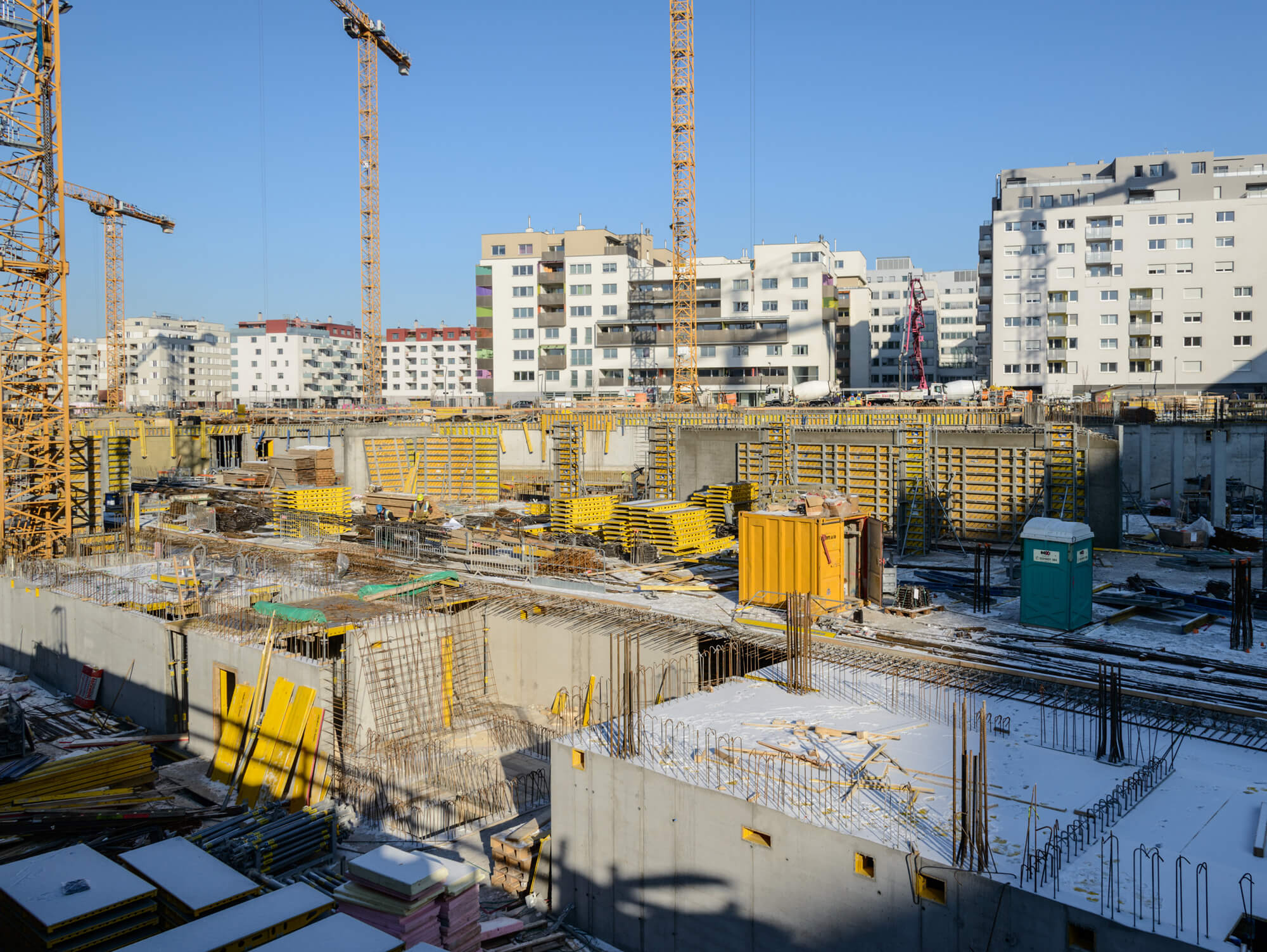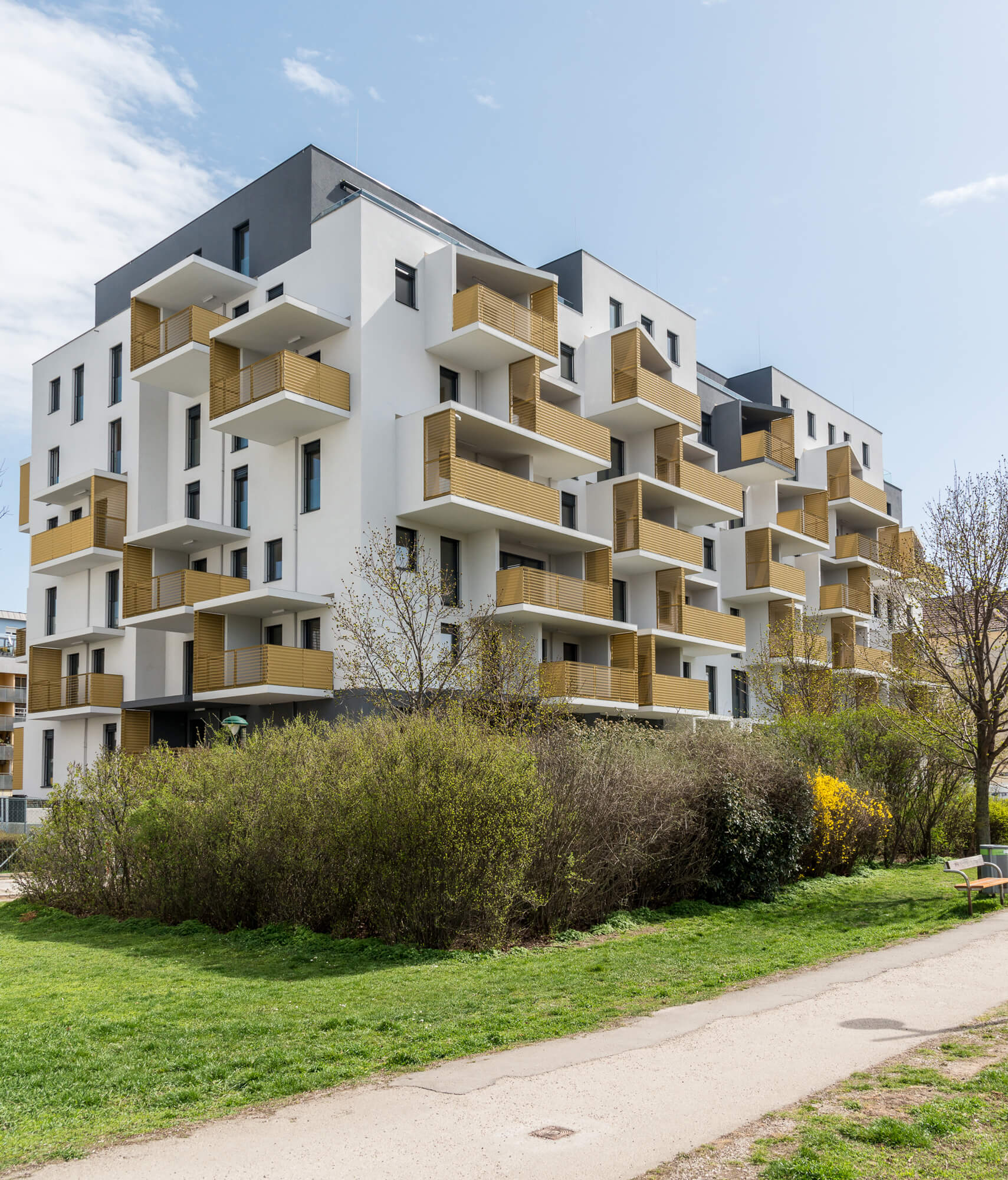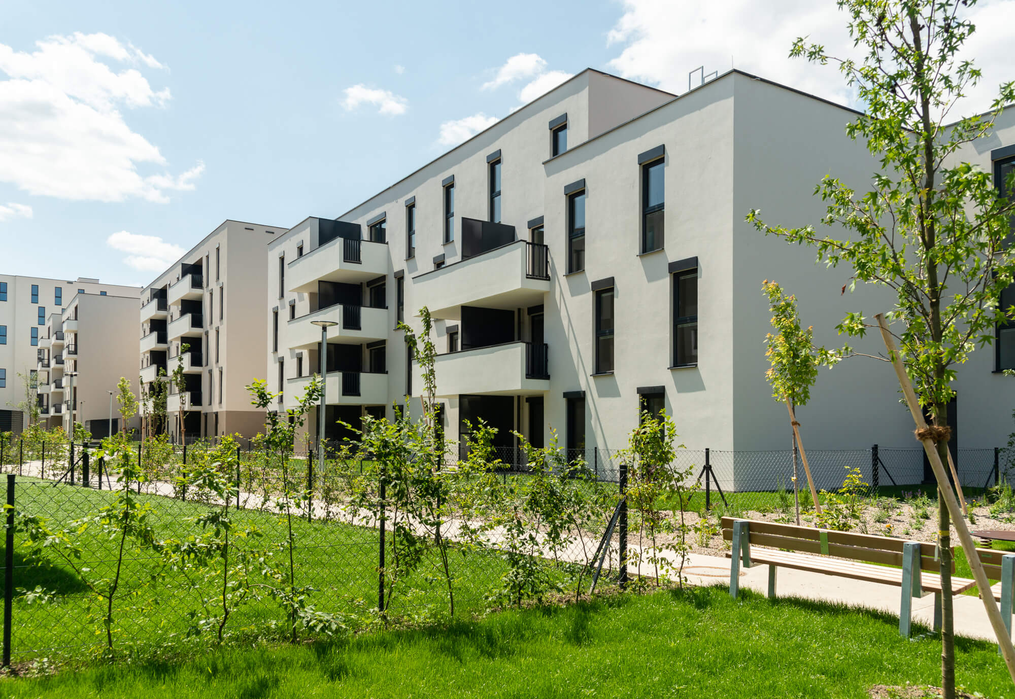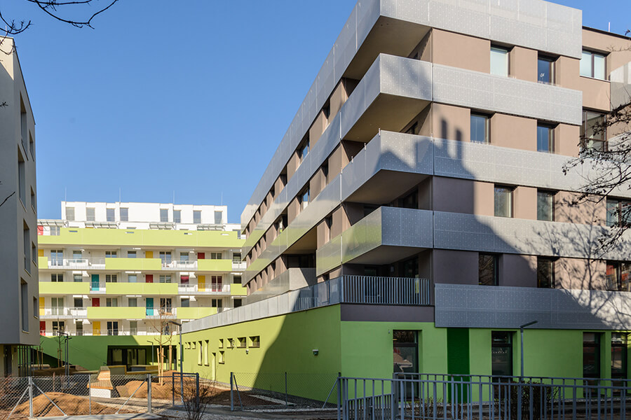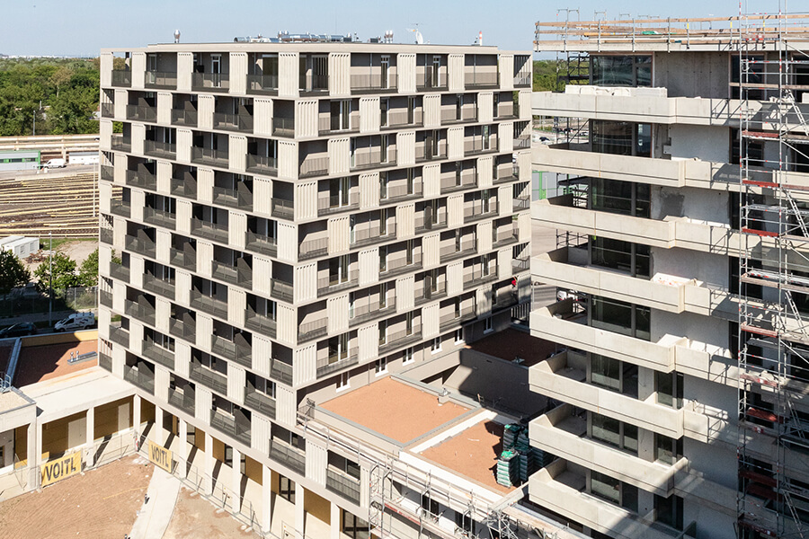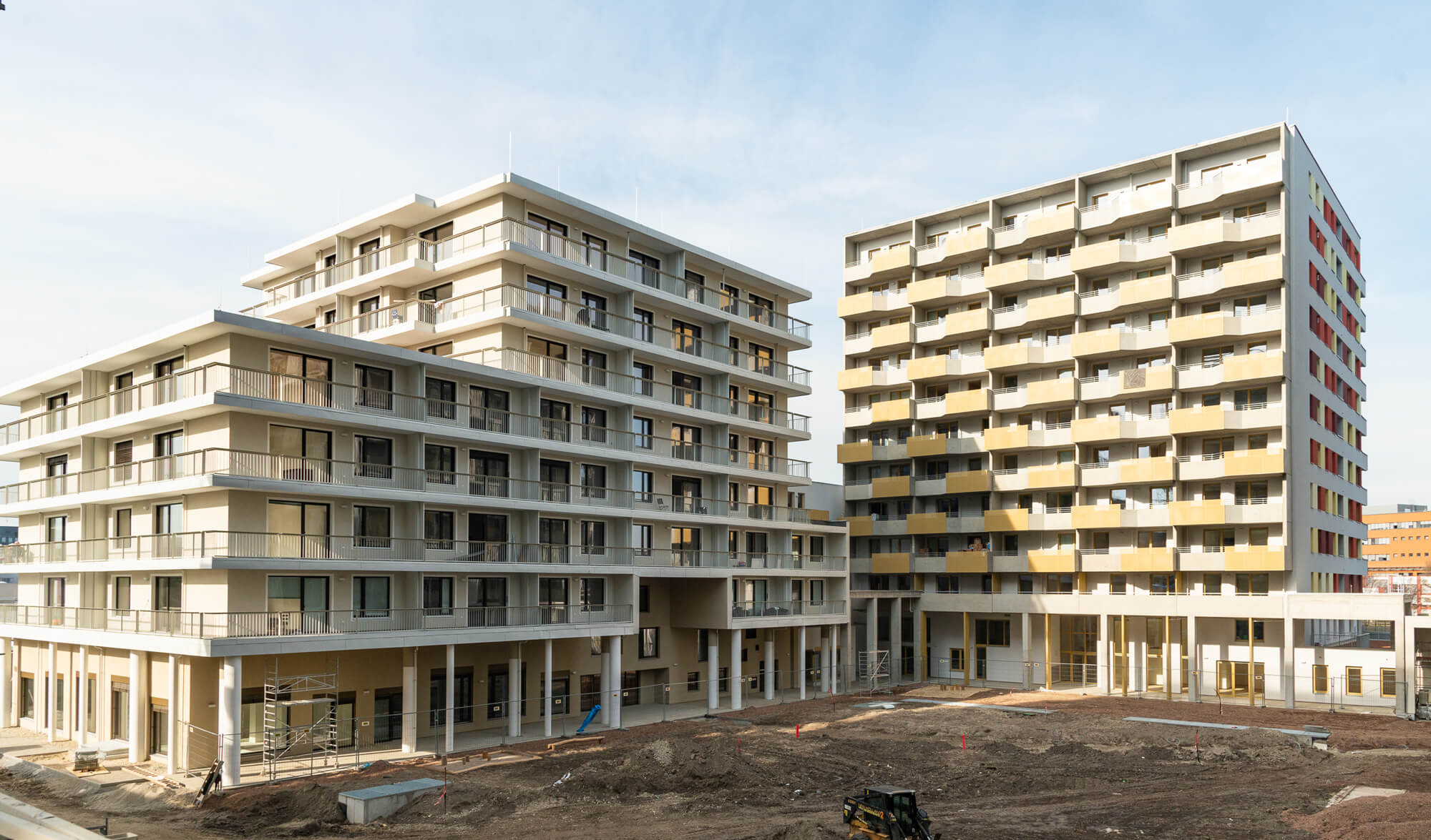 In dem neu geschaffenen Stadtquartier Ödenburger Straße im 21. Wiener Gemeindebezirk errichtet Voitl & Co. als Generalunternehmer 180 geförderte Mietwohnungen.