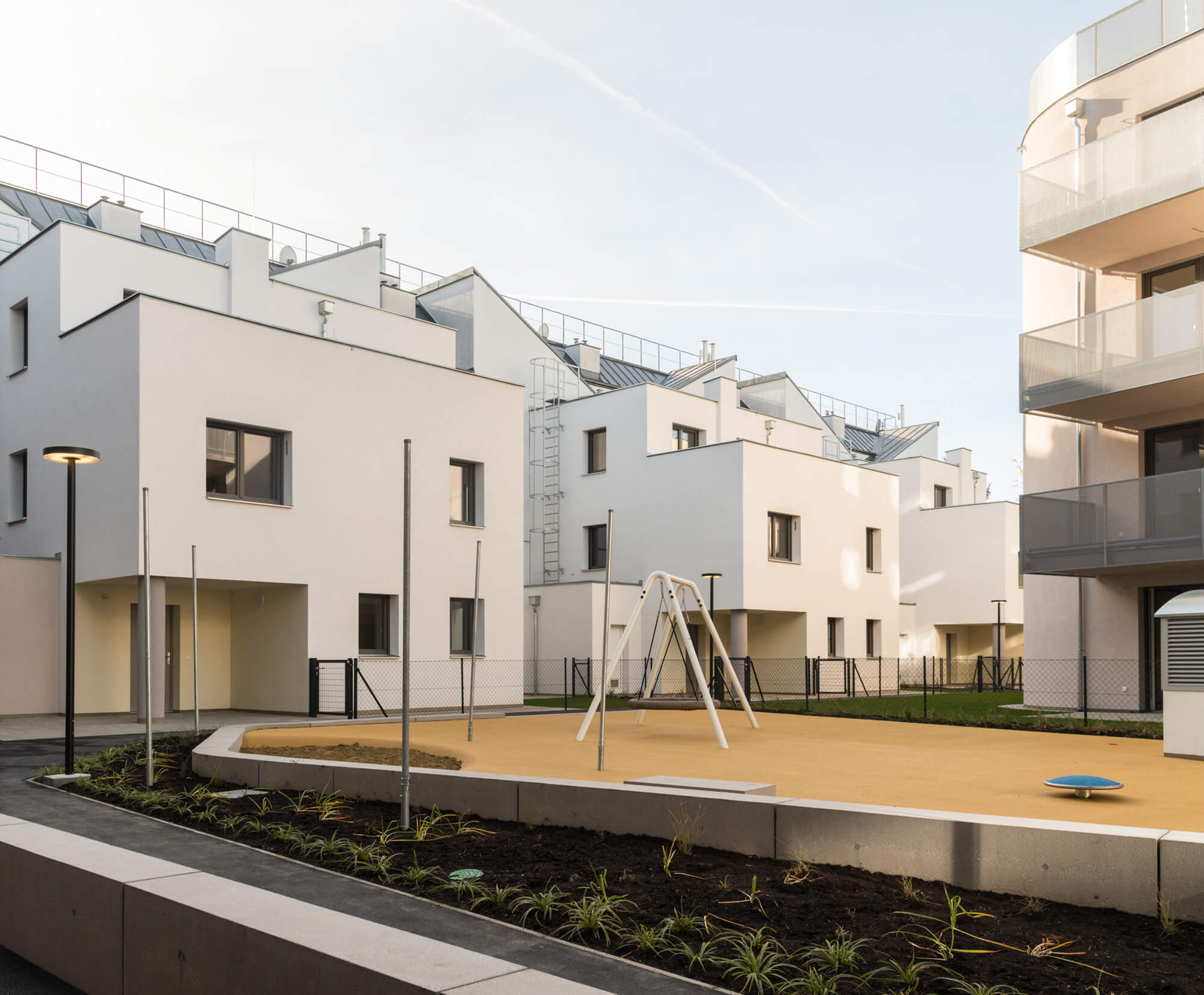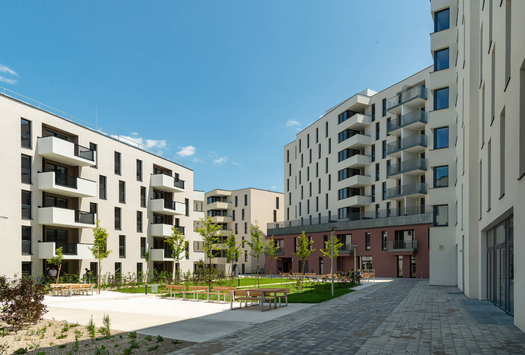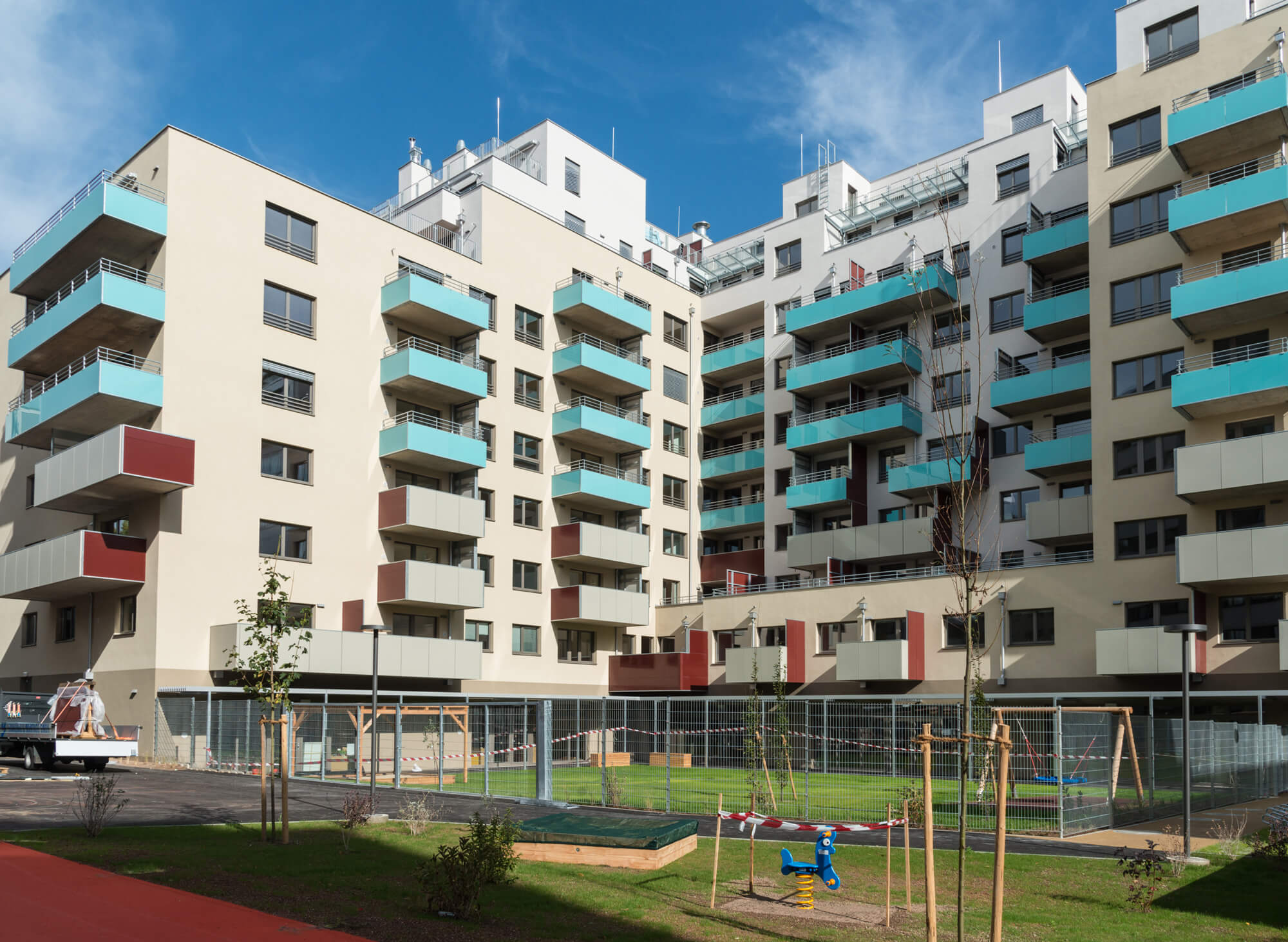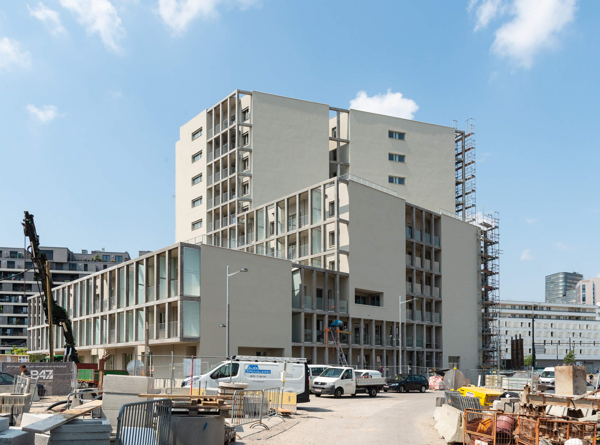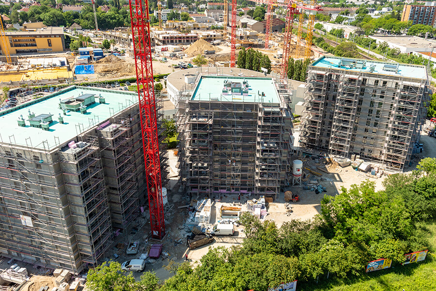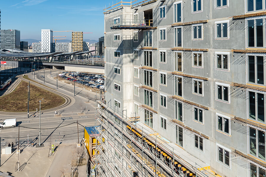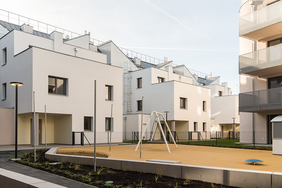 In dem neu geschaffenen Stadtquartier Ödenburger Straße im 21. Wiener Gemeindebezirk errichtet Voitl & Co. als Generalunternehmer 180 geförderte Mietwohnungen.
