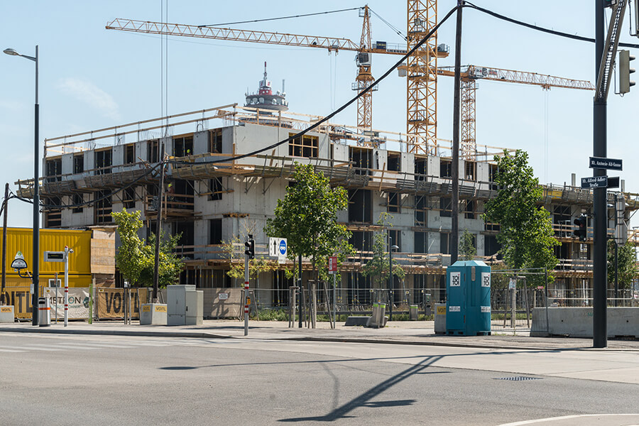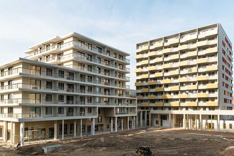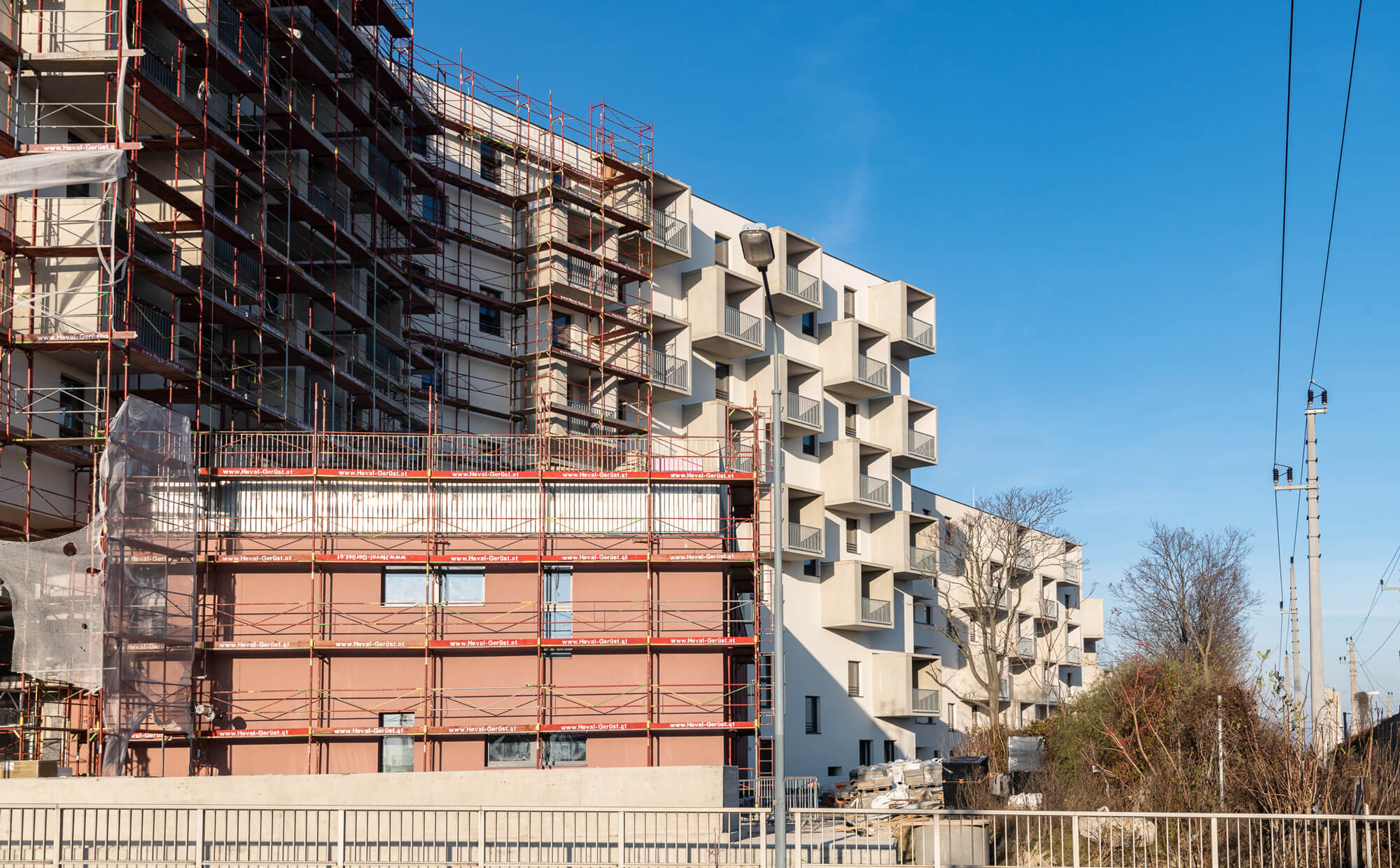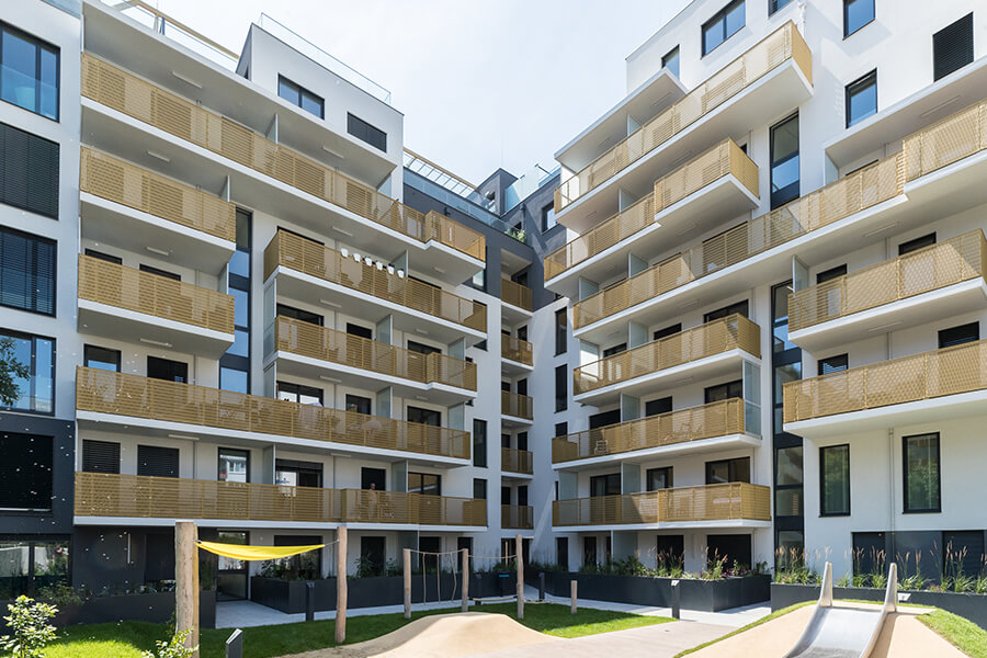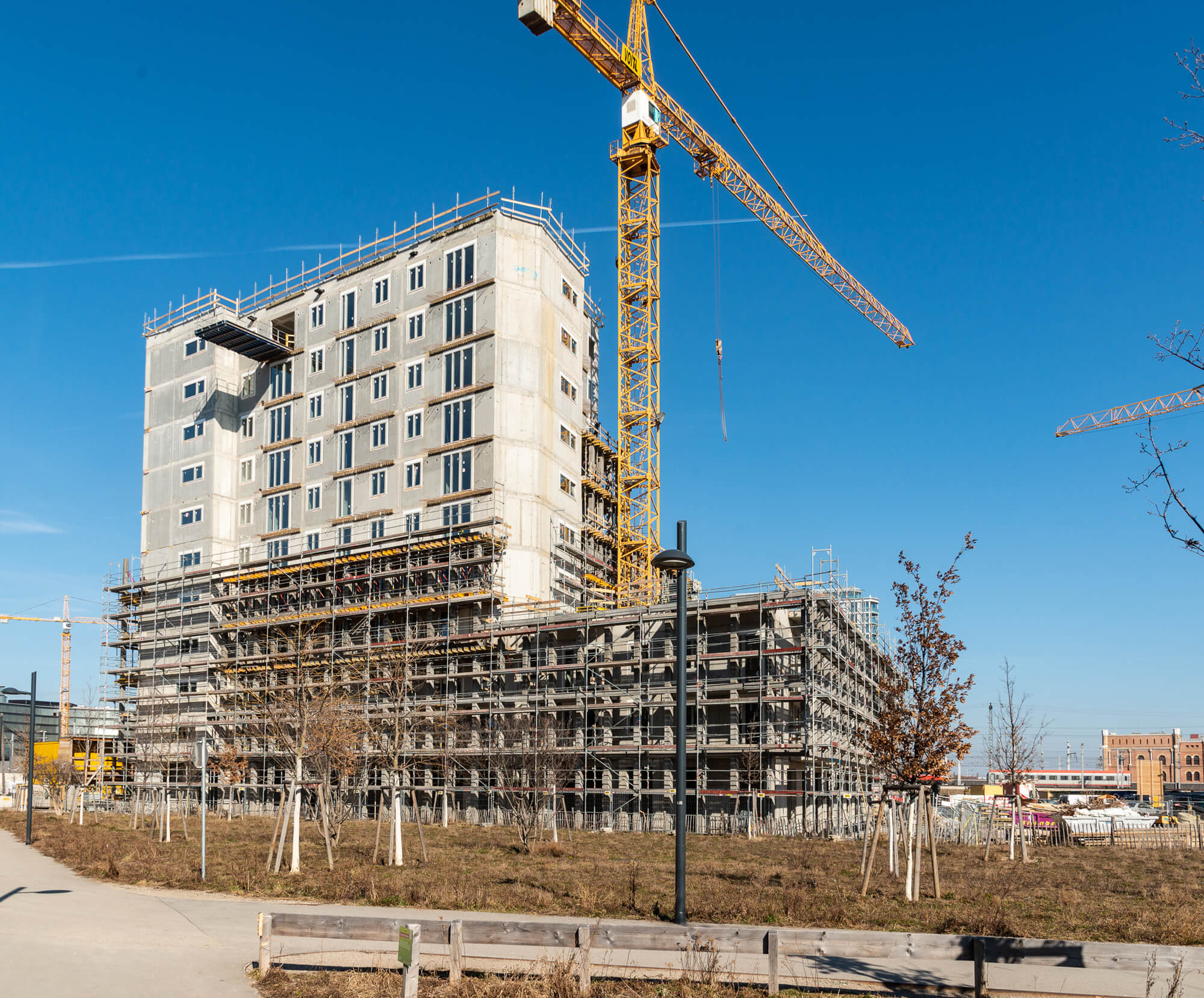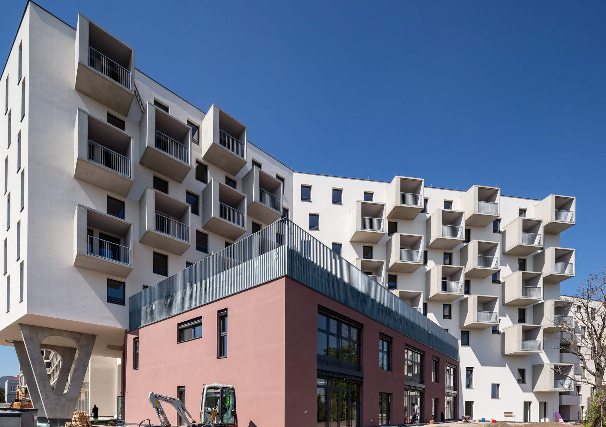 In dem neu geschaffenen Stadtquartier Ödenburger Straße im 21. Wiener Gemeindebezirk errichtet Voitl & Co. als Generalunternehmer 180 geförderte Mietwohnungen.