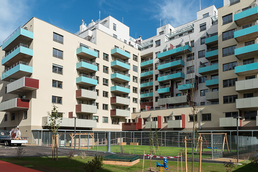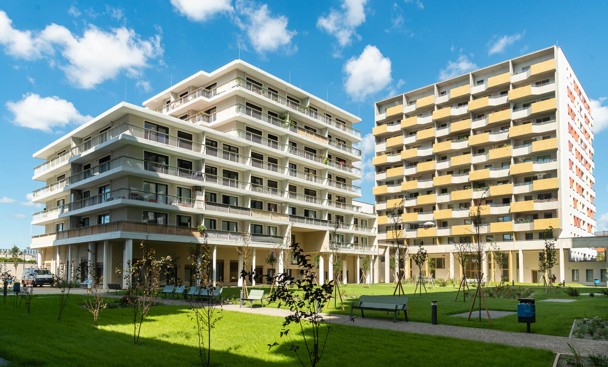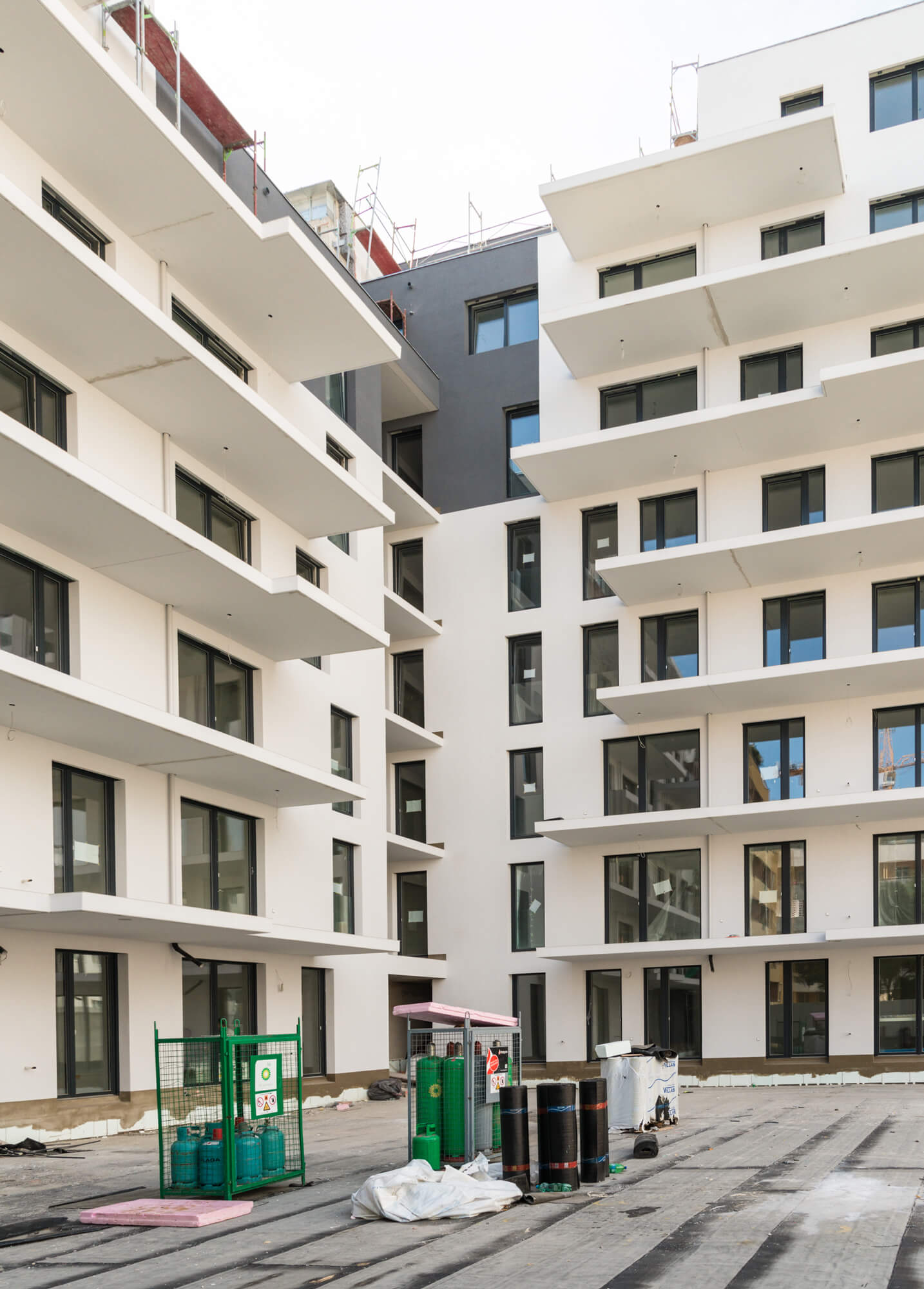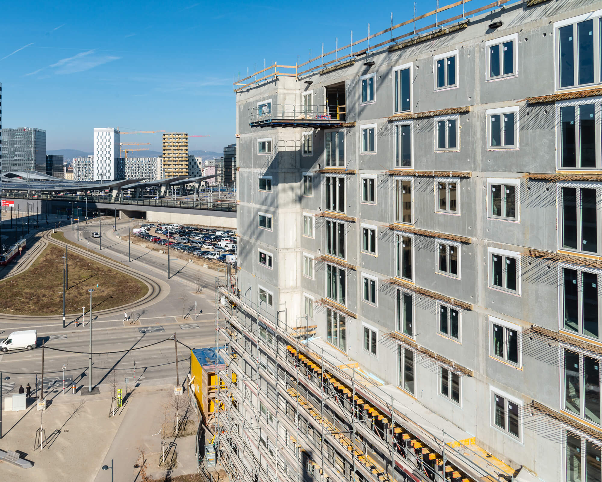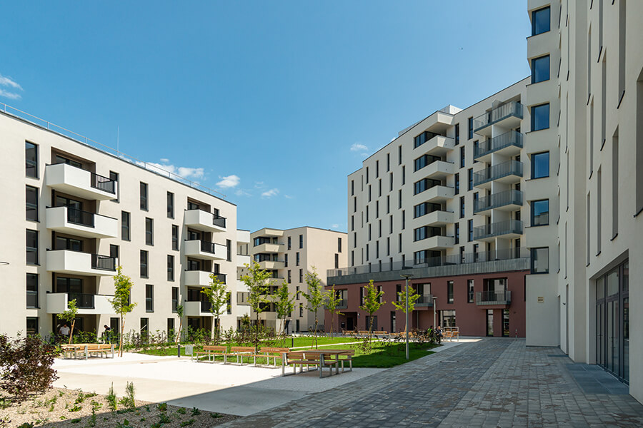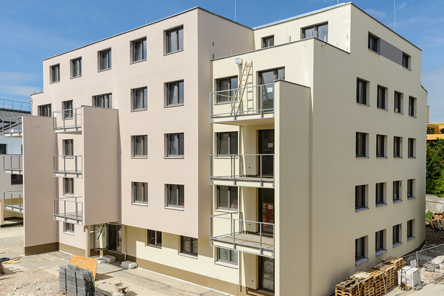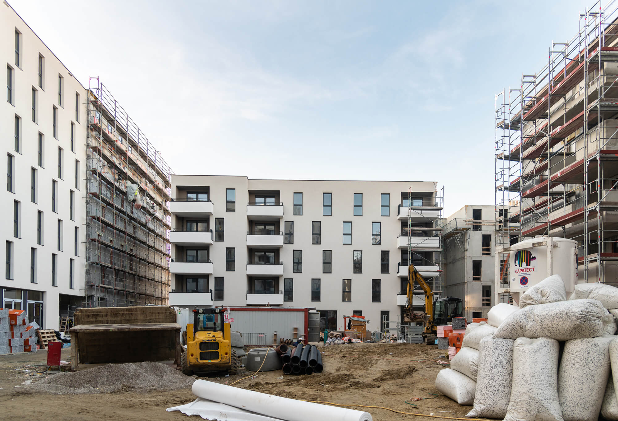 In dem neu geschaffenen Stadtquartier Ödenburger Straße im 21. Wiener Gemeindebezirk errichtet Voitl & Co. als Generalunternehmer 180 geförderte Mietwohnungen.