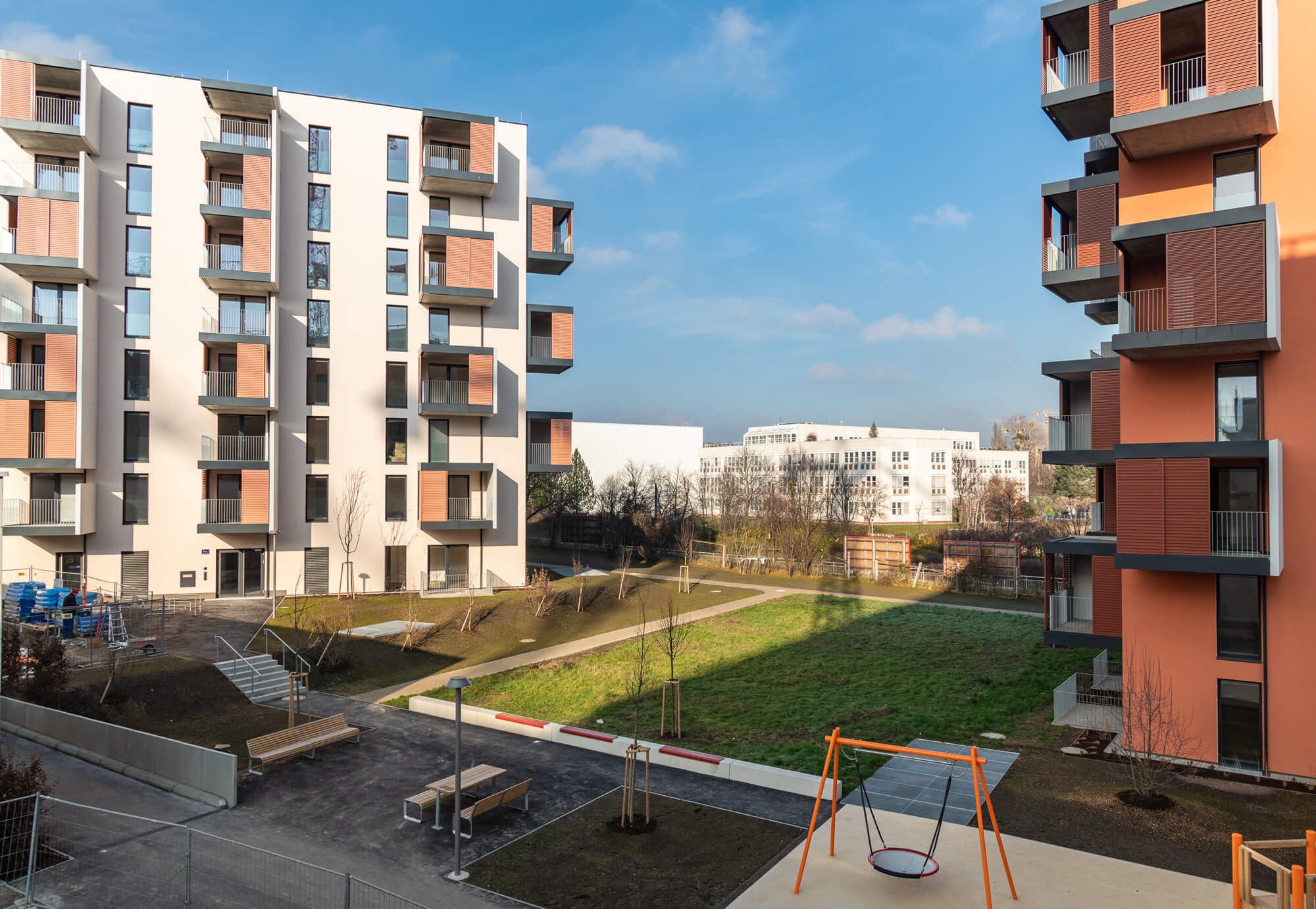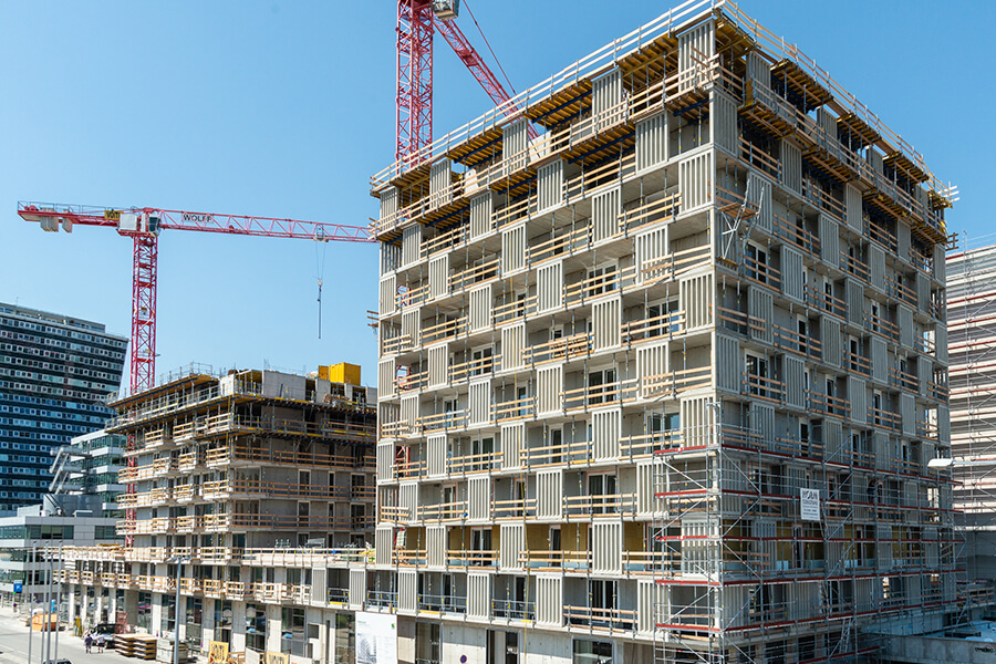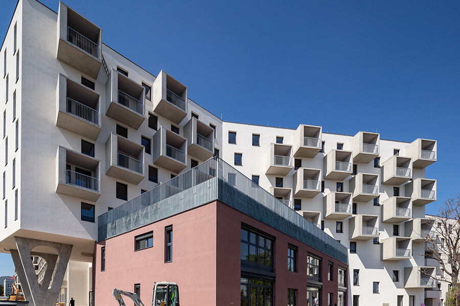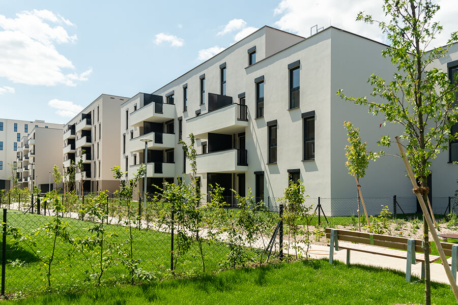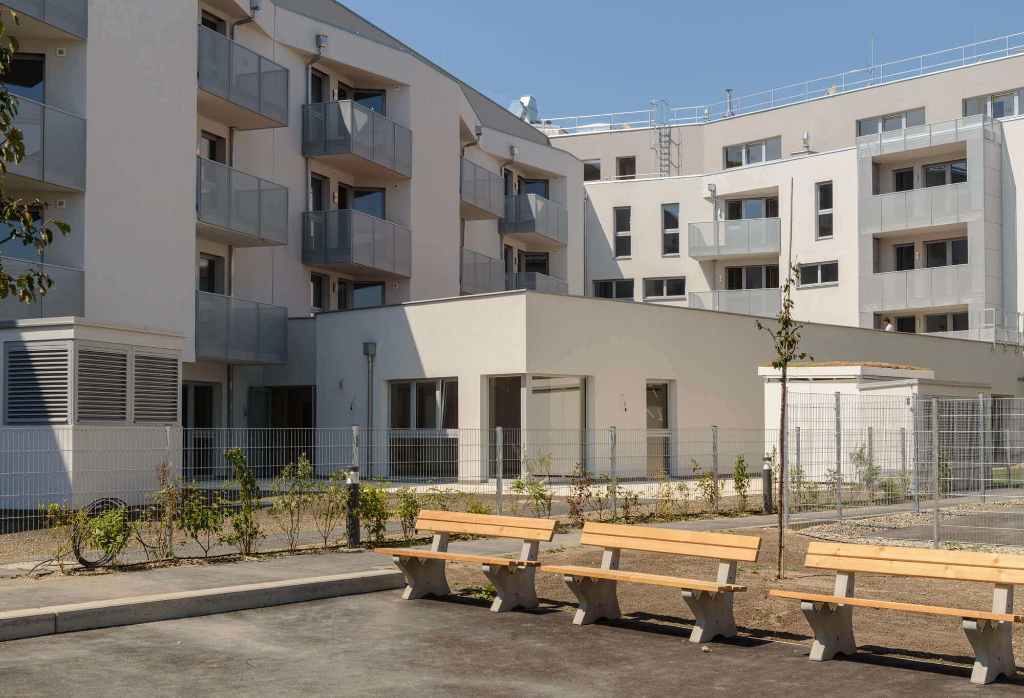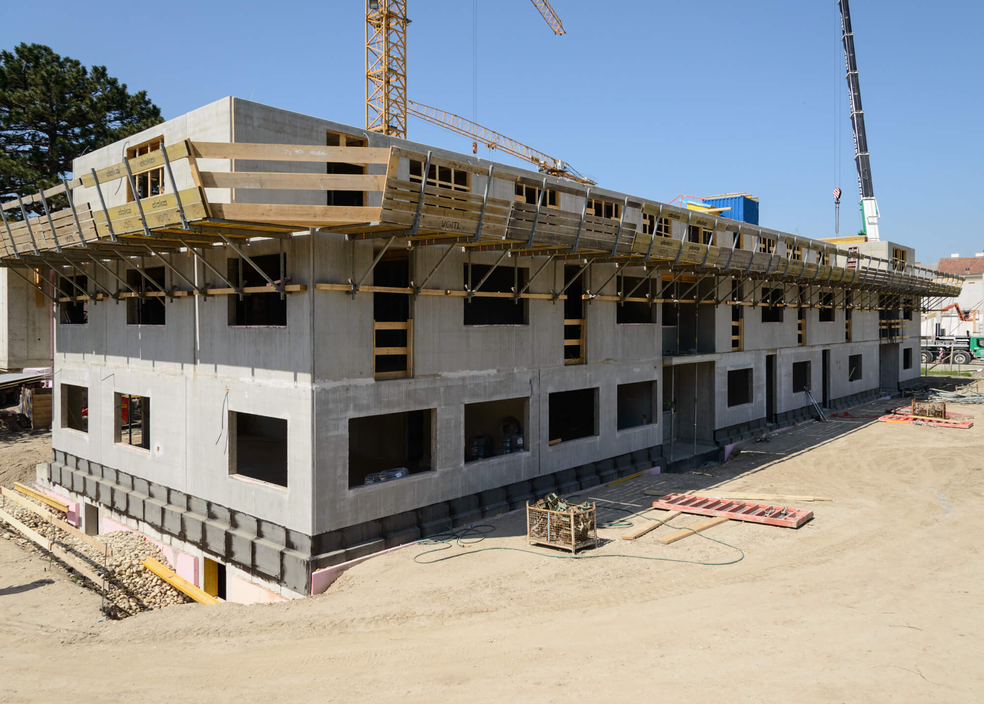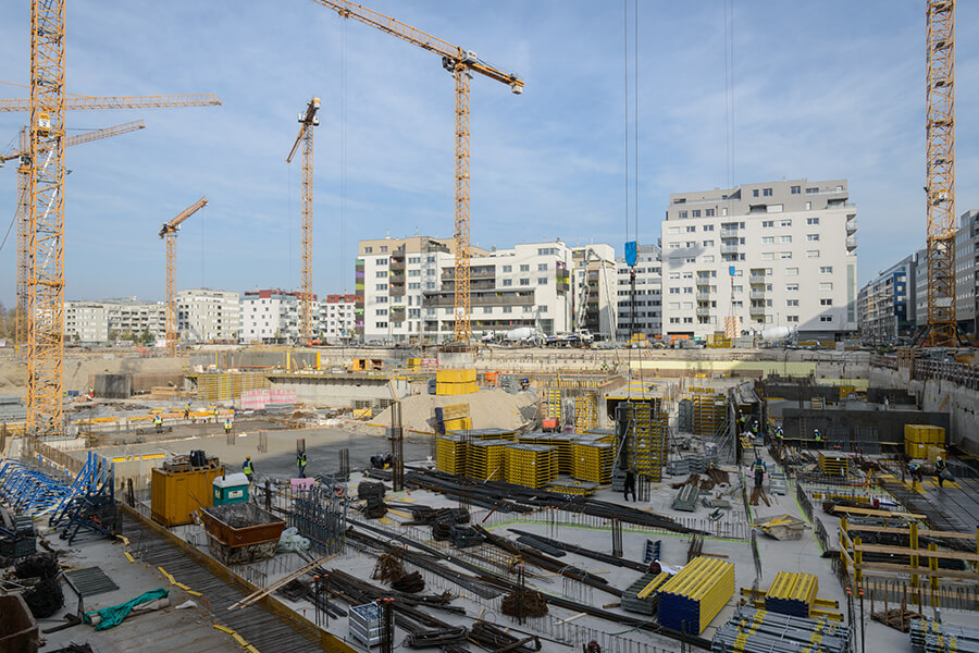 In dem neu geschaffenen Stadtquartier Ödenburger Straße im 21. Wiener Gemeindebezirk errichtet Voitl & Co. als Generalunternehmer 180 geförderte Mietwohnungen.