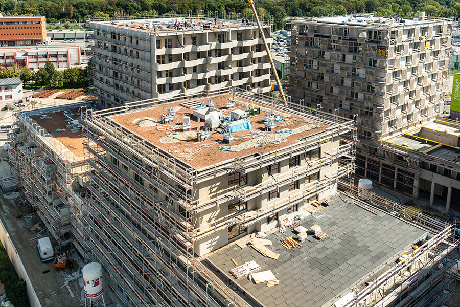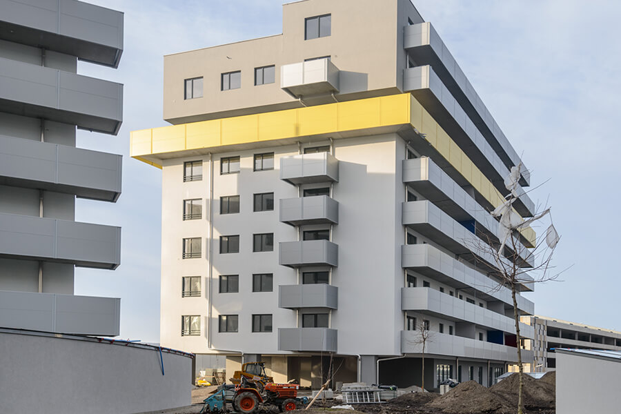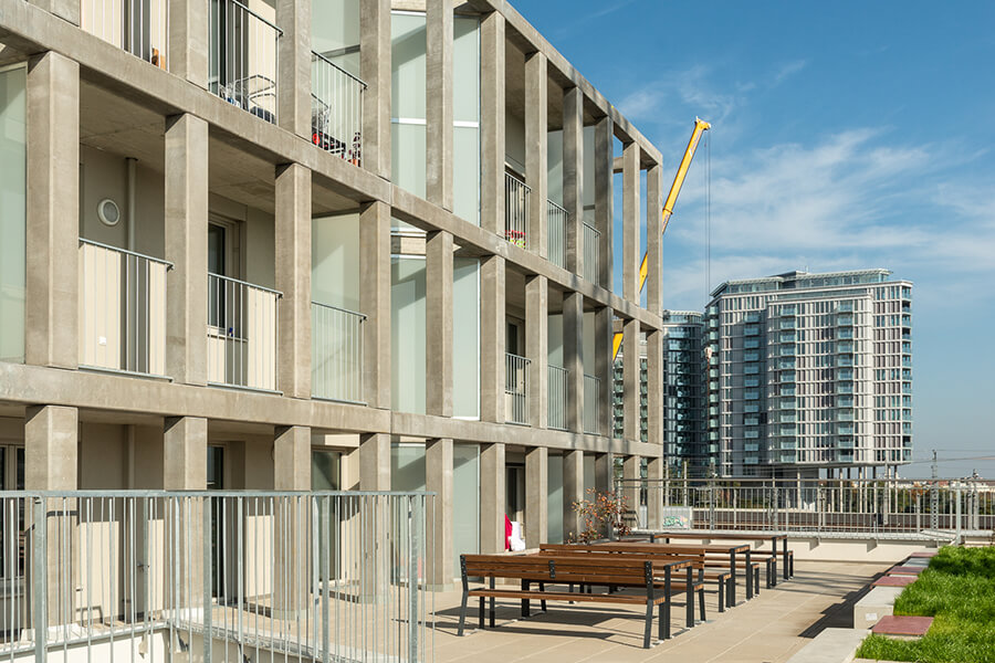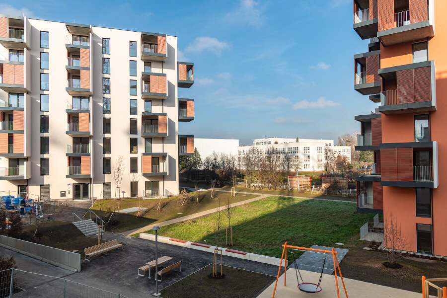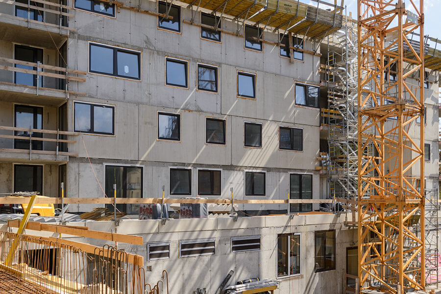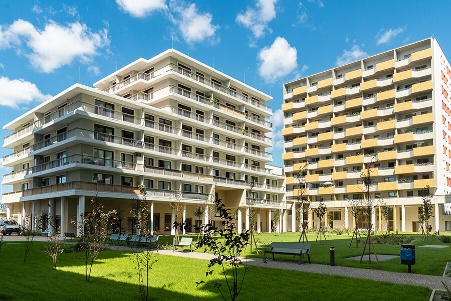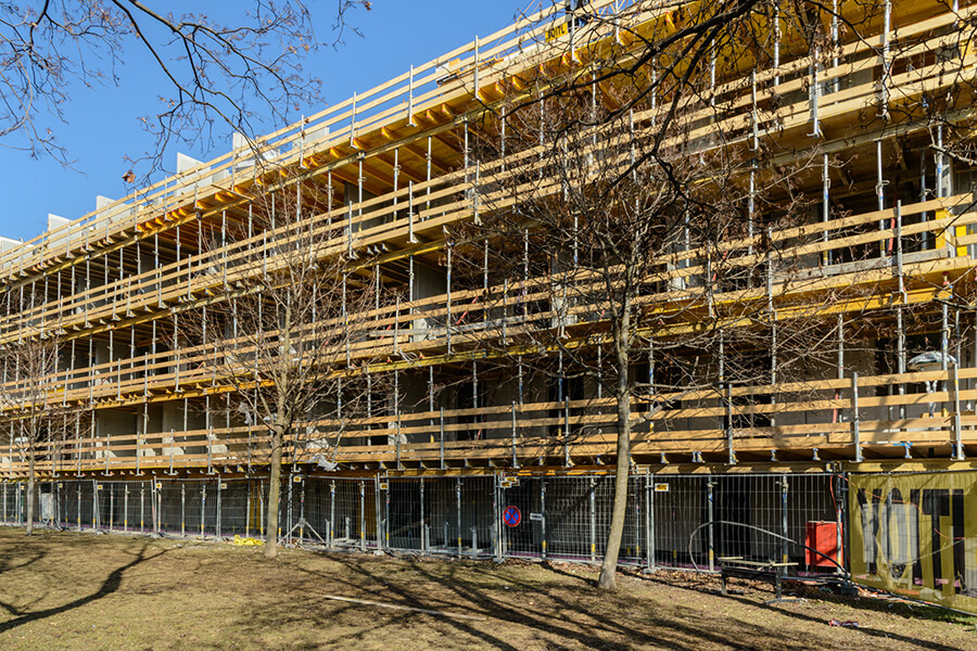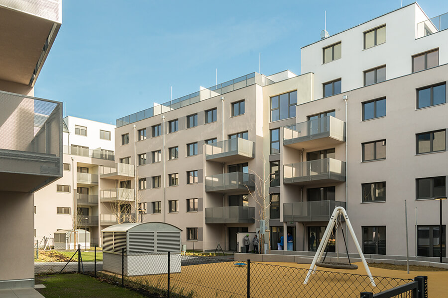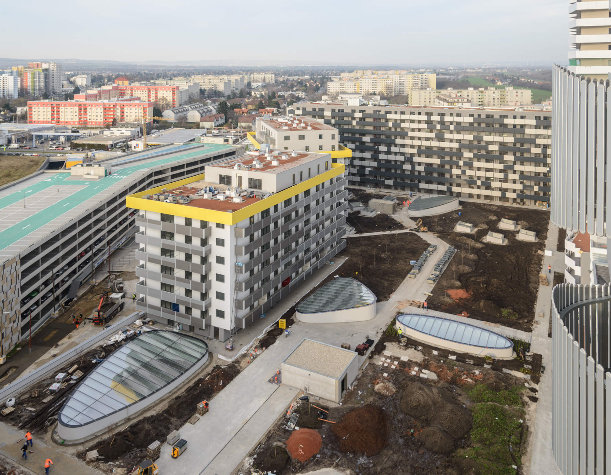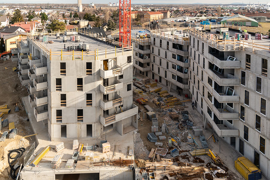 In dem neu geschaffenen Stadtquartier Ödenburger Straße im 21. Wiener Gemeindebezirk errichtet Voitl & Co. als Generalunternehmer 180 geförderte Mietwohnungen.