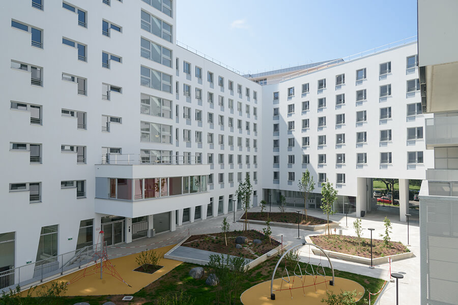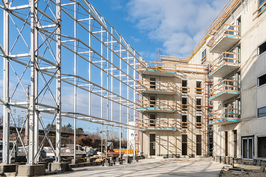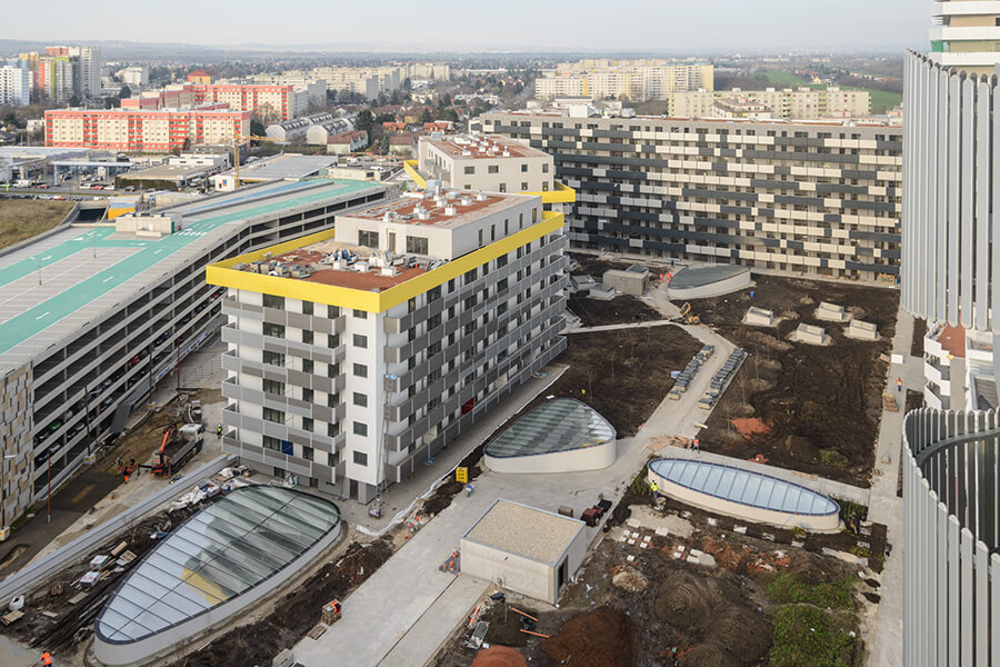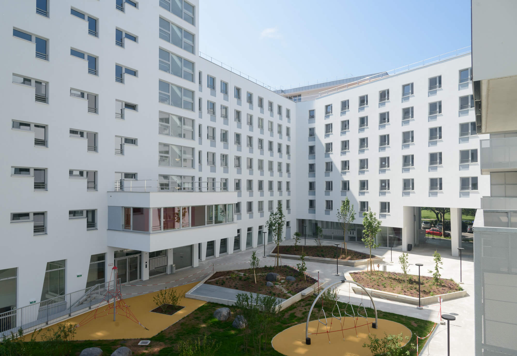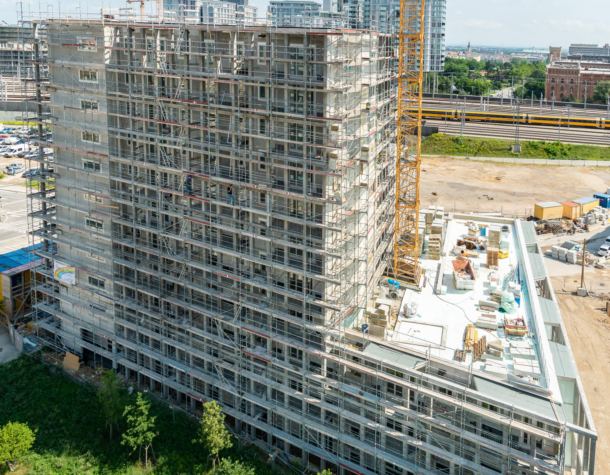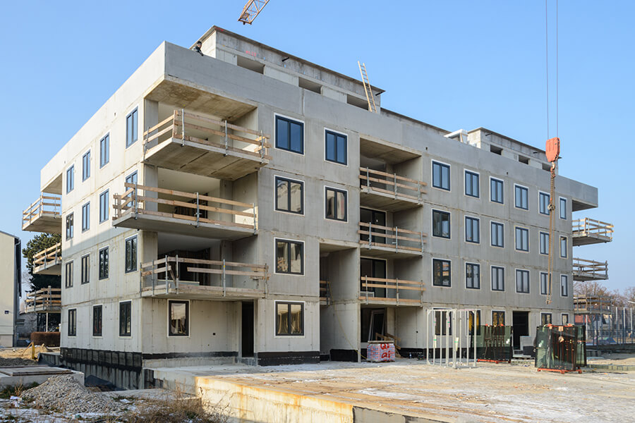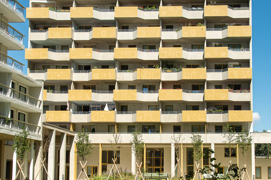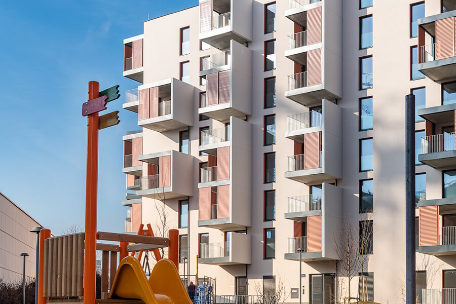 In dem neu geschaffenen Stadtquartier Ödenburger Straße im 21. Wiener Gemeindebezirk errichtet Voitl & Co. als Generalunternehmer 180 geförderte Mietwohnungen.