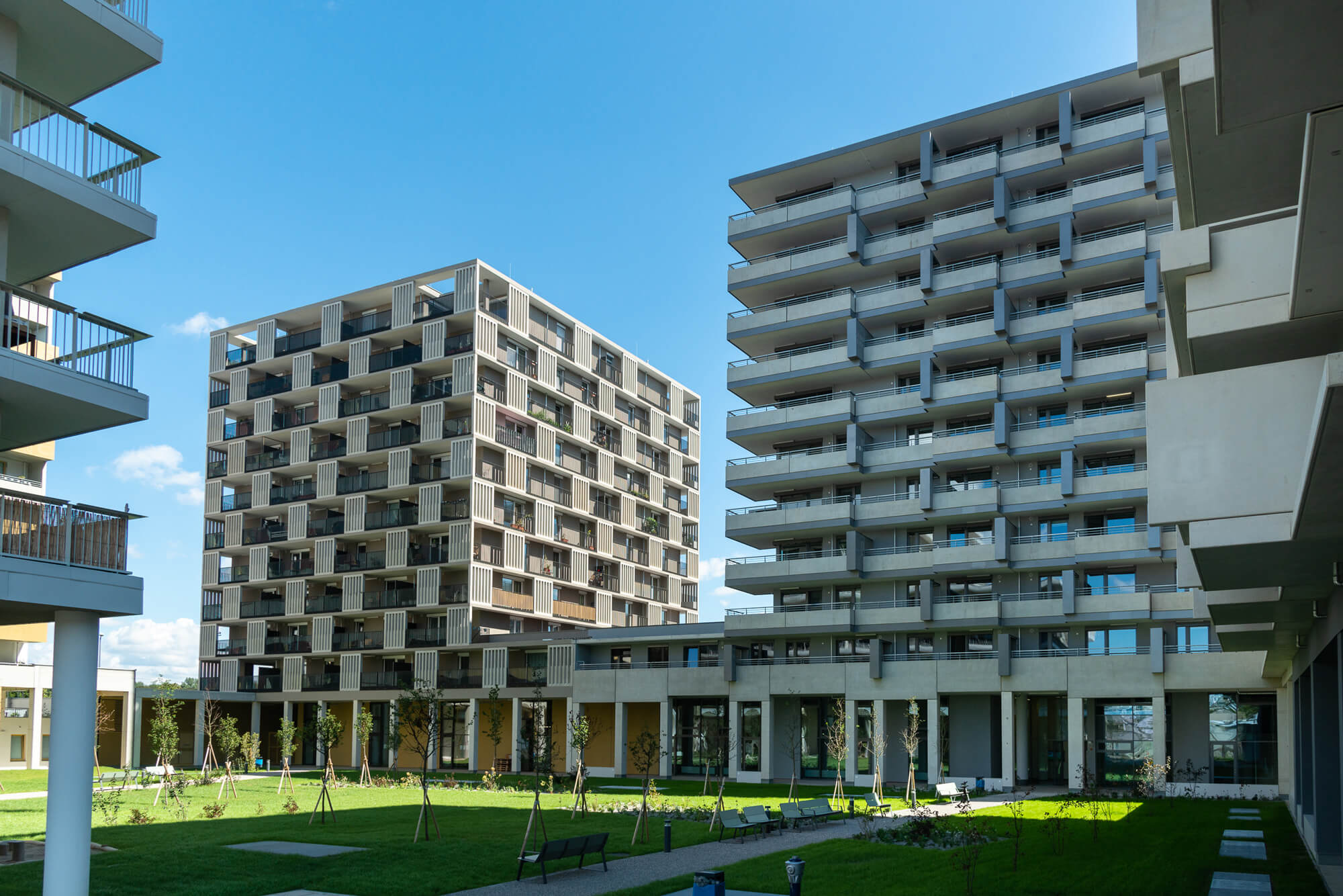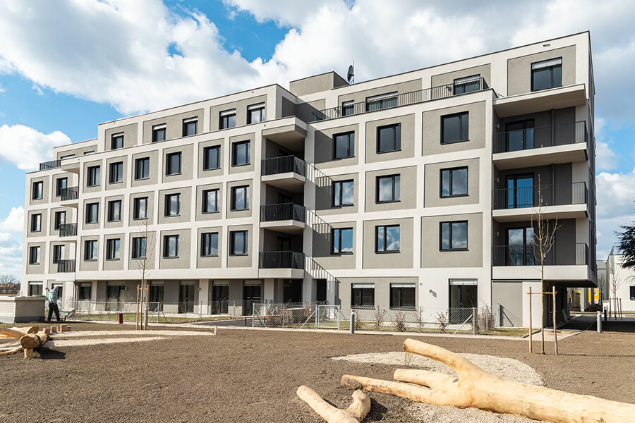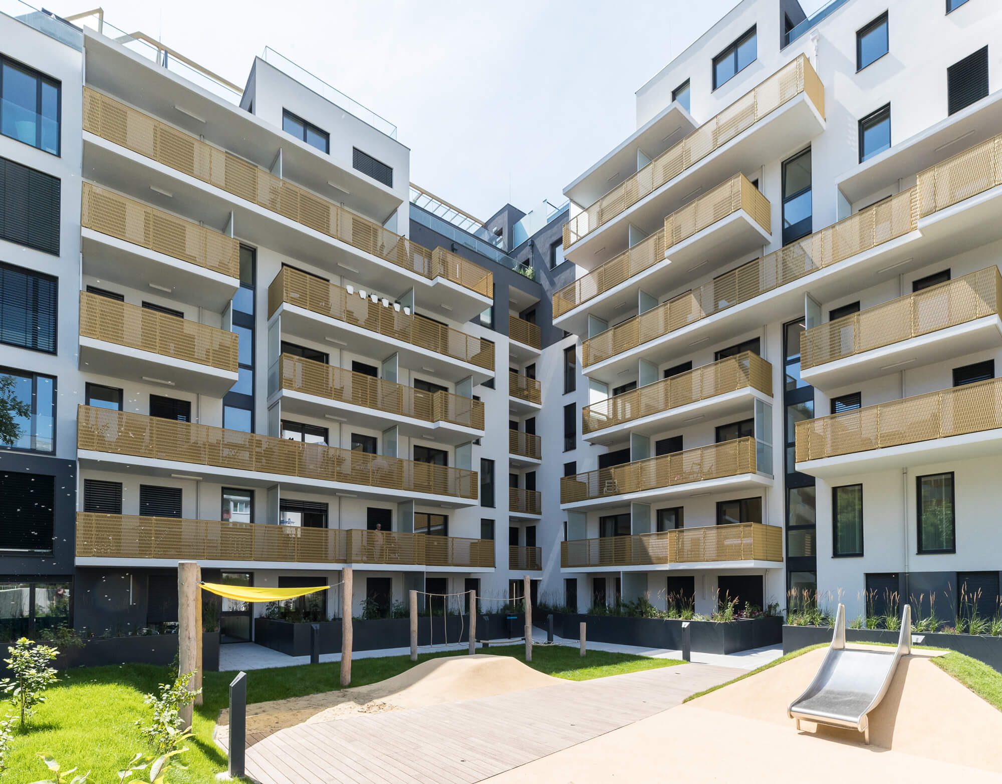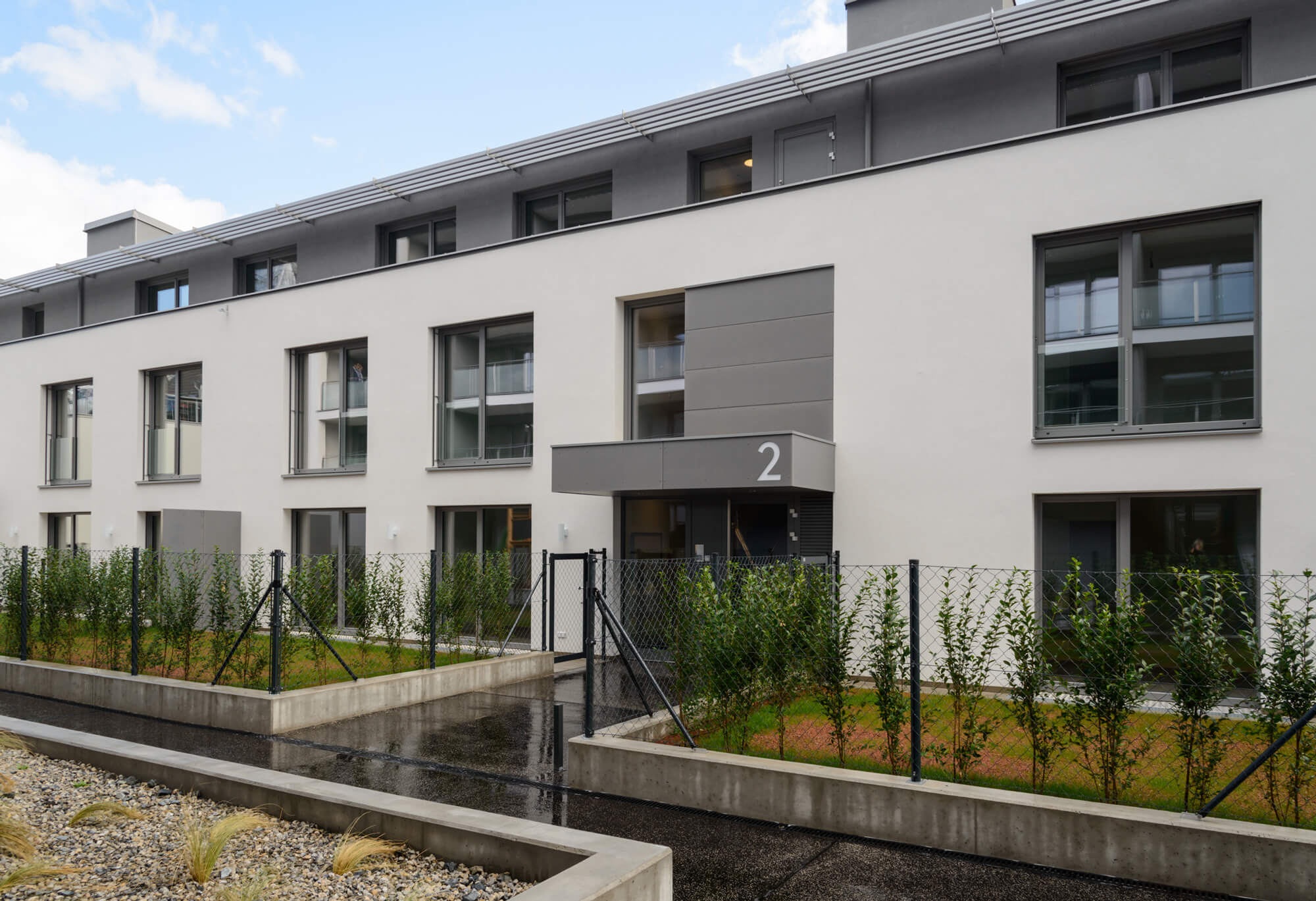 Die hochwertigen Miet- und Eigentumswohnungen sind von 2-Zimmer-Wohnungen bis zu Familienwohnungen mit über 100 m² Nutzfläche geplant, wobei alle Einheiten über einen Garten, einen Balkon oder eine Terrasse verfügen.