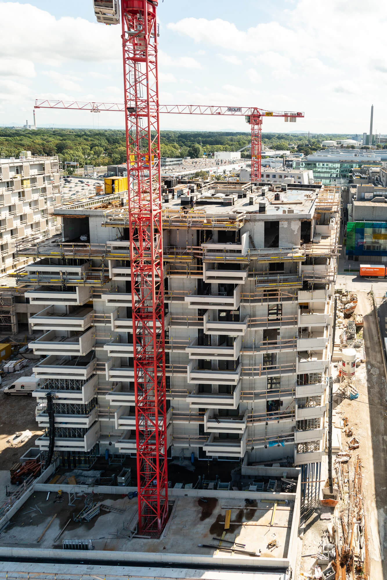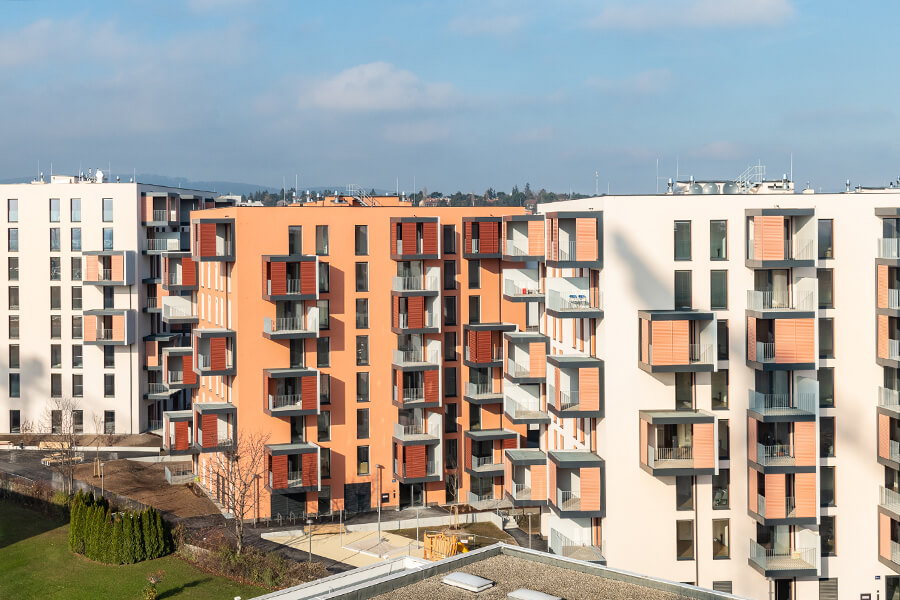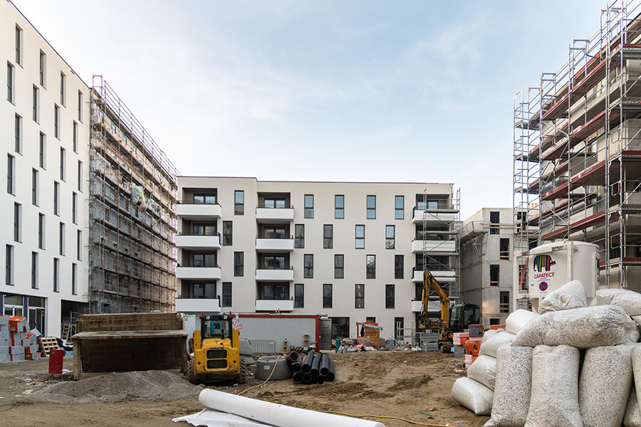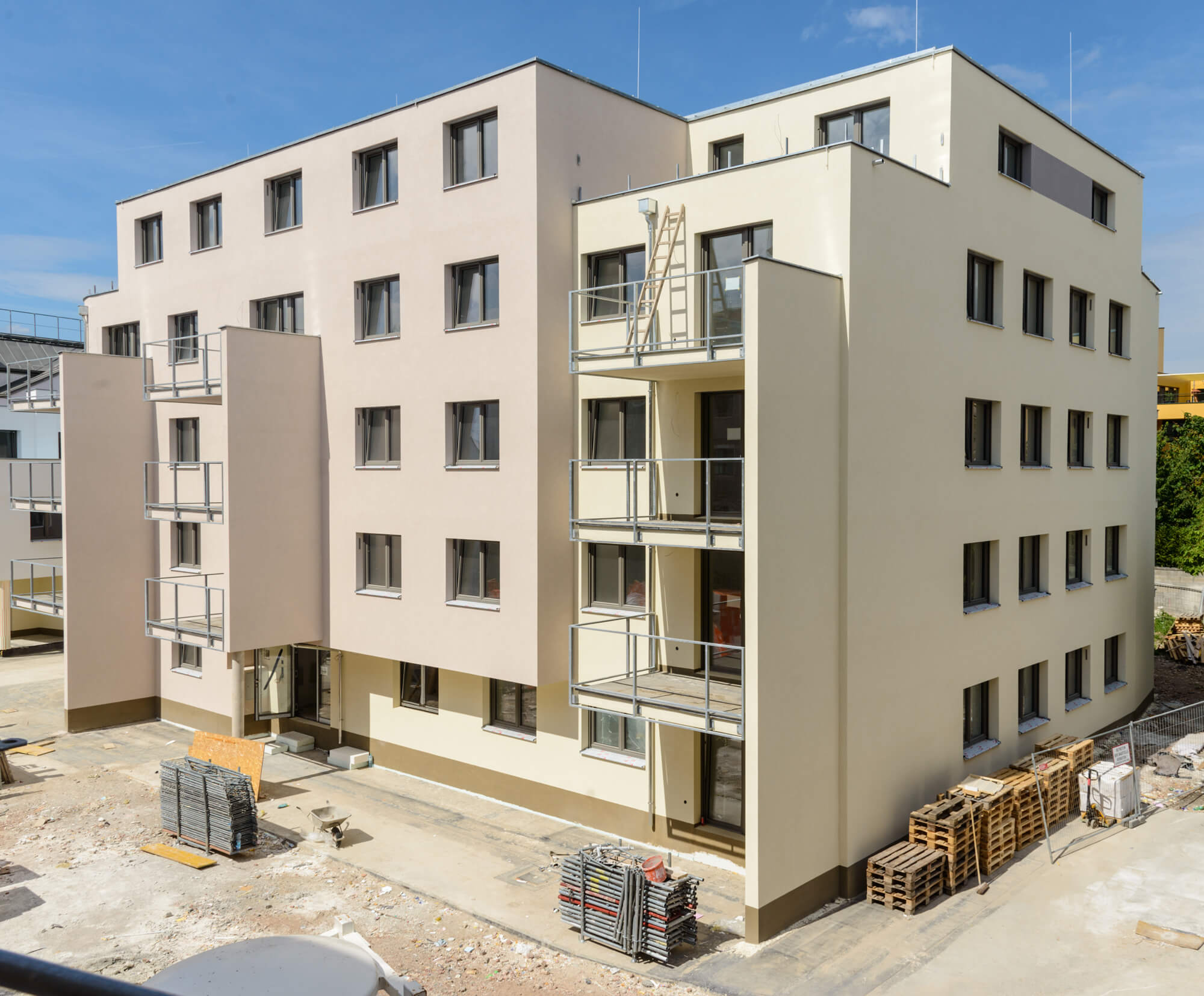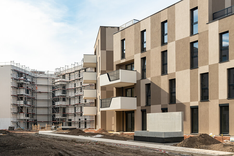 Die hochwertigen Miet- und Eigentumswohnungen sind von 2-Zimmer-Wohnungen bis zu Familienwohnungen mit über 100 m² Nutzfläche geplant, wobei alle Einheiten über einen Garten, einen Balkon oder eine Terrasse verfügen.