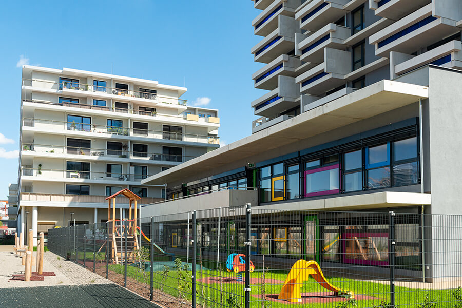 Die im Sonnwendviertel geplante Errichtung von Einkaufsmöglichkeiten, Schulen, Kindergärten, Ärztepraxen und Apotheken garantiert eine hervorragende Infrastruktur.