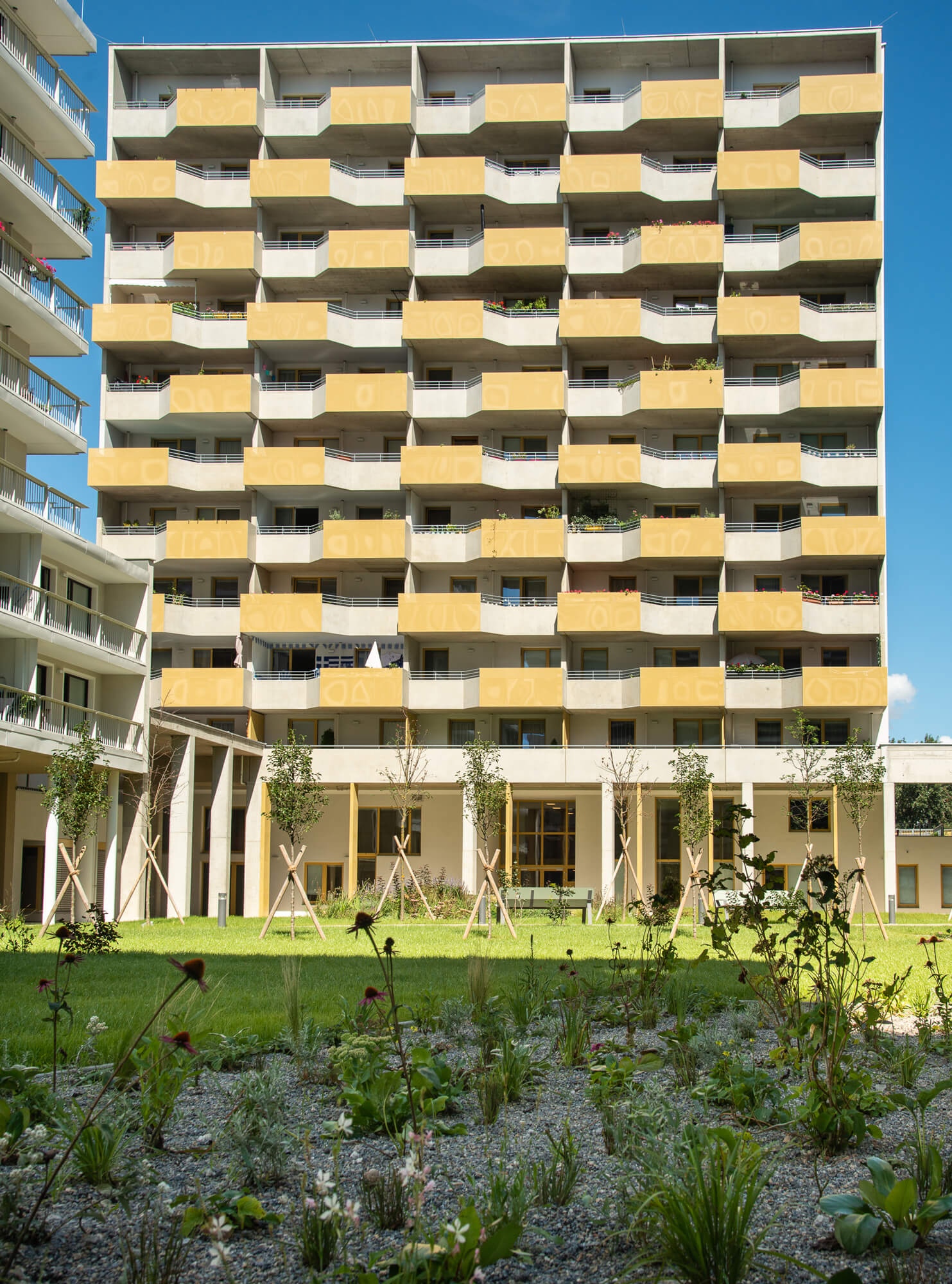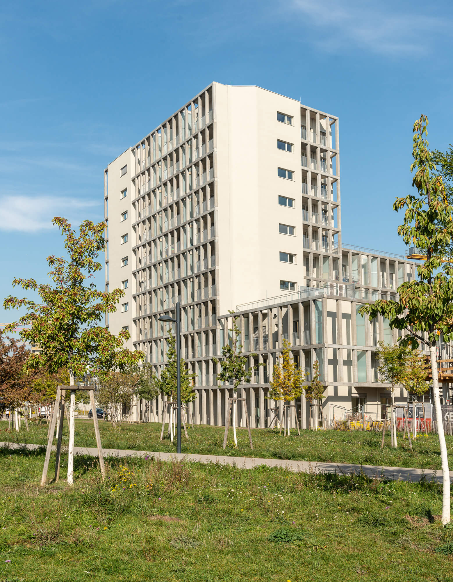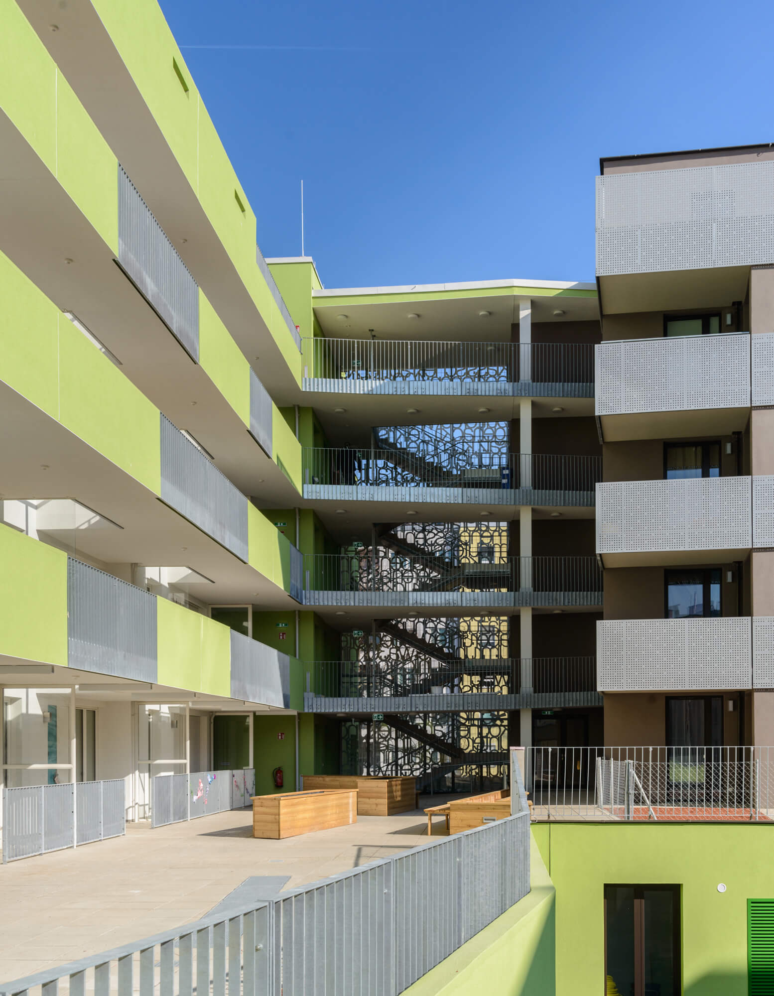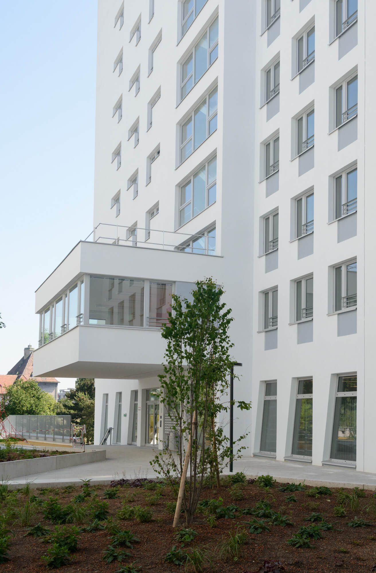 Im mit 11 Obergeschoßen (EG, 1–10 OG) und einem Untergeschoß errichteten Wohngebäude entstehen insgesamt 79 geförderte Wohnungen. Im Erdgeschoß und Teilen der ersten beiden Obergeschoße entstehen zudem ein Ambulatorium, eine Wohngemeinschaft und Gewerbeeinheiten.