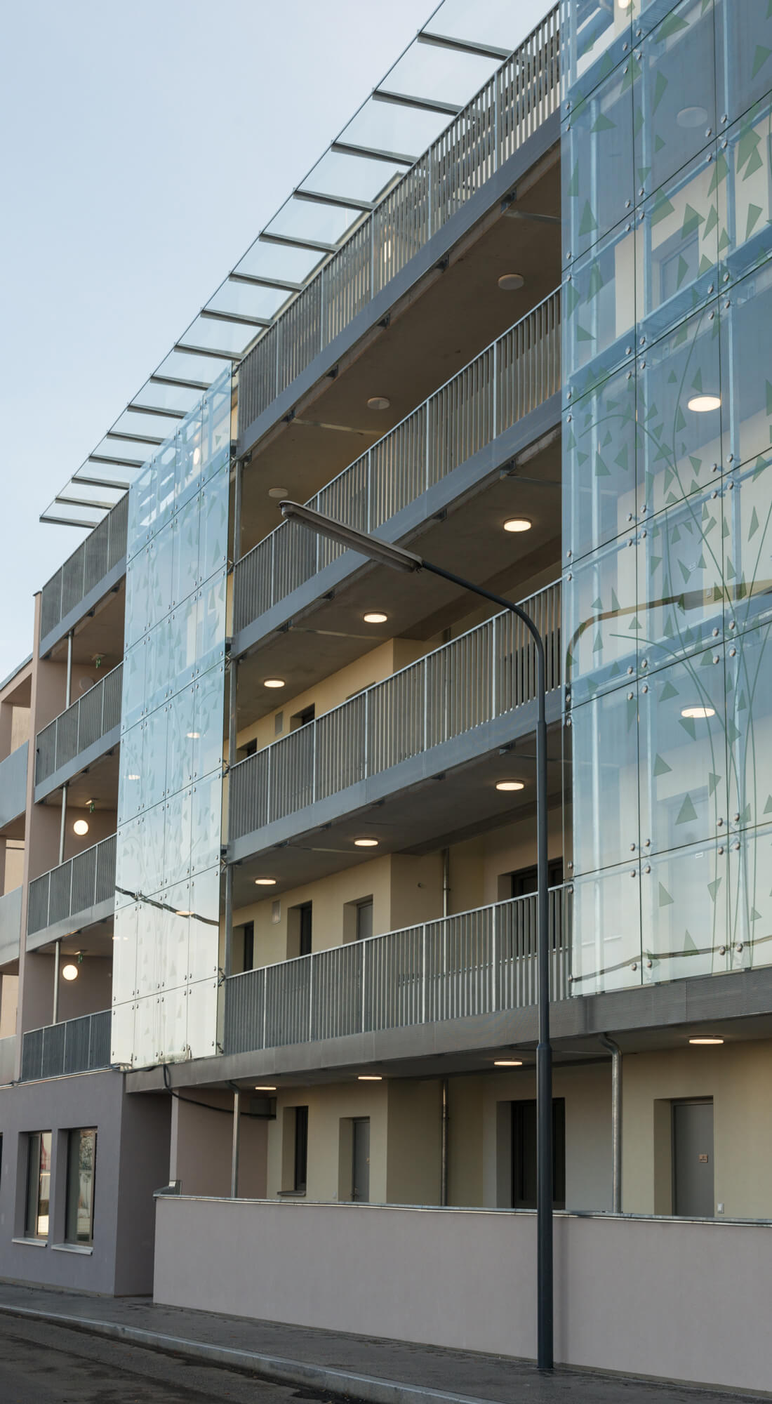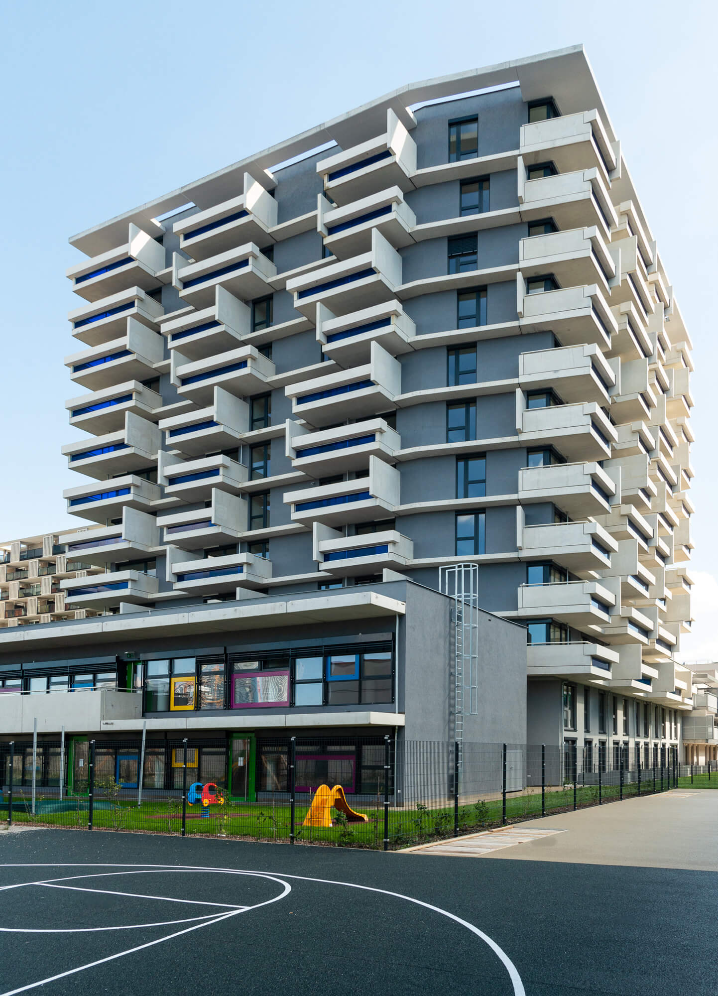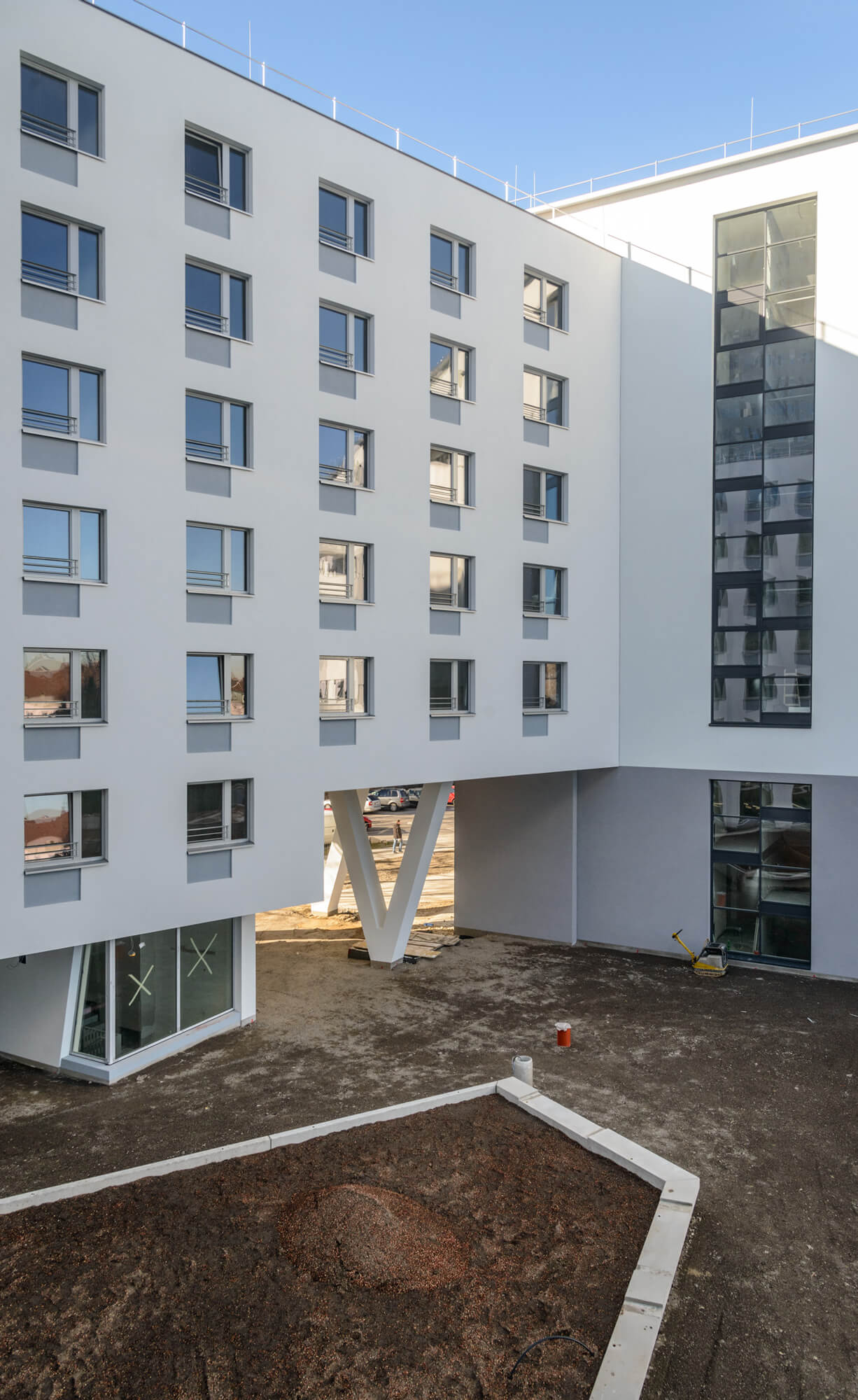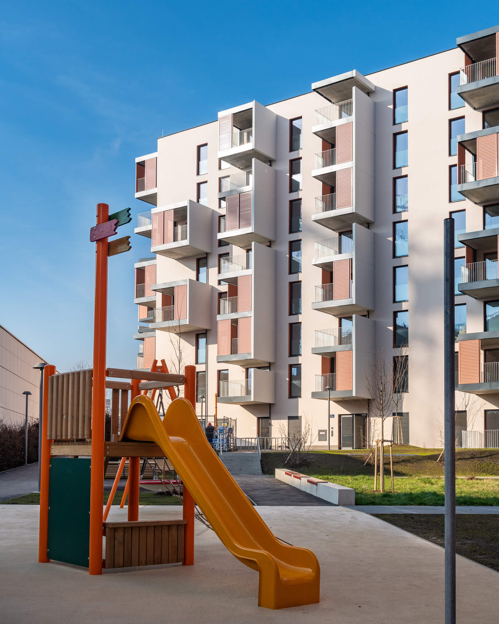 Im mit 11 Obergeschoßen (EG, 1–10 OG) und einem Untergeschoß errichteten Wohngebäude entstehen insgesamt 79 geförderte Wohnungen. Im Erdgeschoß und Teilen der ersten beiden Obergeschoße entstehen zudem ein Ambulatorium, eine Wohngemeinschaft und Gewerbeeinheiten.