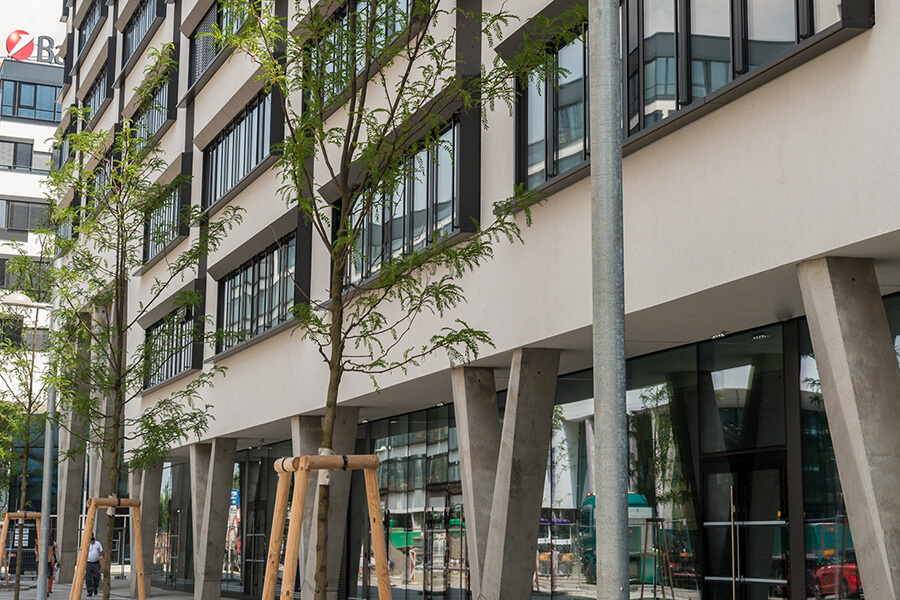 Am Hauptbahnhof gelegen, bildet das Gebäude das Tor zum Helmut-Zilk-Park, der mit rund 70.000 Quadratmetern unter anderem einen Spielplatz, ein Café-Restaurant, eine Hundezone, multifunktionale Rasenflächen sowie ein Sonnendeck und Gemeinschaftsgärten bietet.