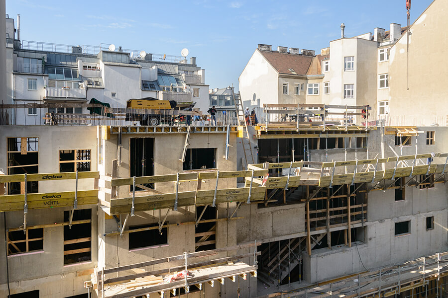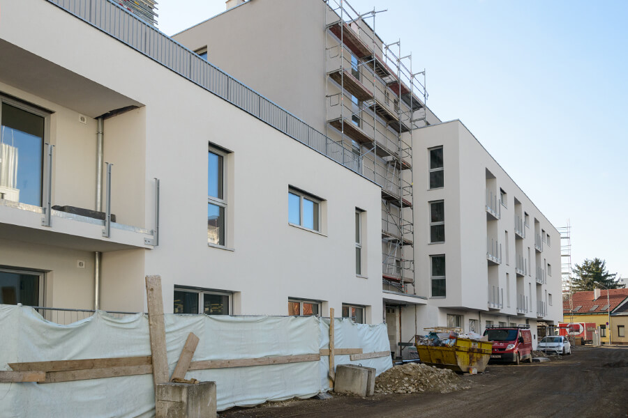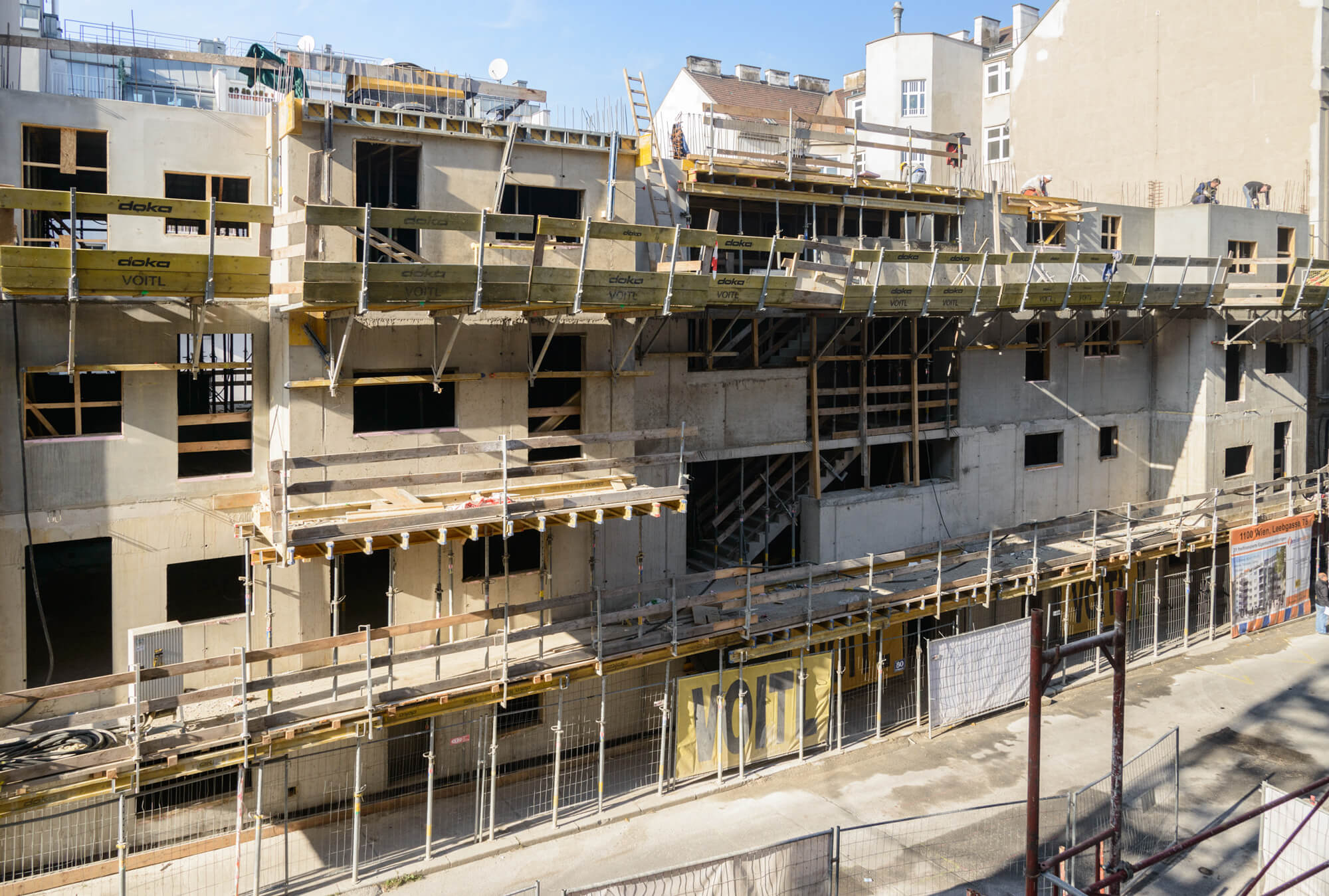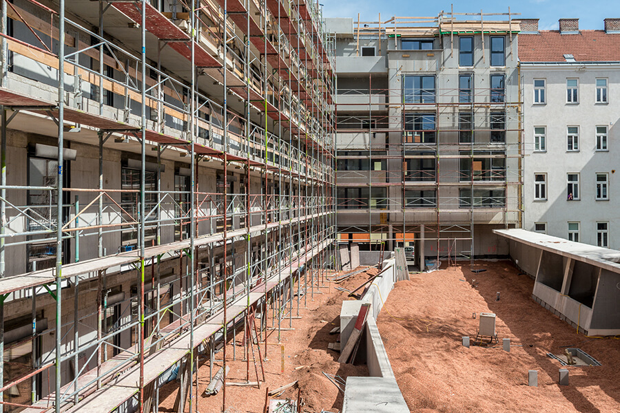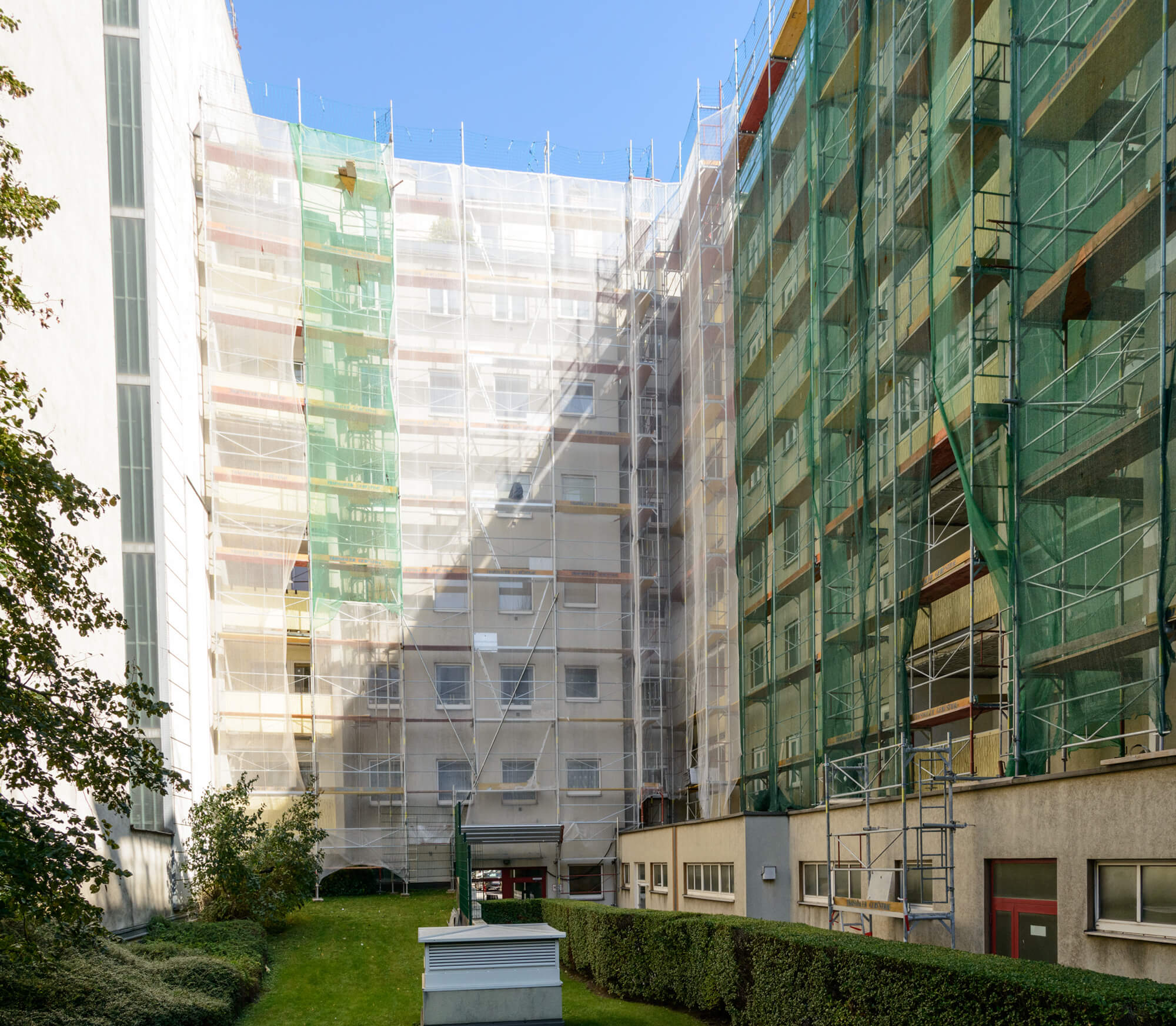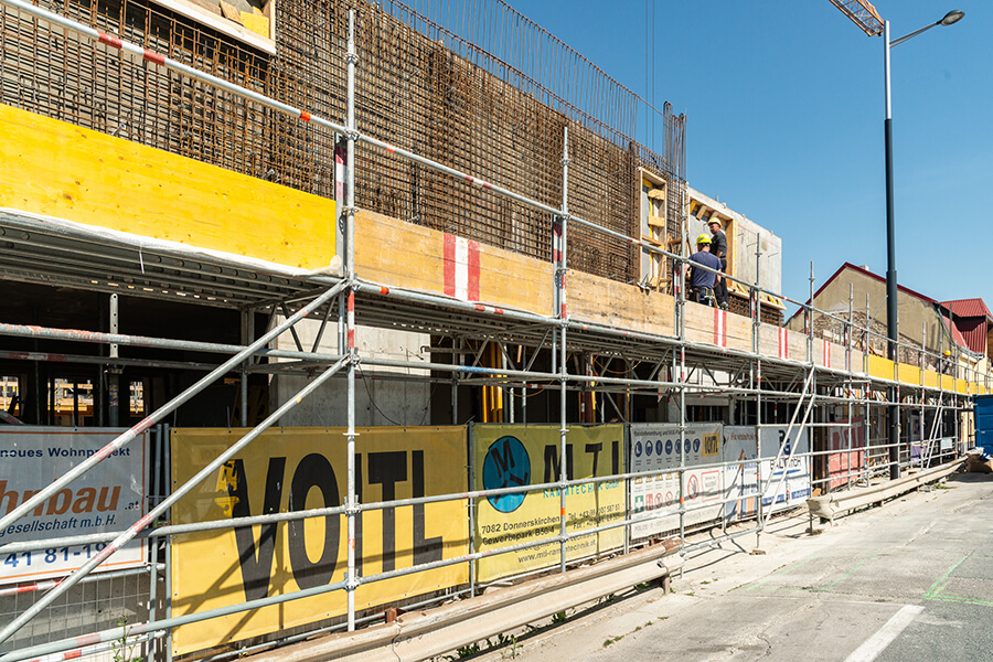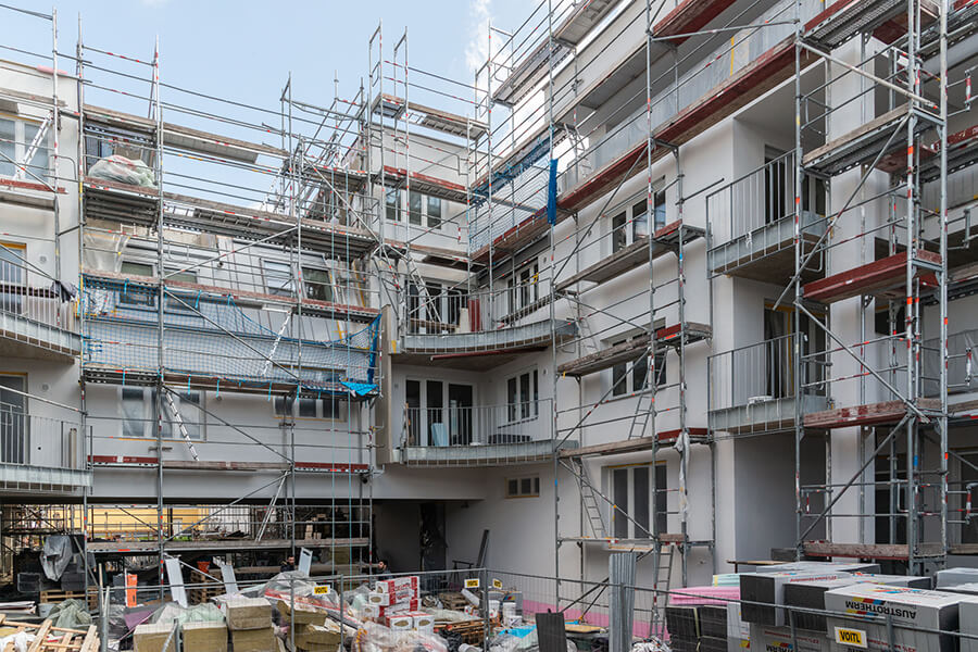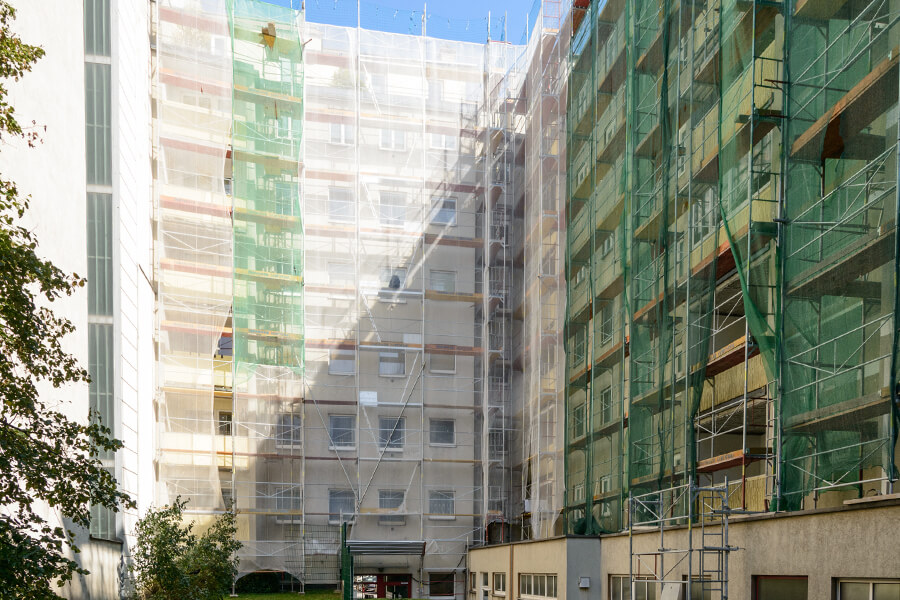 Bei dieser Wohnhausanlage sind umfangreiche Erhaltungs- und Verbesserungsmaßnahmen durchzuführen, die von Voitl & Co. im Zuge eines Teilgeneralunternehmerauftrages erbracht werden.