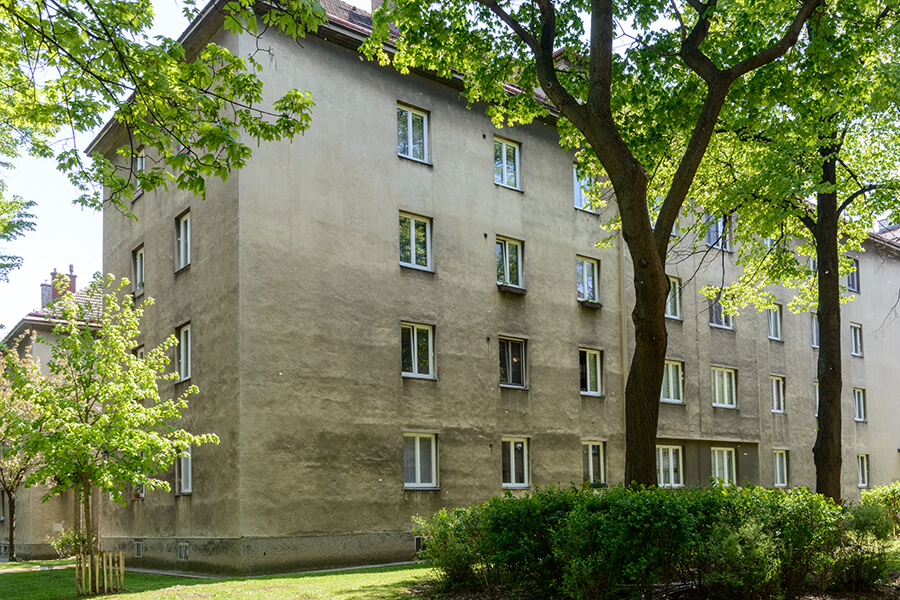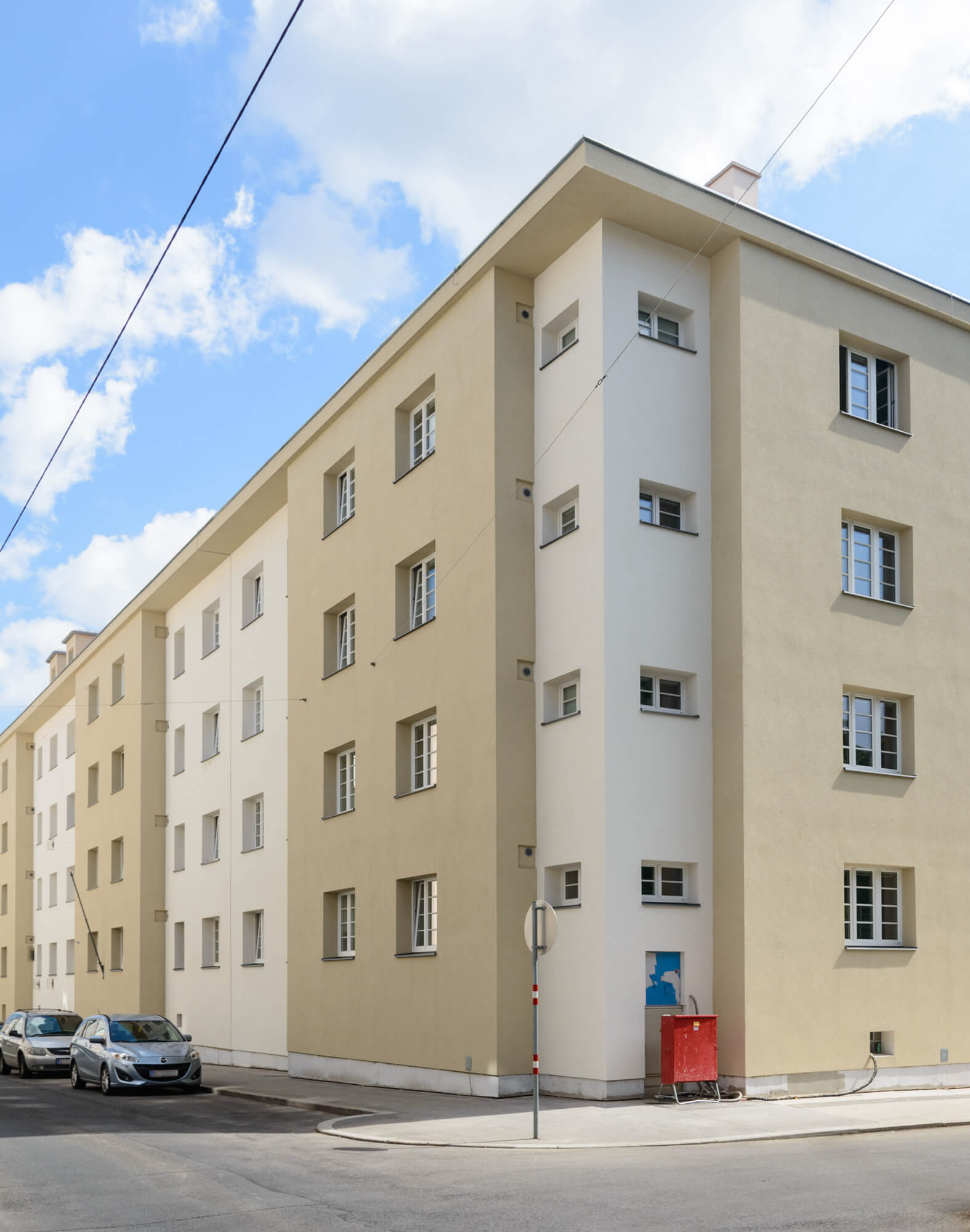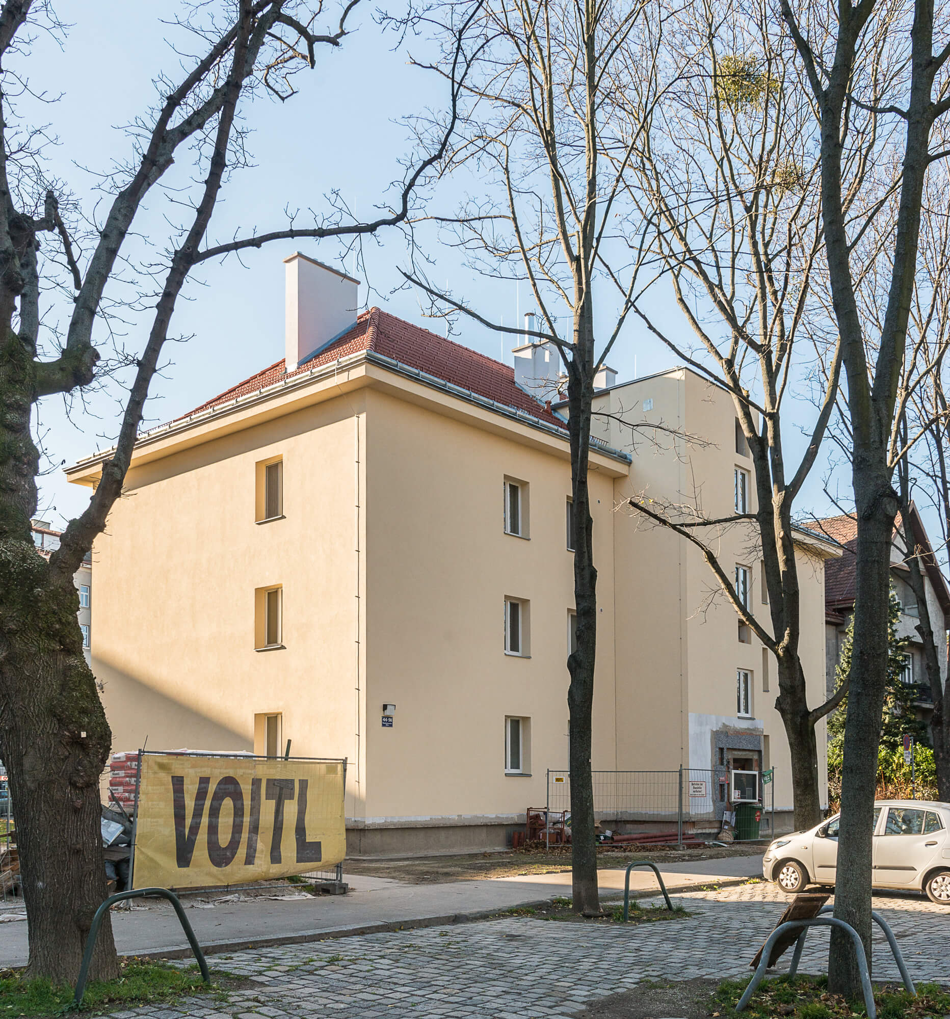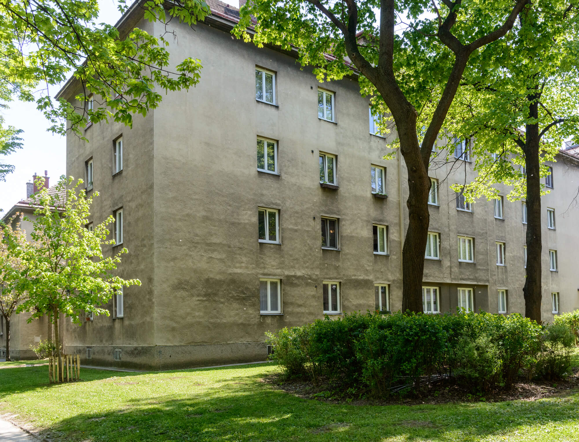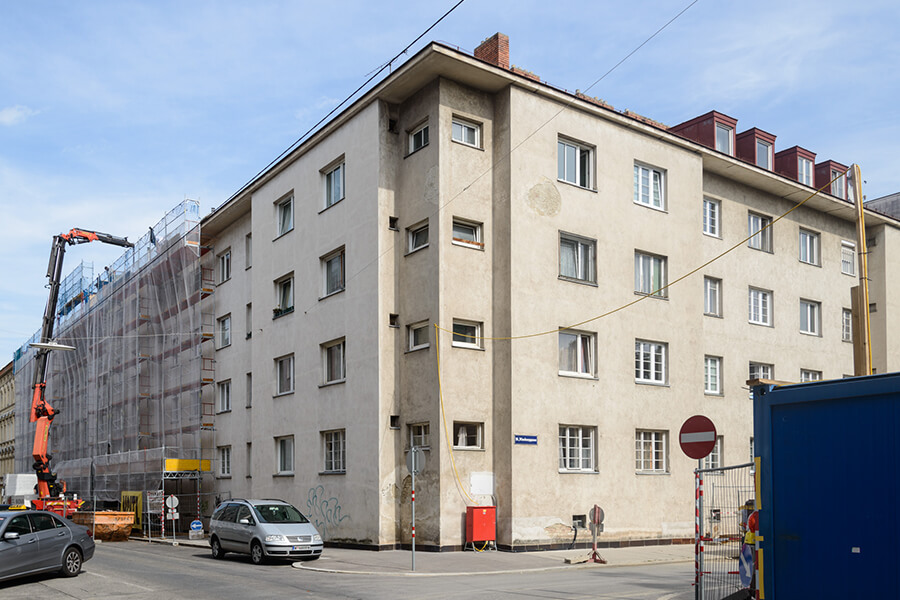 Diese städtische Wohnhausanlage wurde 1937 gebaut. Sie umfasst vier Stiegen mit 68 Wohnungen und wird von Voitl & Co. mit einer Sockelsanierungsförderung saniert.