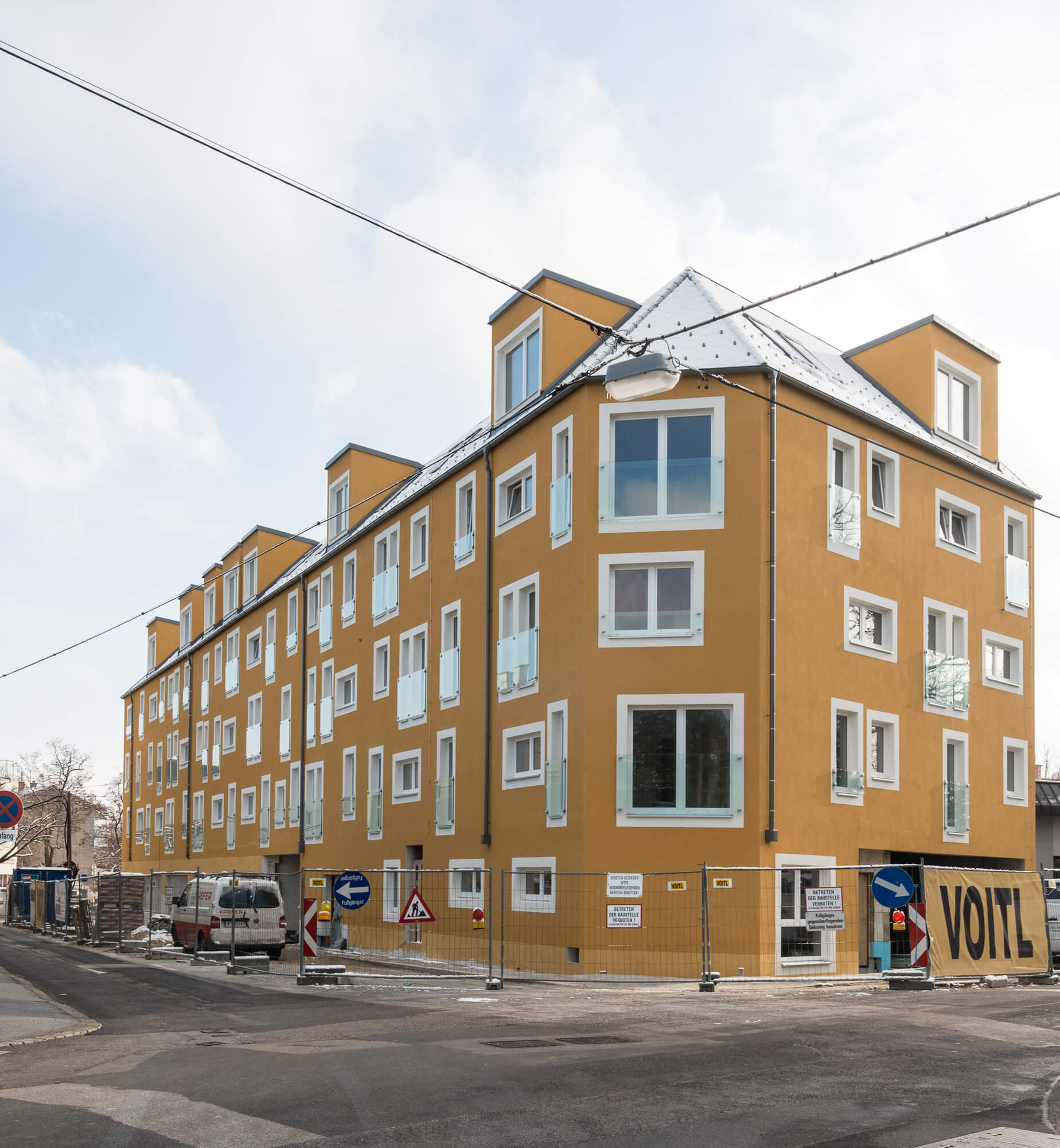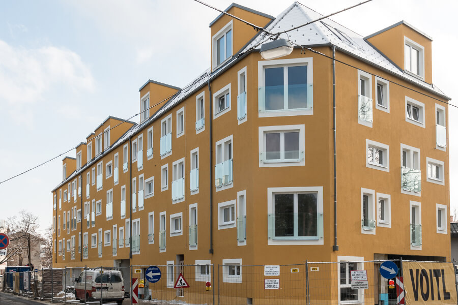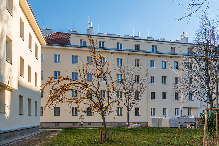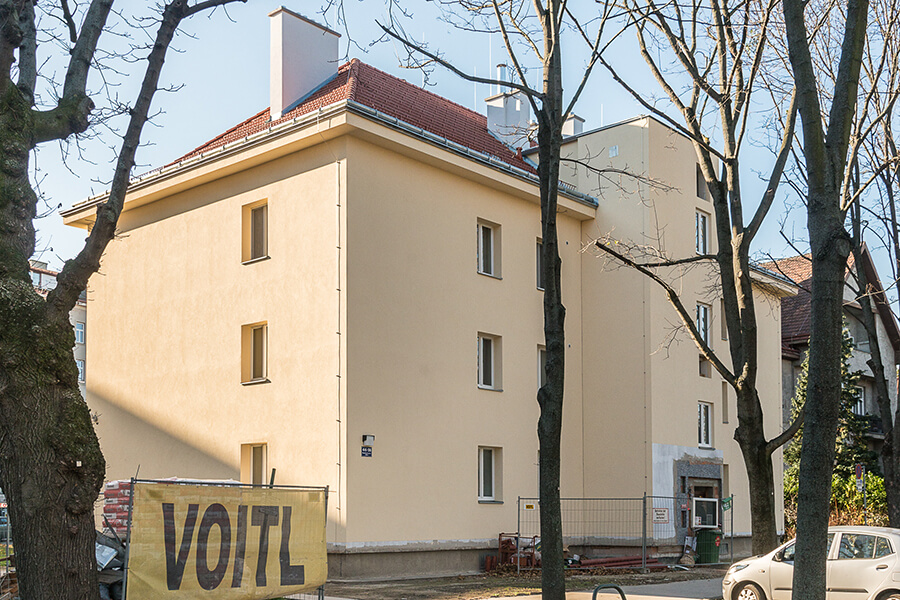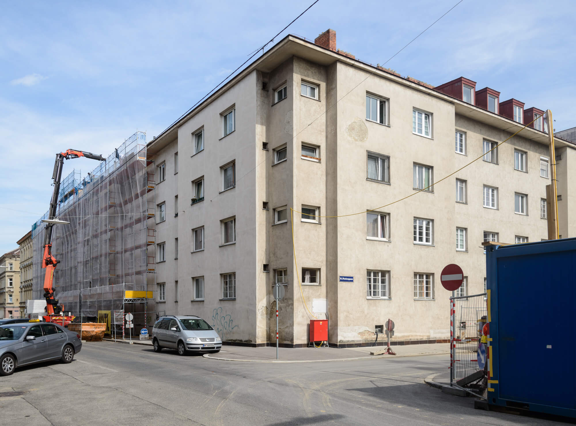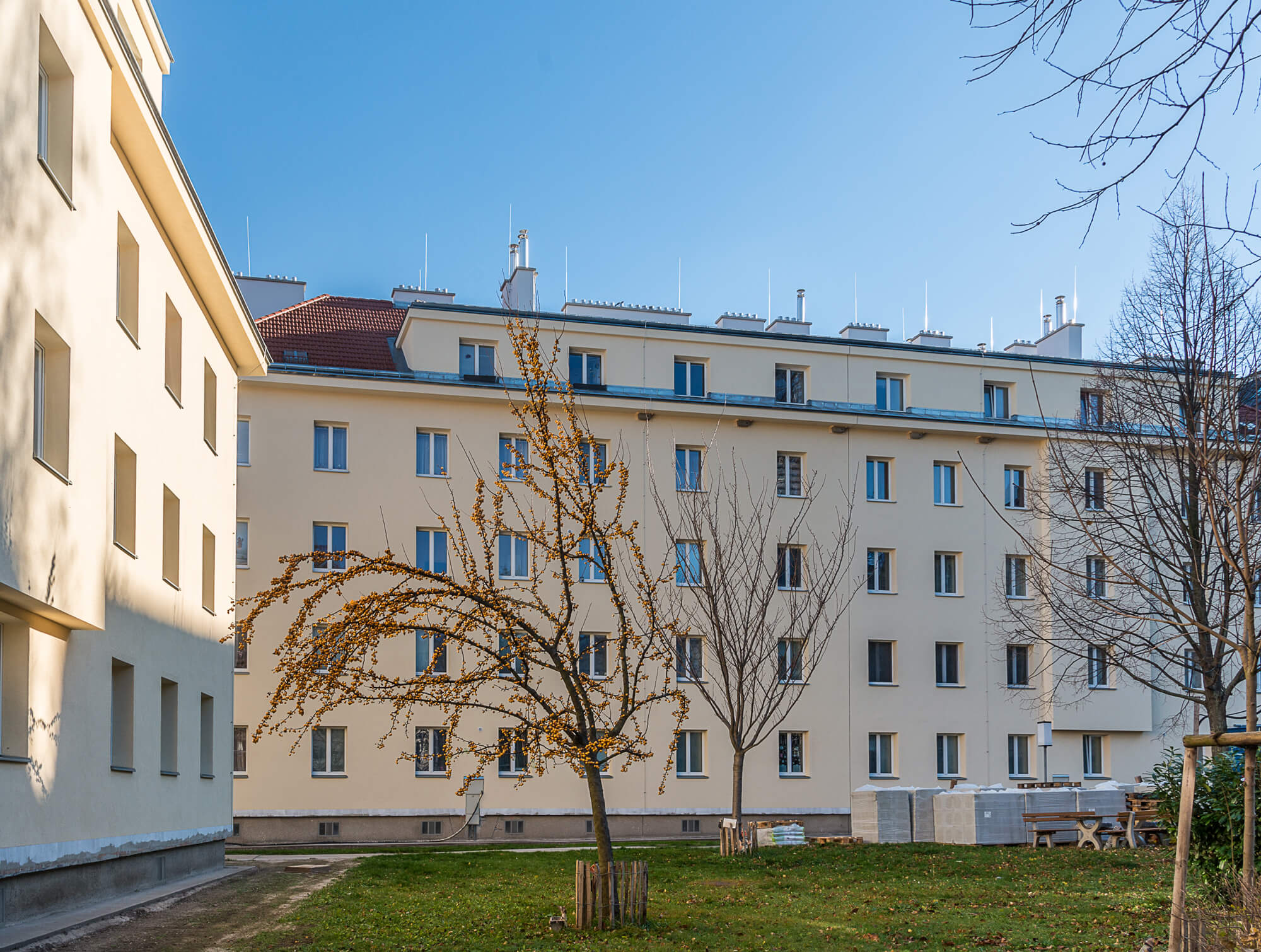 Diese städtische Wohnhausanlage wurde 1937 gebaut. Sie umfasst vier Stiegen mit 68 Wohnungen und wird von Voitl & Co. mit einer Sockelsanierungsförderung saniert.