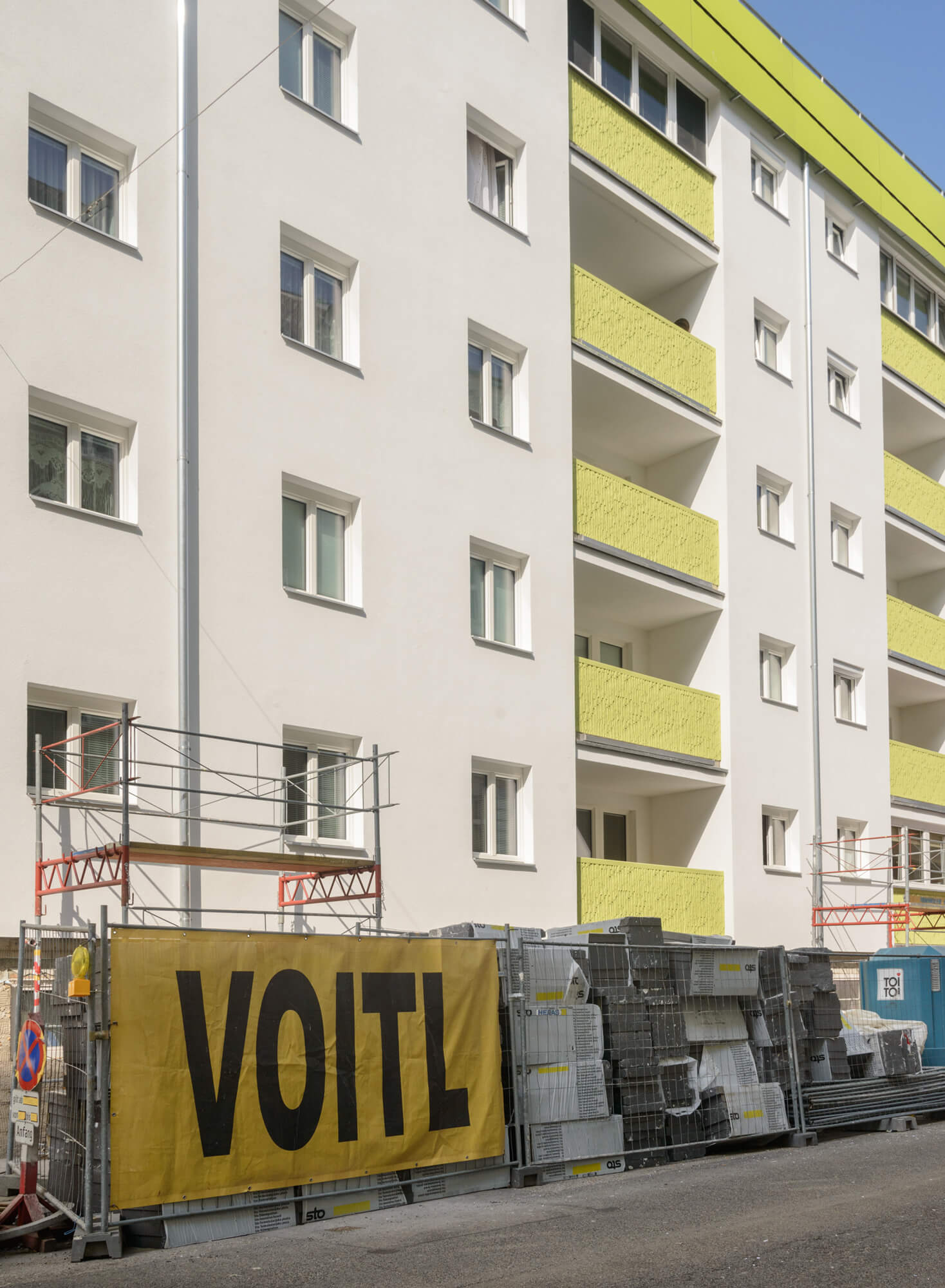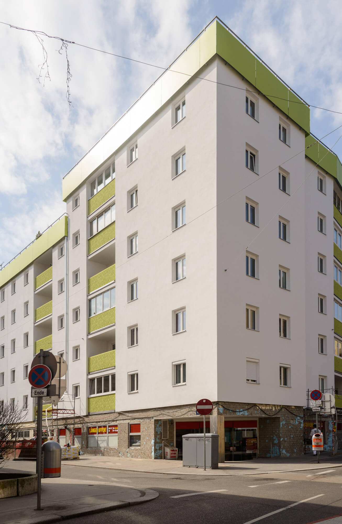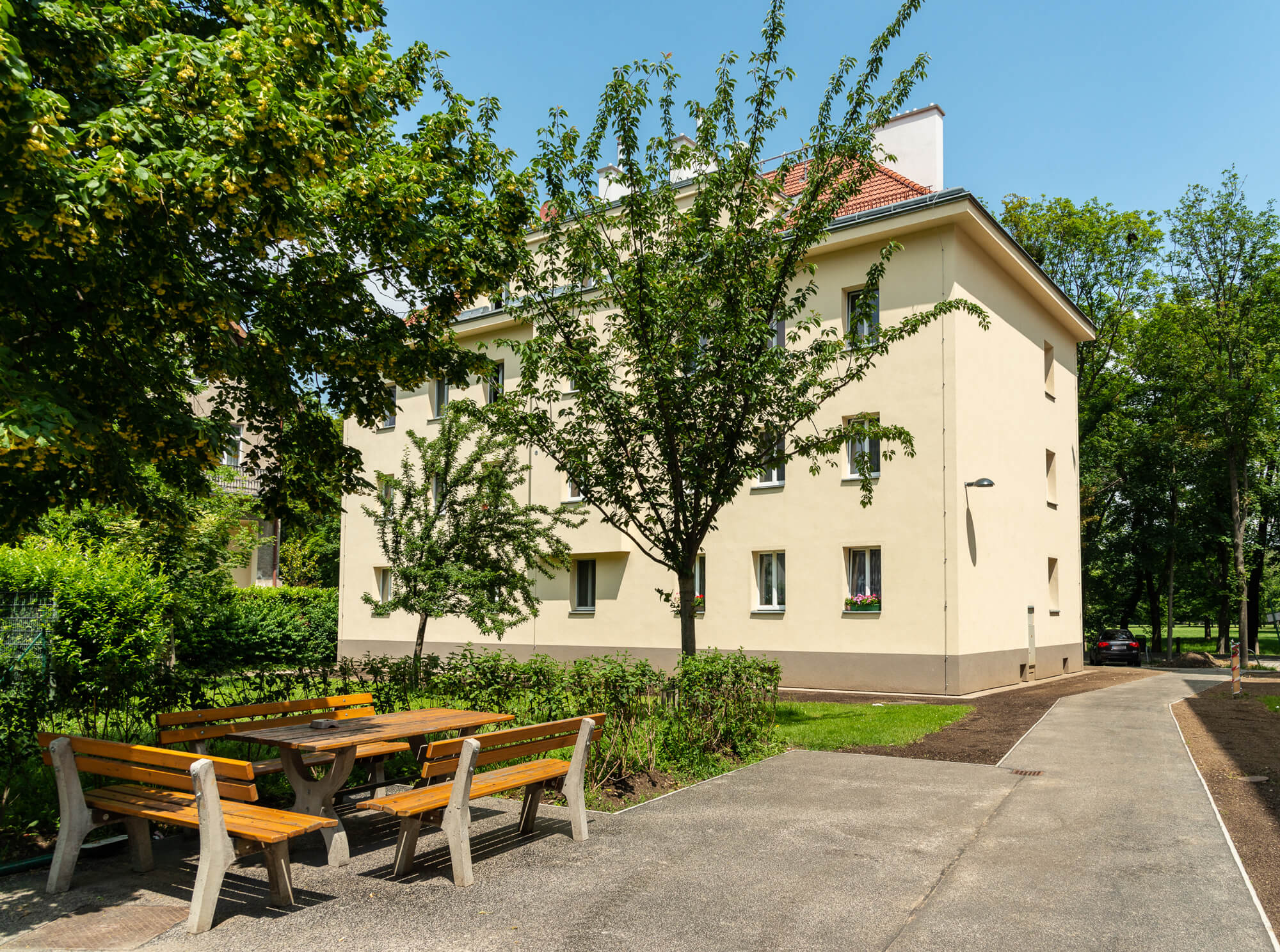 Diese städtische Wohnhausanlage wurde 1937 gebaut. Sie umfasst vier Stiegen mit 68 Wohnungen und wird von Voitl & Co. mit einer Sockelsanierungsförderung saniert.
