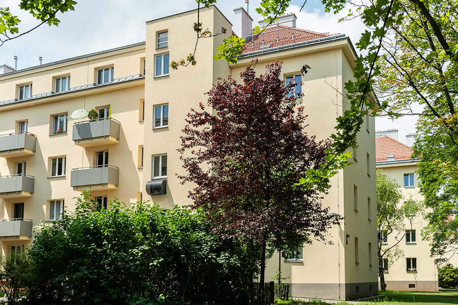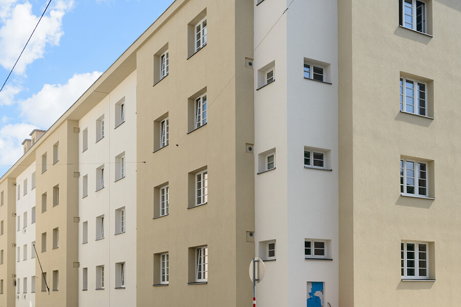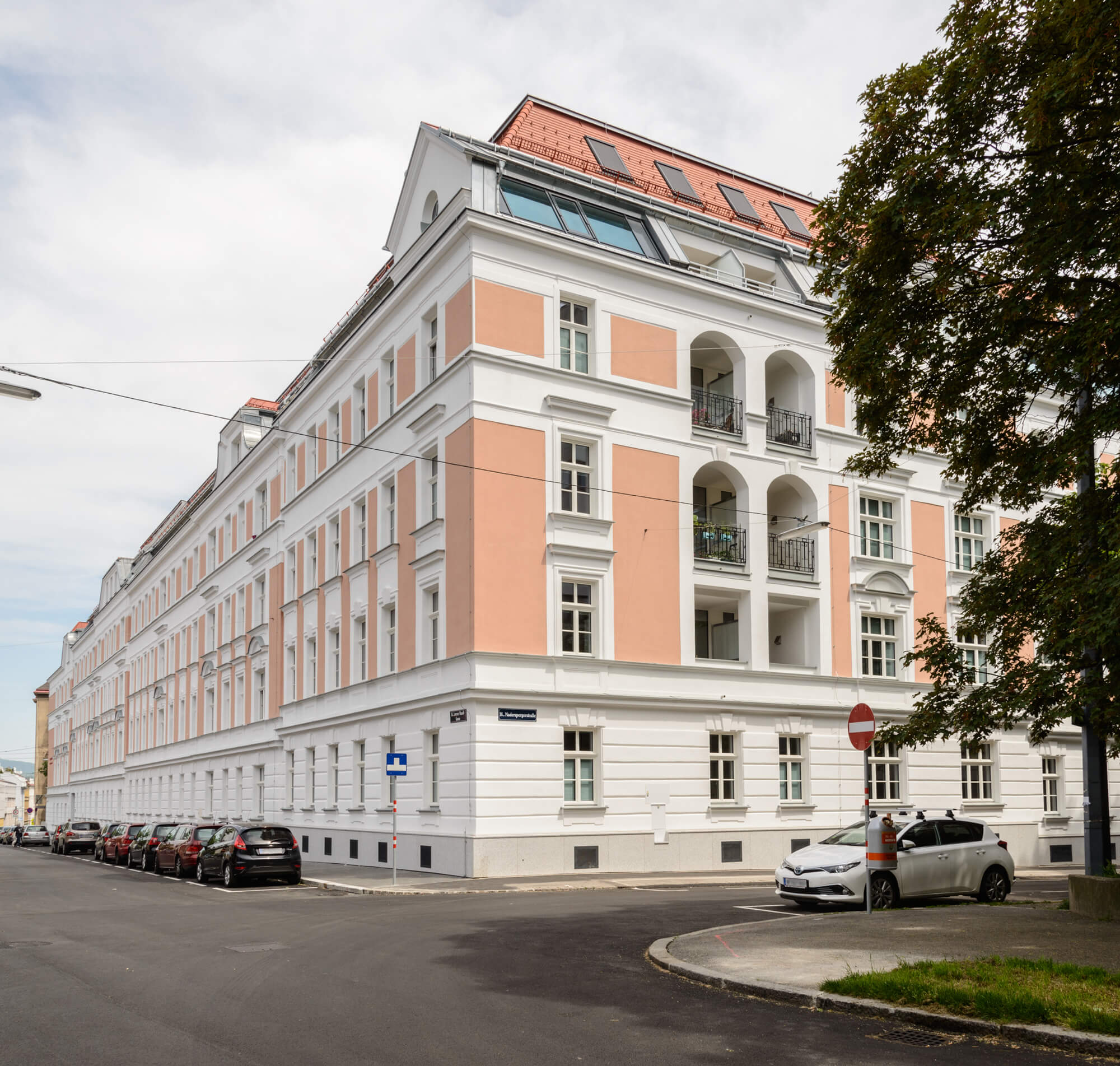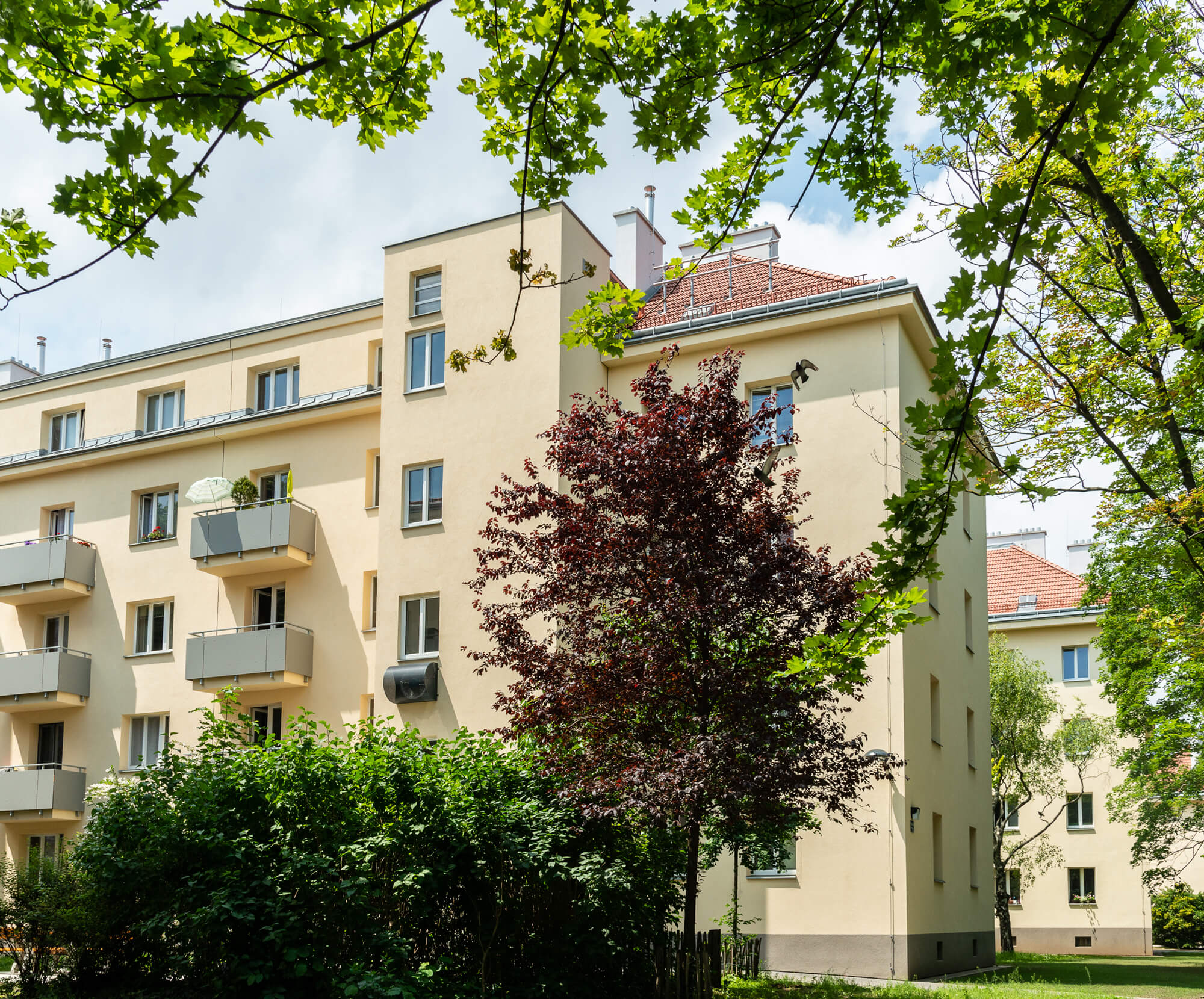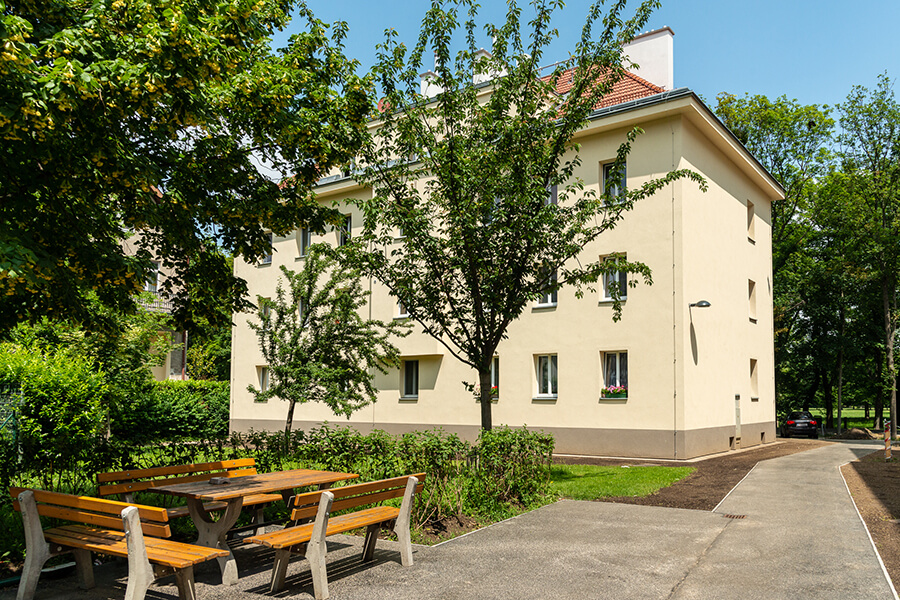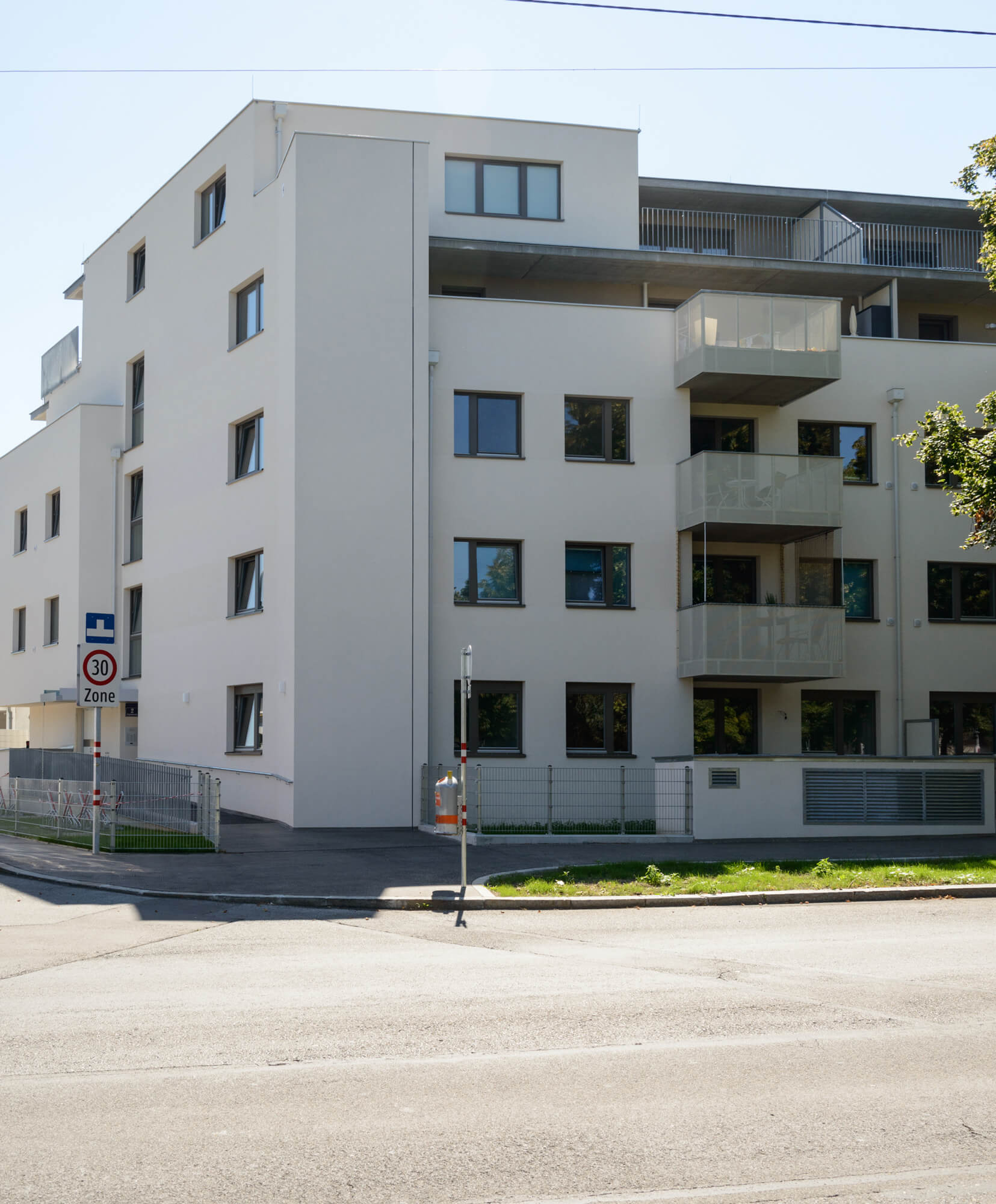 Diese städtische Wohnhausanlage wurde 1937 gebaut. Sie umfasst vier Stiegen mit 68 Wohnungen und wird von Voitl & Co. mit einer Sockelsanierungsförderung saniert.