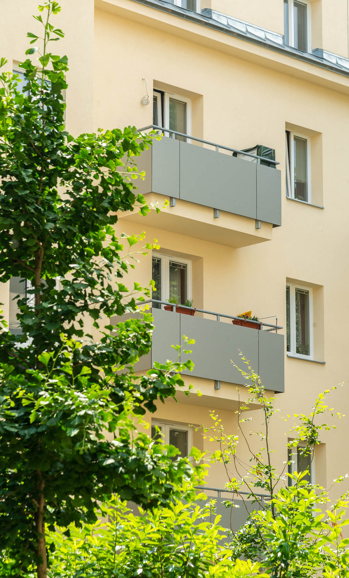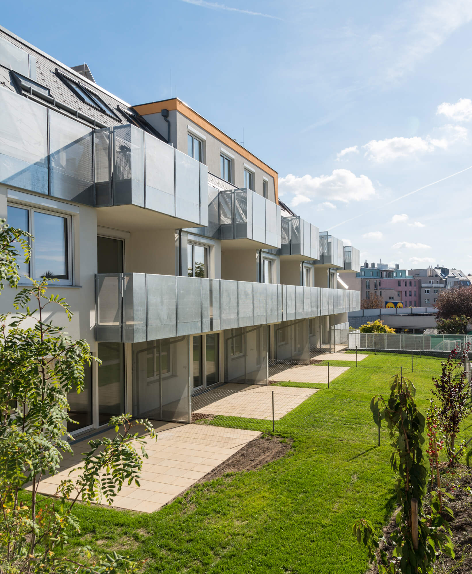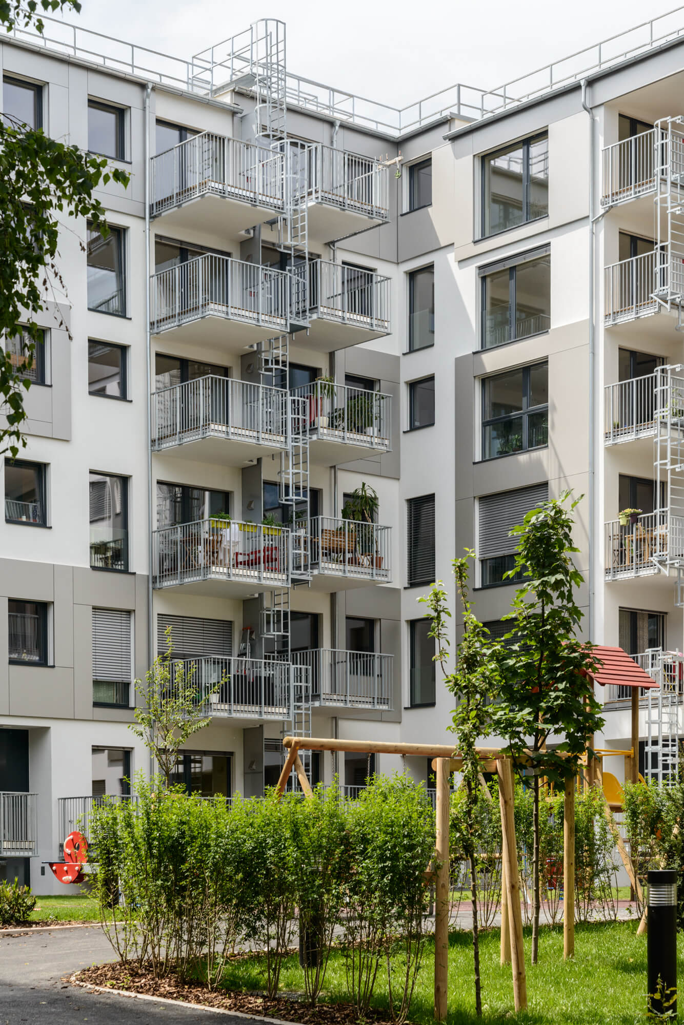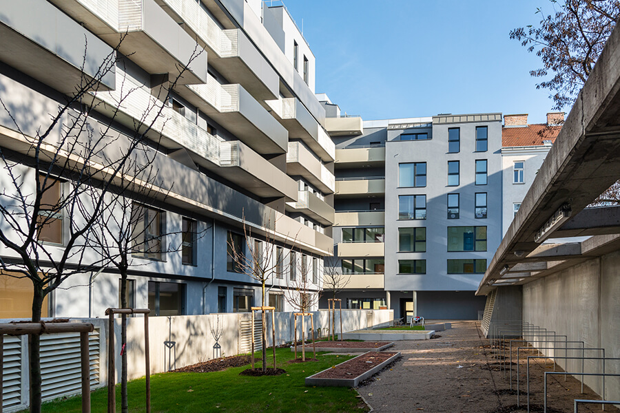 Die Wohnungen verfügen über Loggien bzw. Terrassen und im Erdgeschoss des Hoftraktes zusätzlich über Mietergärten.