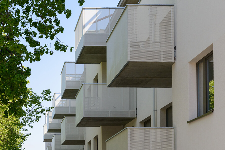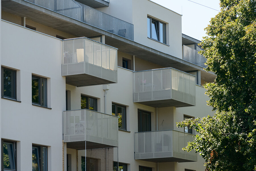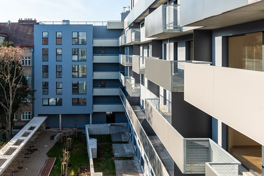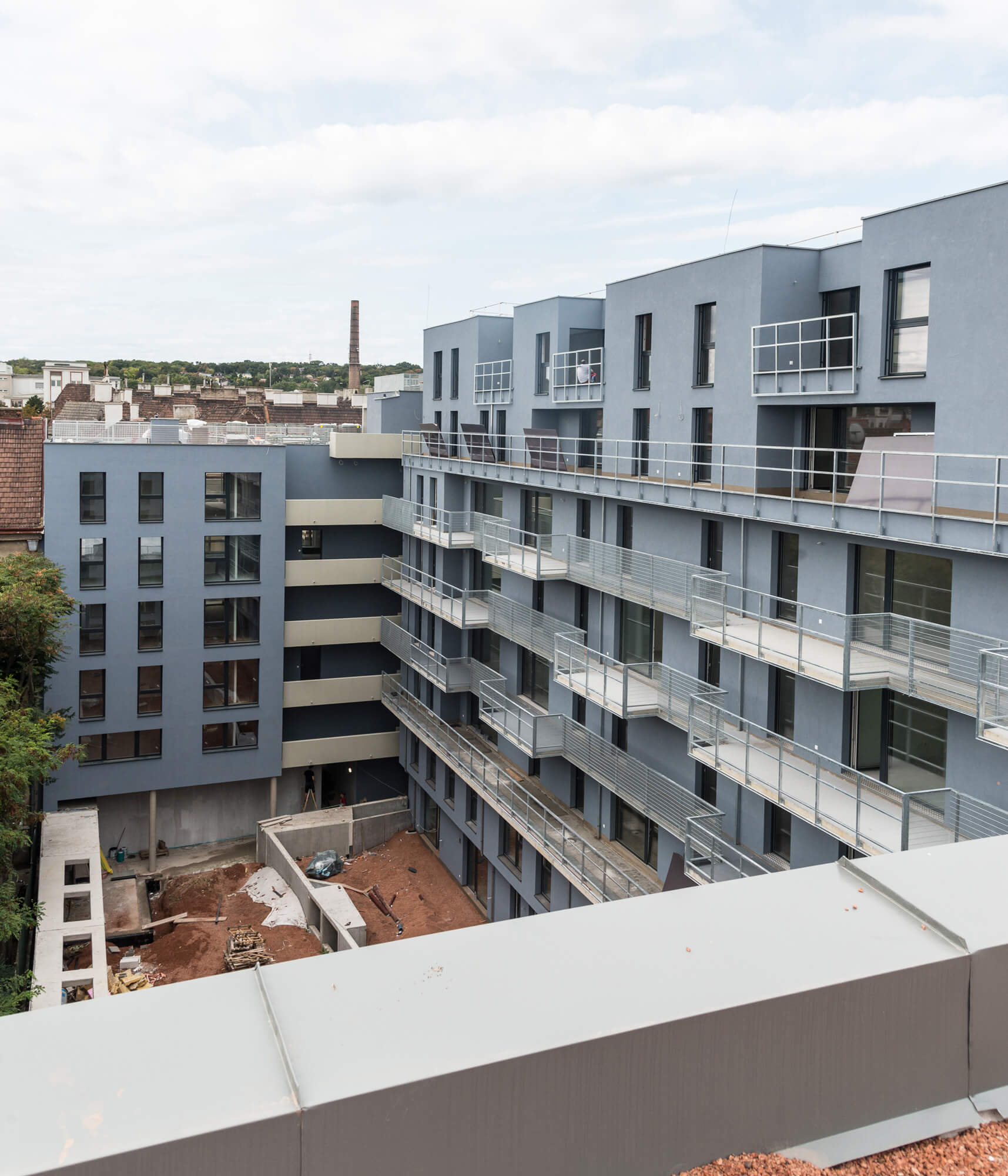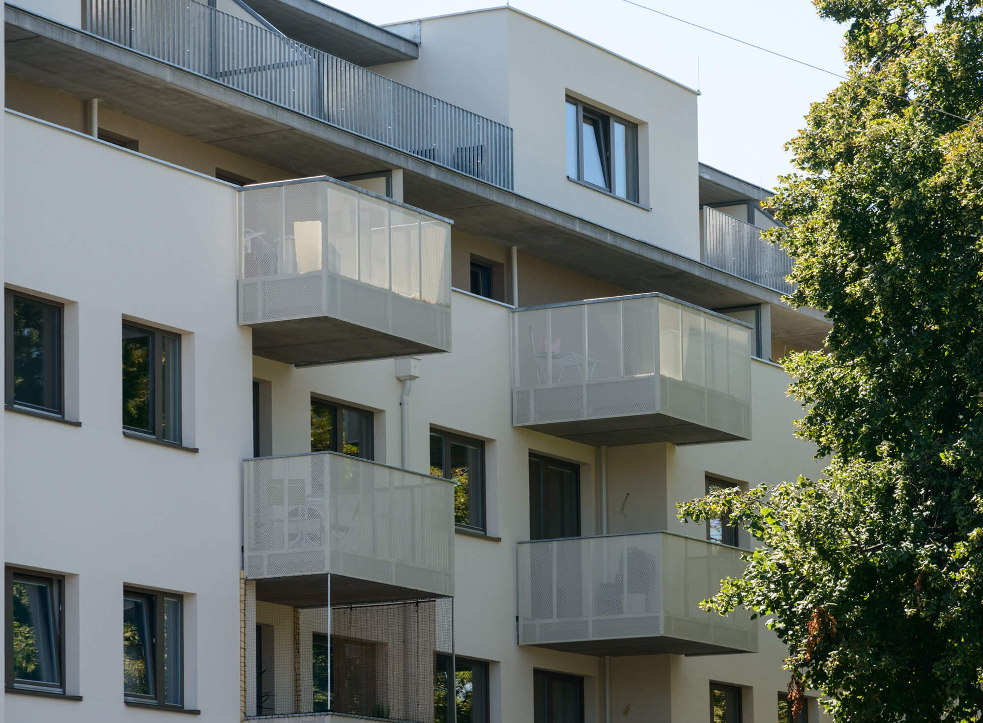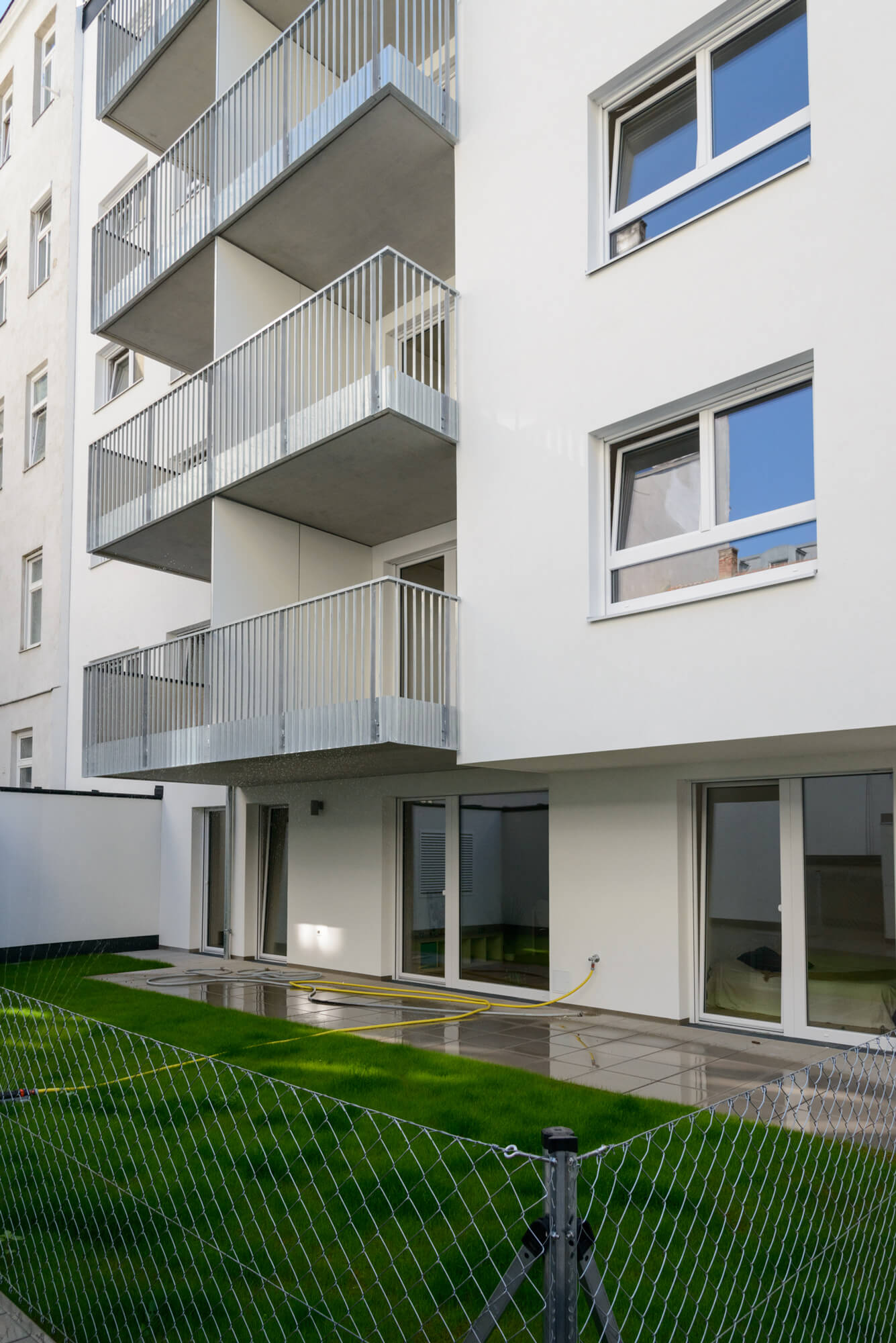 Die Wohnungen verfügen über Loggien bzw. Terrassen und im Erdgeschoss des Hoftraktes zusätzlich über Mietergärten.