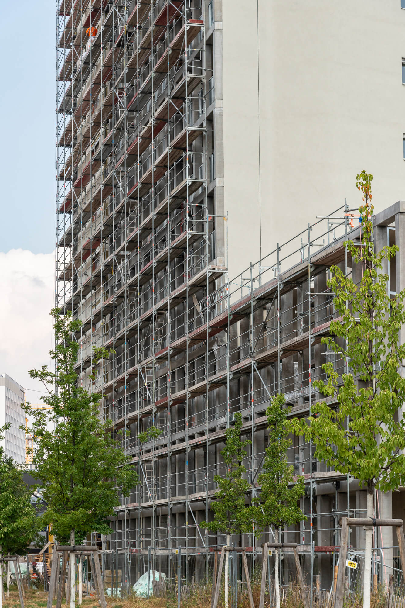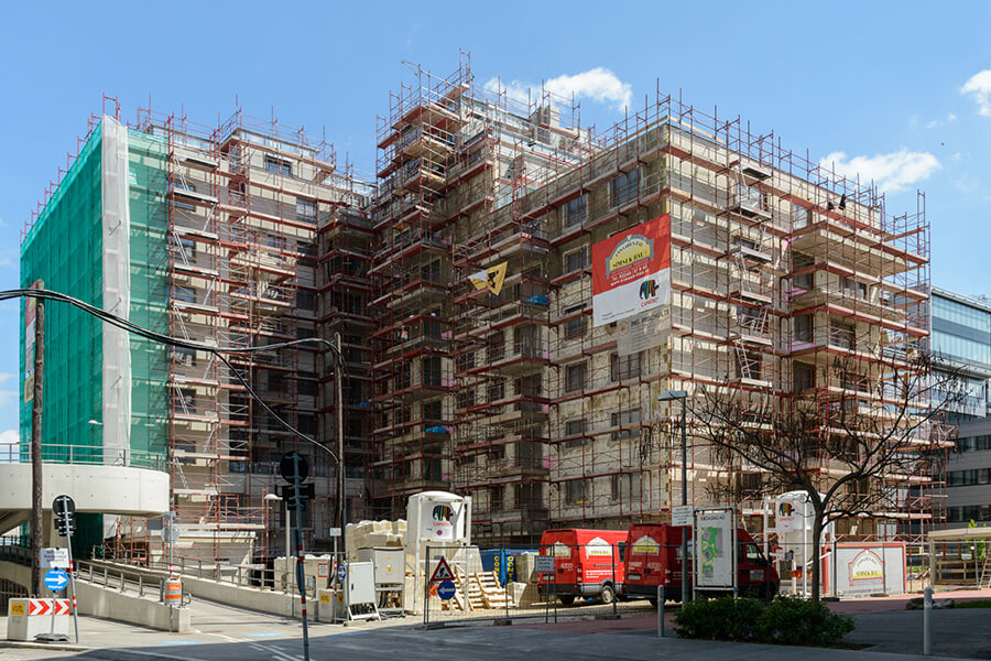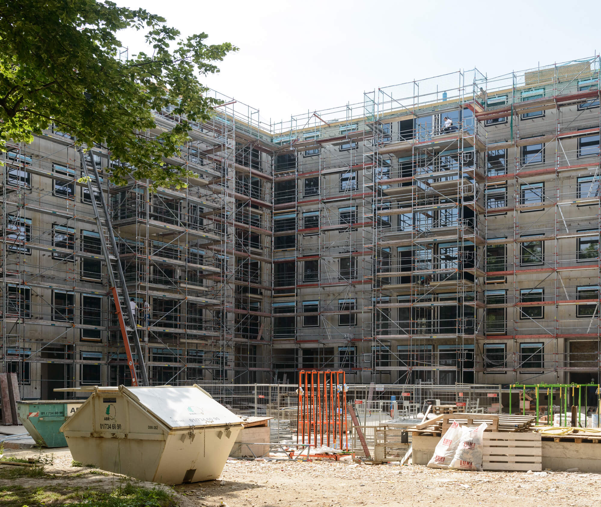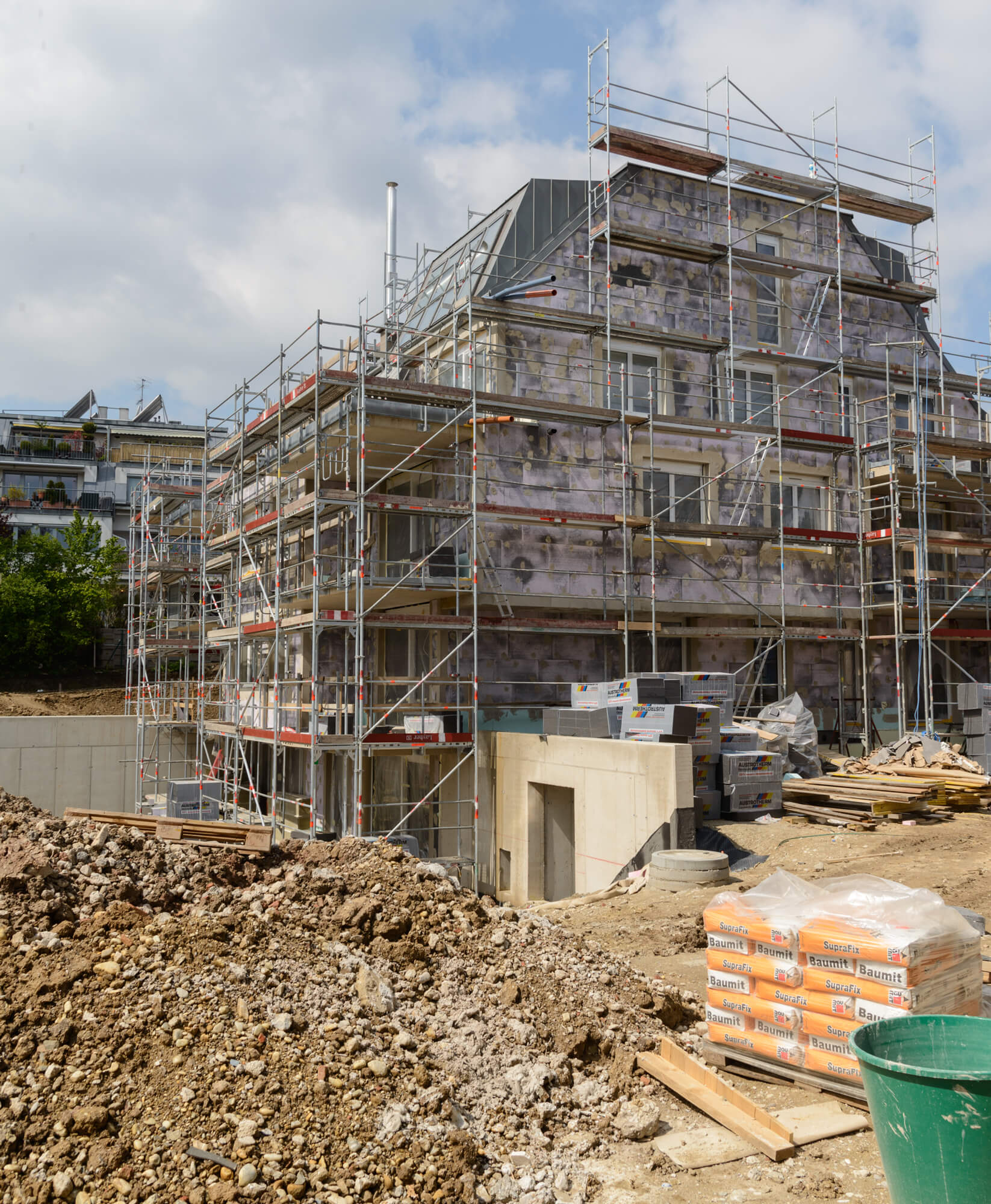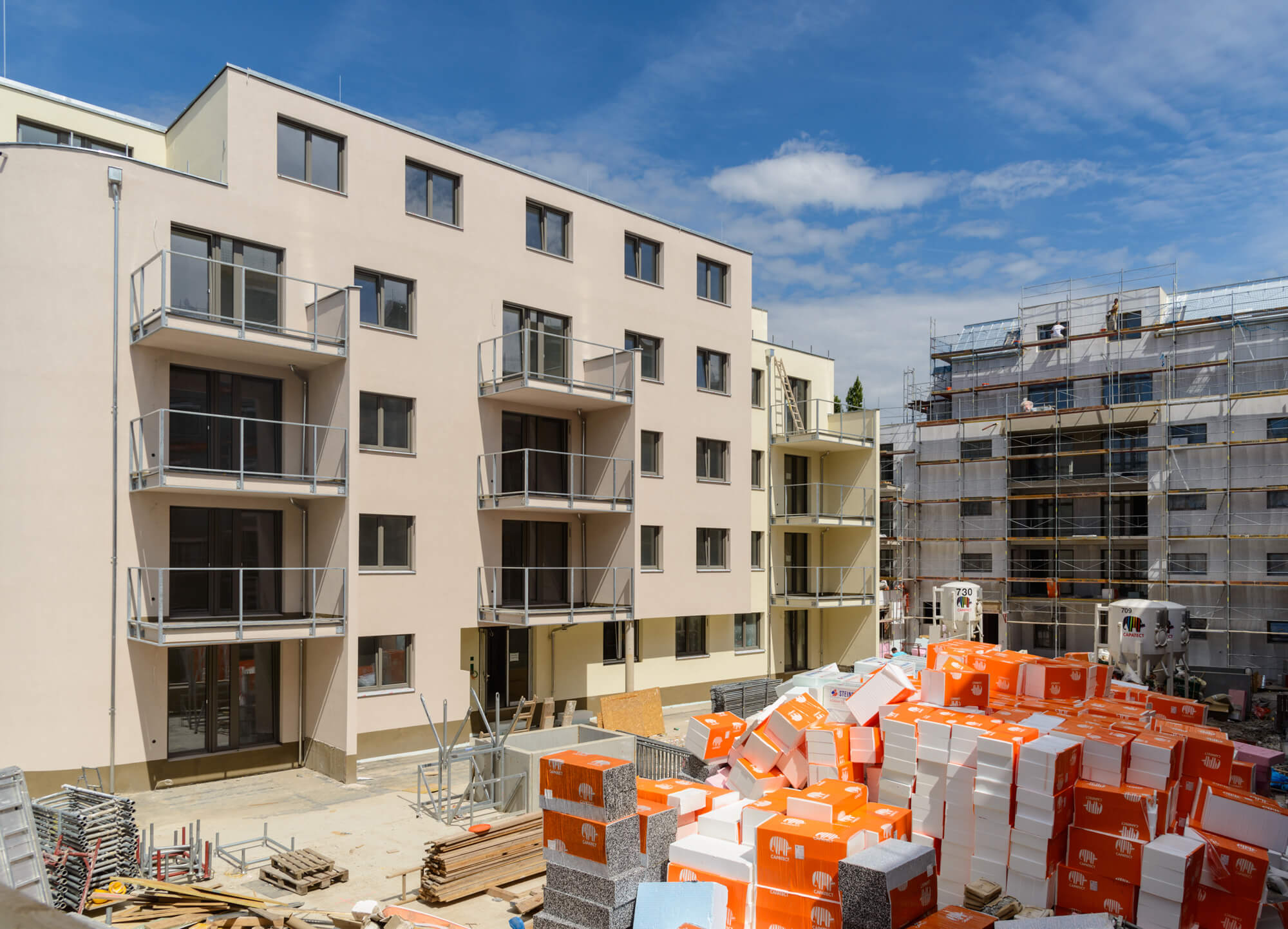 An den Bestandsobjekten werden sowohl die Stiegenhäuser als auch die kompletten Fassaden saniert. Zur Durchführung der Aufstockung müssen vorab die bestehenden Dächer abgebrochen werden und eine provisorische Abdichtung an der letzten Geschoßdecke aufgebracht werden, da die Bestandsobjekte während der gesamten Bauzeit bewohnt bleiben. Neben allen statisch konstruktiven Maßnahmen ist auch die Verlängerung der bestehenden Aufzüge ein weiteres technisches Highlight. Bei den Bestandswohnungen werden weiters die Balkone durch Einbau einer zusätzlichen Stahlkonstruktion und der Herstellung neuer Geländer saniert.