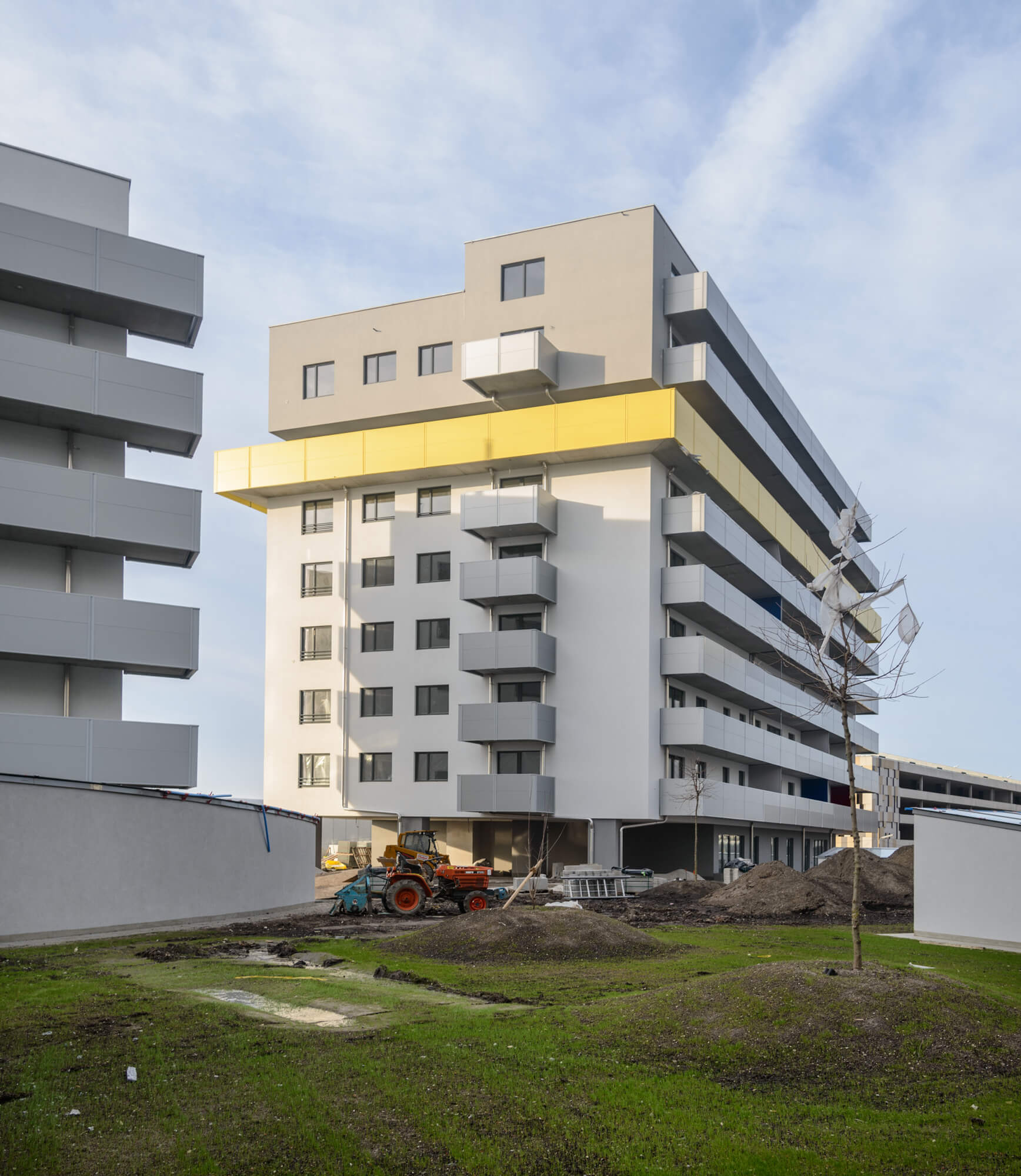 Voitl & Co. errichtet im 23. Wiener Gemeindebezirk, in der Scherbangasse 22 / Ziedlergasse 17, eine Wohnhausanlage mit 227 Wohneinheiten, welche in 5 Punkthäusern situiert sind. Jedes Punkthaus besitzt 7 Obergeschoße und schließt mit einem begrünten Flachdach ab.