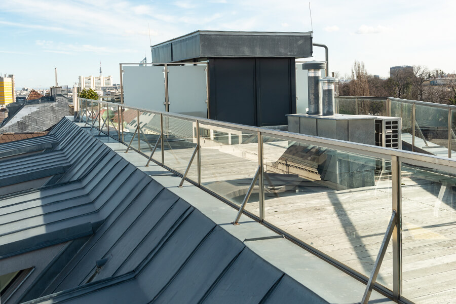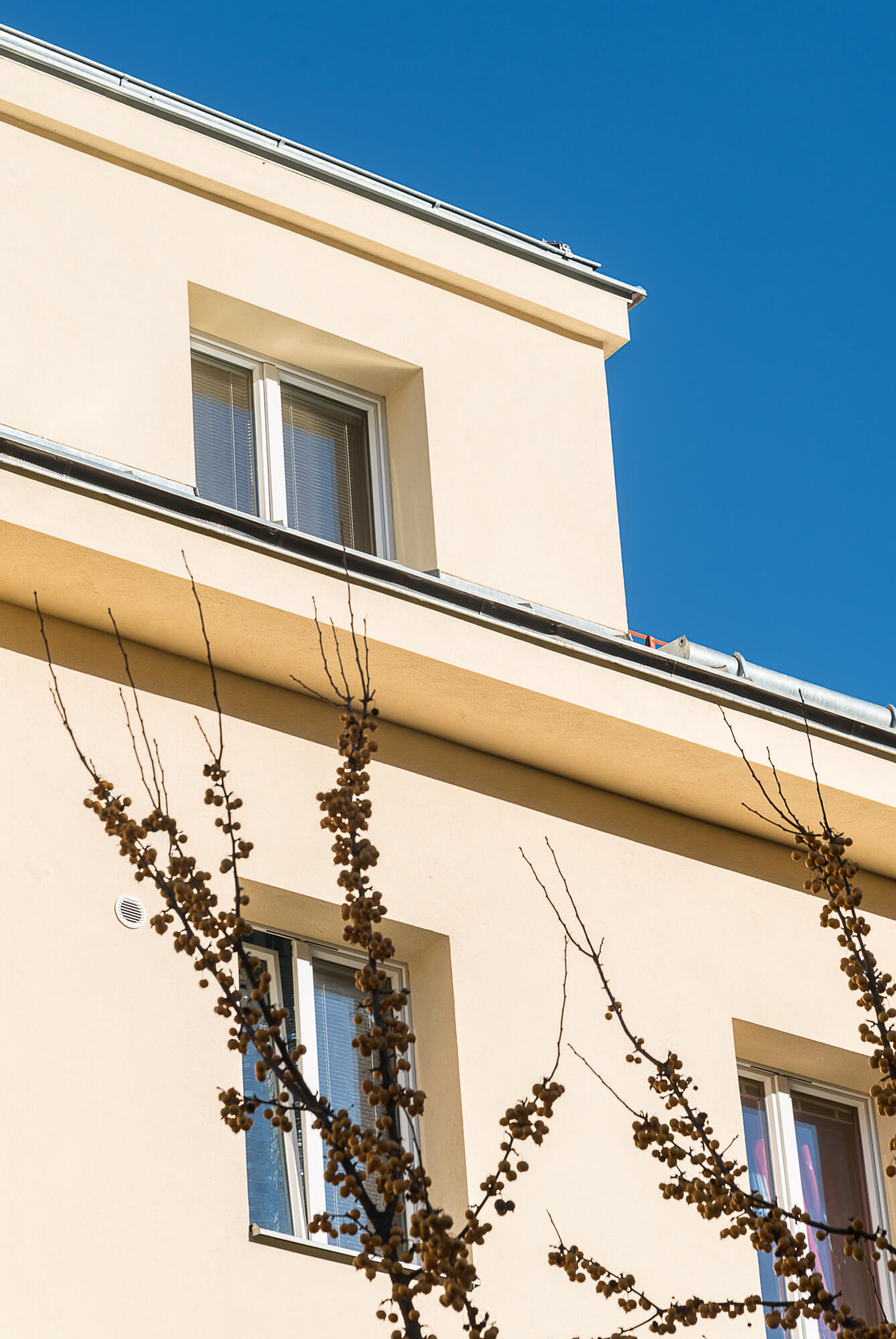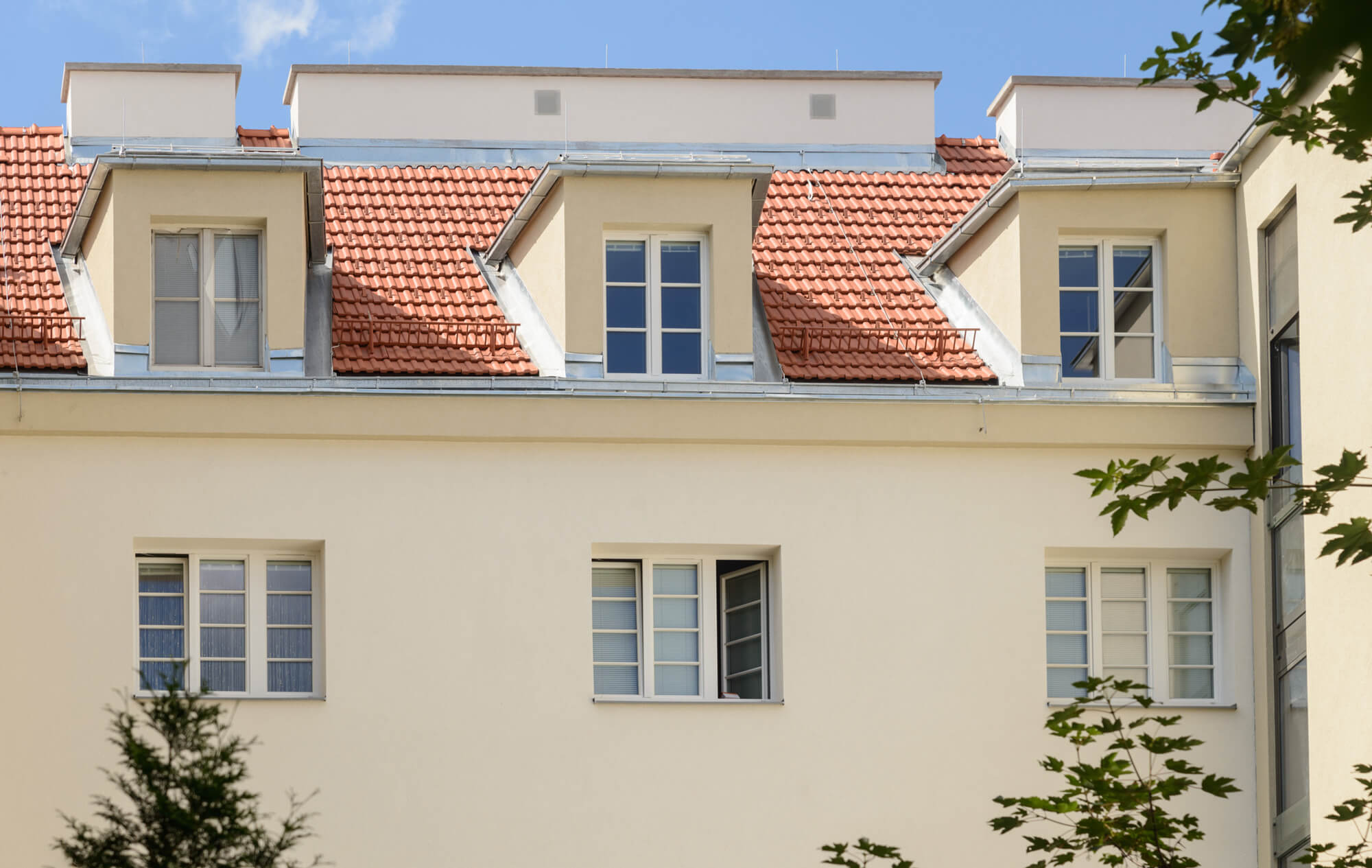 Am Dach, auf den Terrassen und auf den Balkonen werden die Verblechungen instand gesetzt und weitere Bauspenglerarbeiten durchgeführt. Zudem werden zusätzliche Kaminstege montiert. Weiter werden Umbauarbeiten an der Druckbelüftungsanlage vorgenommen, um auch diese auf den letzten Stand der Technik zu bringen. Auch werden alle erforderlichen Fassadeninstandsetzungsarbeiten durchgeführt, um das Objekt in neuem Glanz erstrahlen zu lassen.