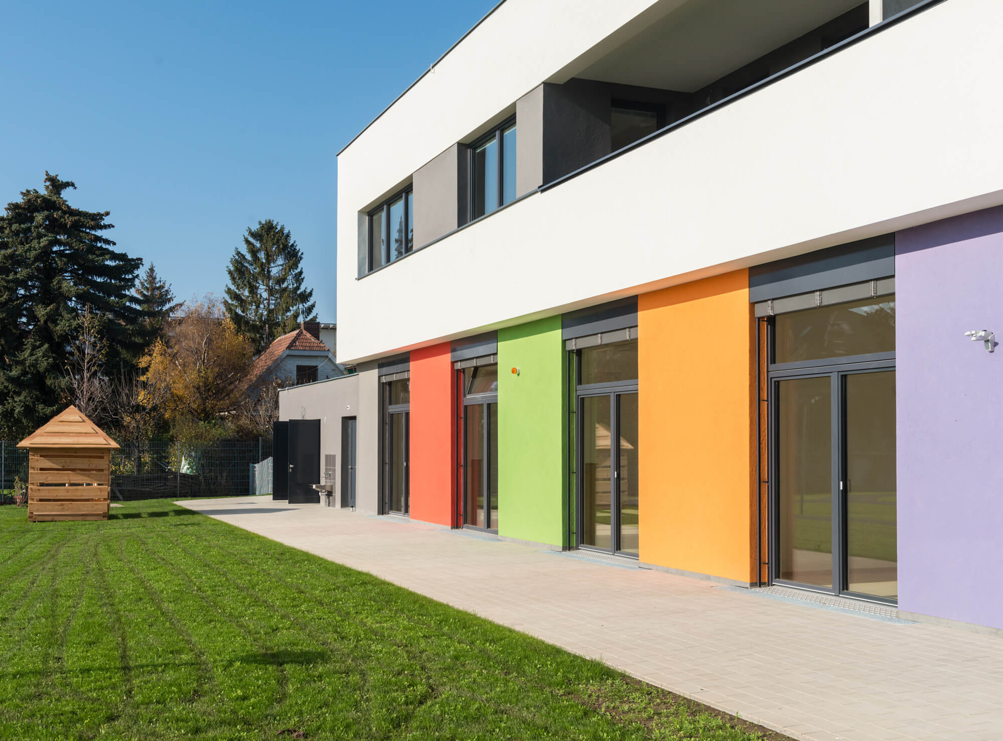 Die Anlage verfügt zusätzlich noch über eine weitläufige Tiefgarage mit 54 PKW- und 36 Fahrradstellplätzen. Auf dem 5.230m2 großen Grund wurden ebenfalls großzügige Grünflächen und Spielmöglichkeiten für Kinder vorgesehen. Großer Wert wurde auf ökologische Gesichtspunkte wie eine Solaranlage und einem Versickerungskonzept für Regenwässer gelegt. Die Lage besticht einerseits durch die gute Infrastruktur und andererseits durch die Nähe zum Erholungsgebiet Marchfeldkanal.