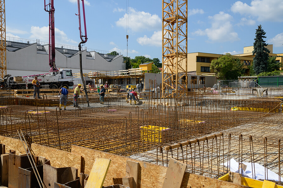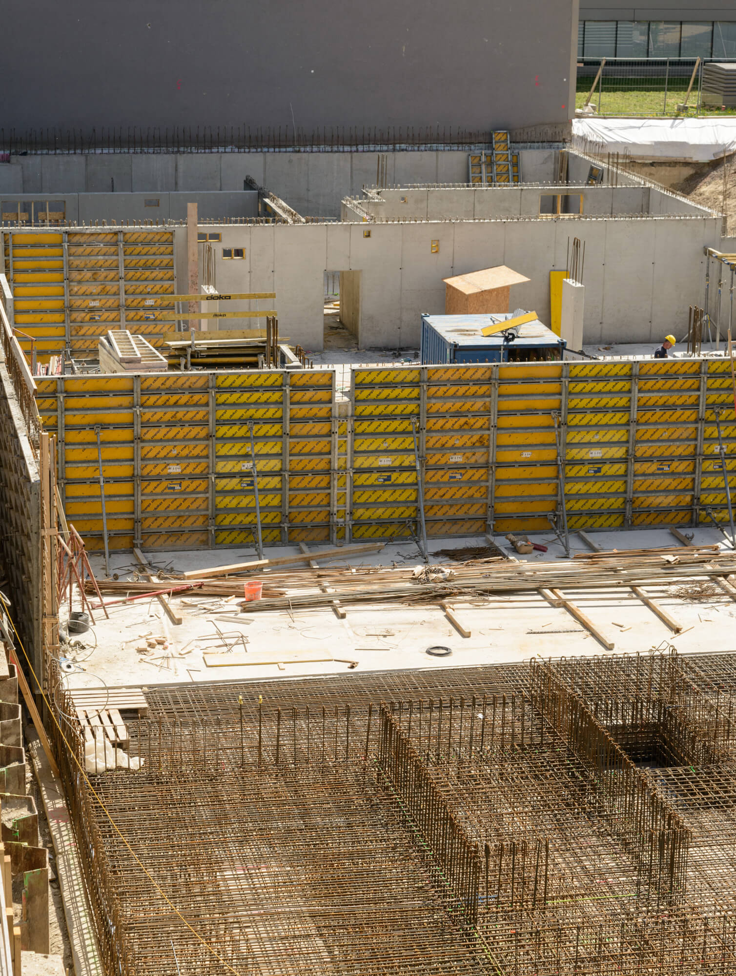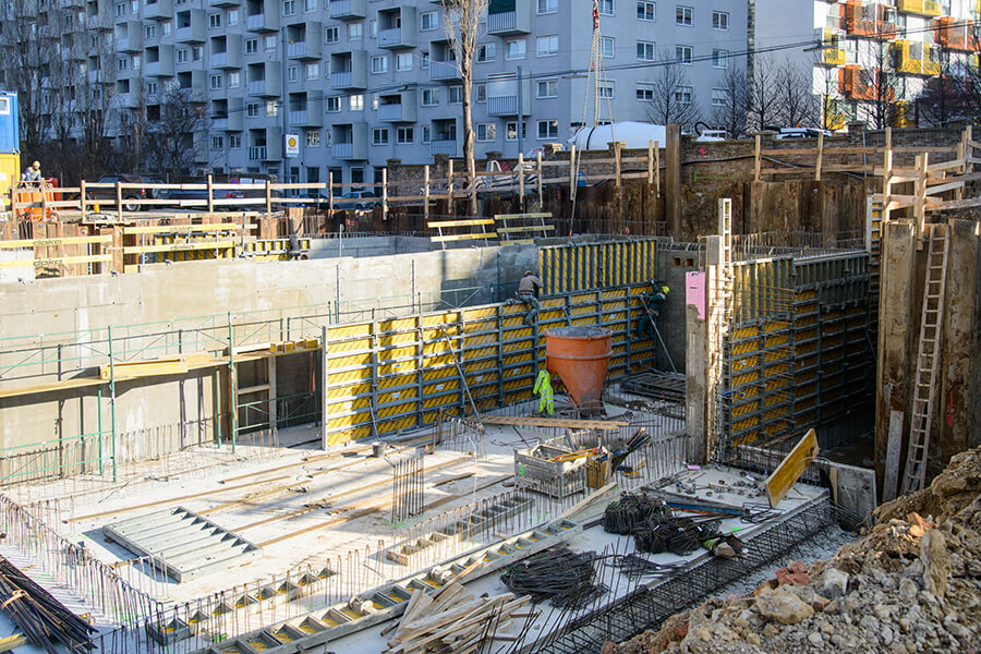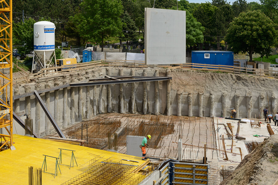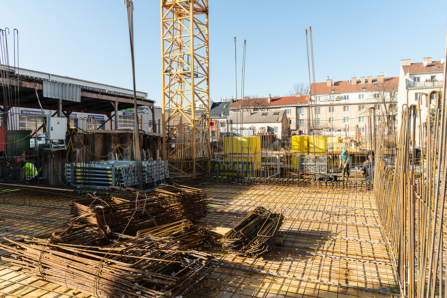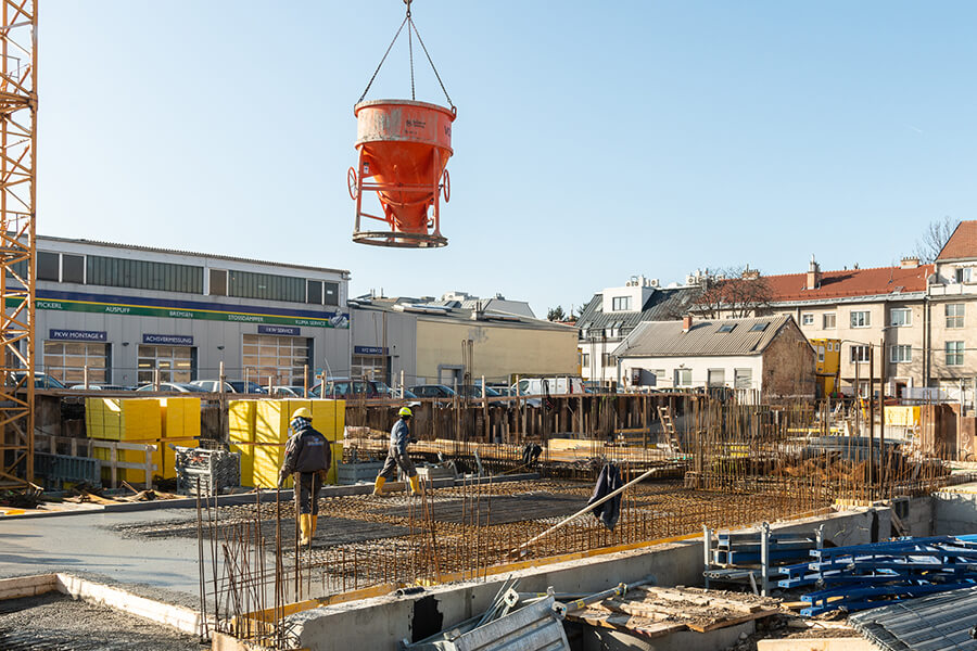 Weiters erfolgt eine Verstärkung der Fundierung des Bestandes durch partiellen Einbau einer Stahlbetonfundamentplatte. Über den bestehenden Aufzug hinaus wird auch ein Feuerwehraufzug in einem eigens dafür zu errichtenden Schacht innerhalb des Objektes hergestellt.