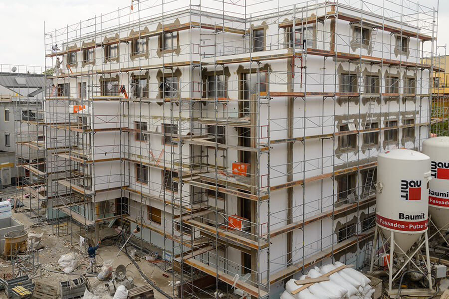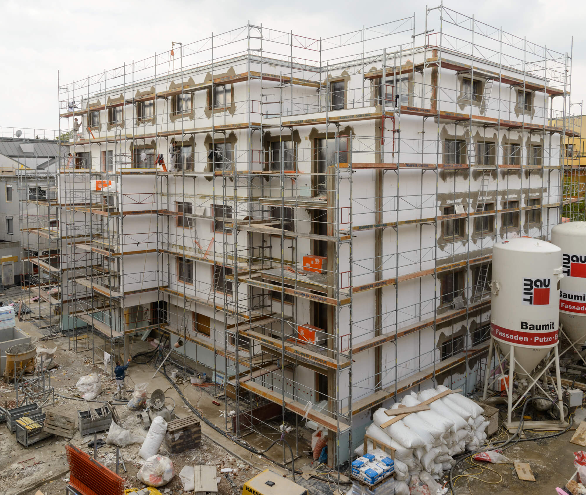 Die Außenhülle des Gebäudes wird mittels Vollwärmeschutz wärmegedämmt. Vorhandene Balkone werden thermisch saniert und die Kaminmauerwerke werden instand gesetzt. Weiters werden sowohl Kellerdecke als auch das Dach zur Verbesserung der Gesamtenergiebilanz wärmegedämmt.