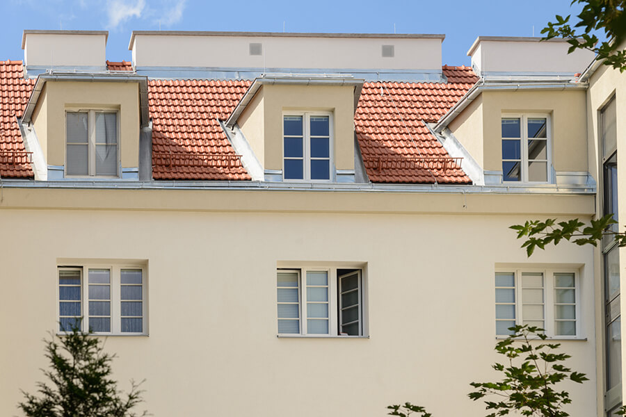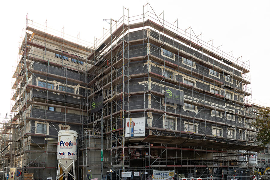Die Anlage mit 3 Stiegen und 112 Wohnungen sowie einem Geschäftslokal wird nicht nur thermisch-energetisch saniert, es wird auch der komplette Dachaufbau auf neuersten Stand gebracht.