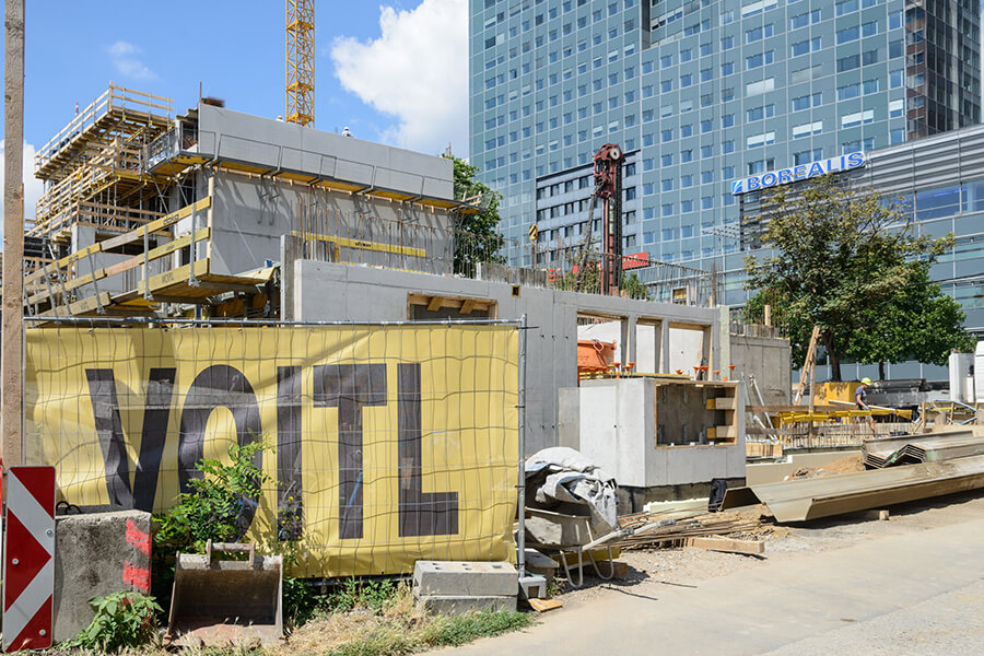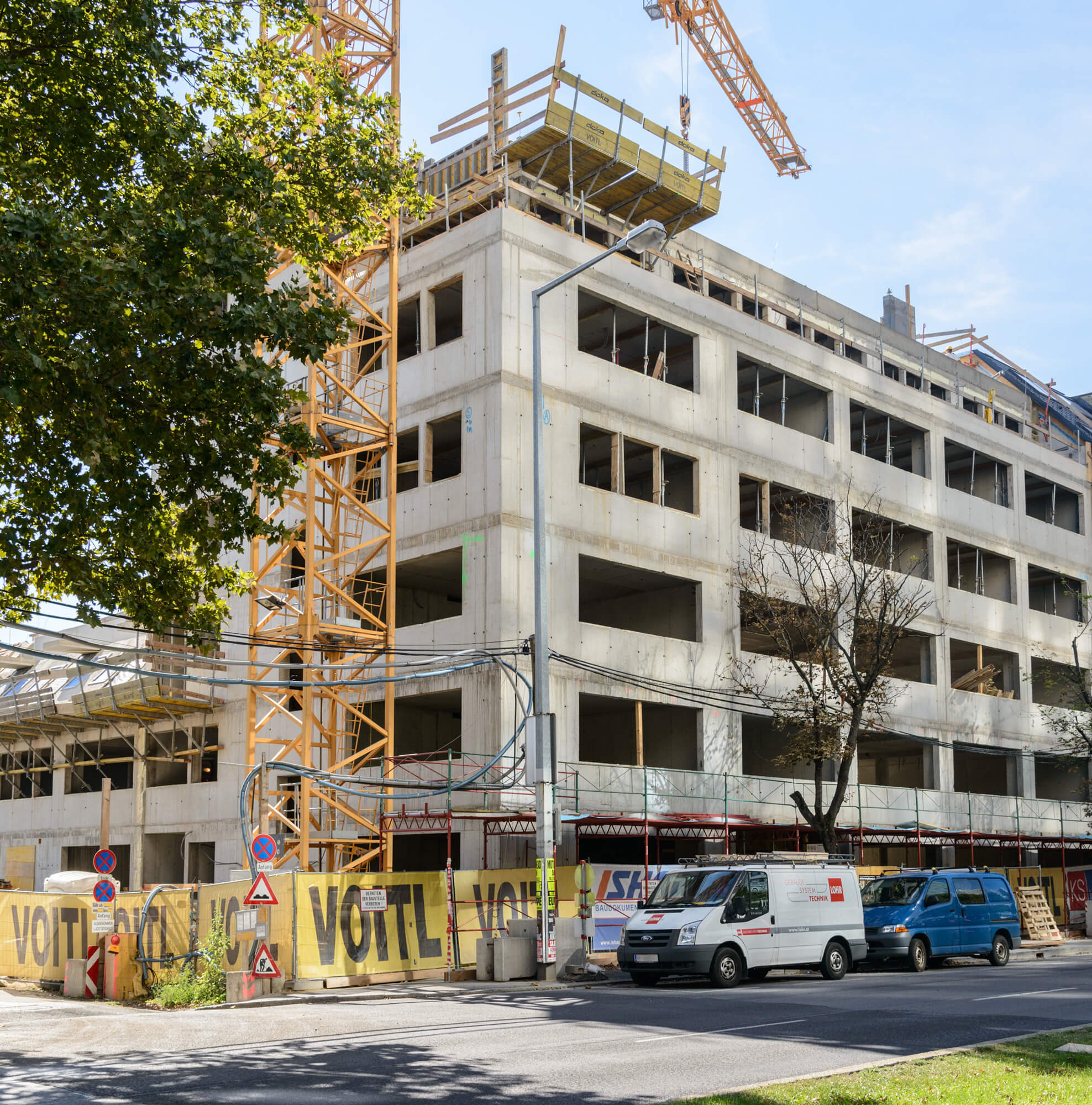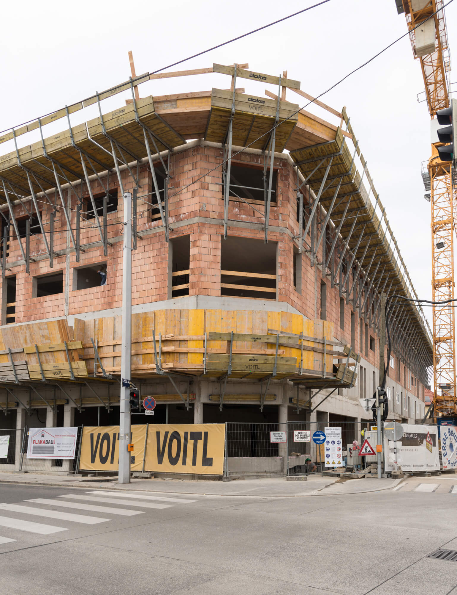 In der Wagramer Straße 24-26, 1220 Wien, wird von Voitl & Co. ein 5 geschoßiges Bürohaus auf einer Grundfläche von ca. 1000m2 im Zeitraum von Frühjahr 2015 bis Frühjahr 2016 errichtet.