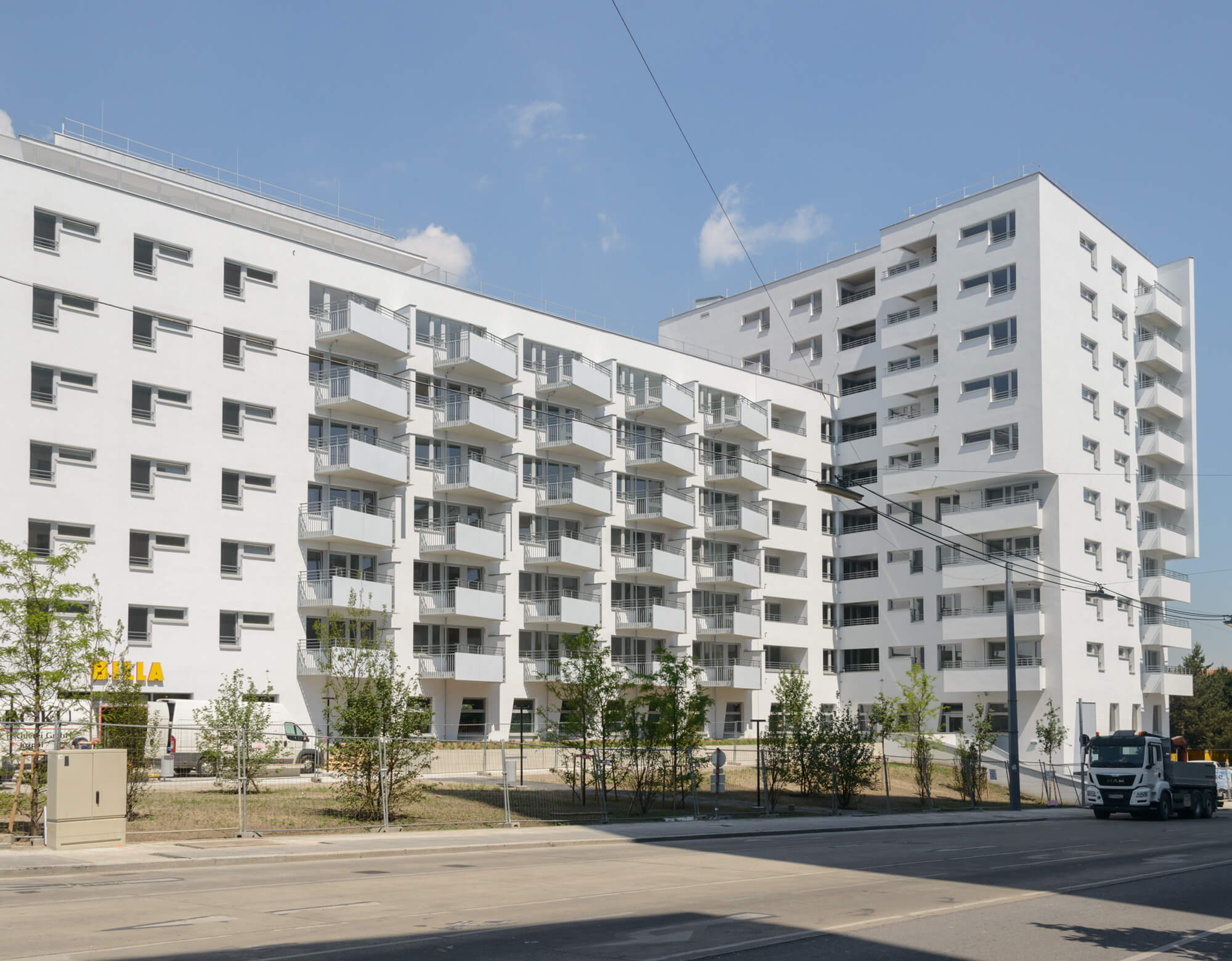 Die Anlagen befinden sich in attraktiver, verkehrsmäßig gut erschlossener Lage (Nähe Straßenbahnlinie 67, O, U1 Reumannplatz sowie A23) und werden als Niedrigenergiehaus errichtet.